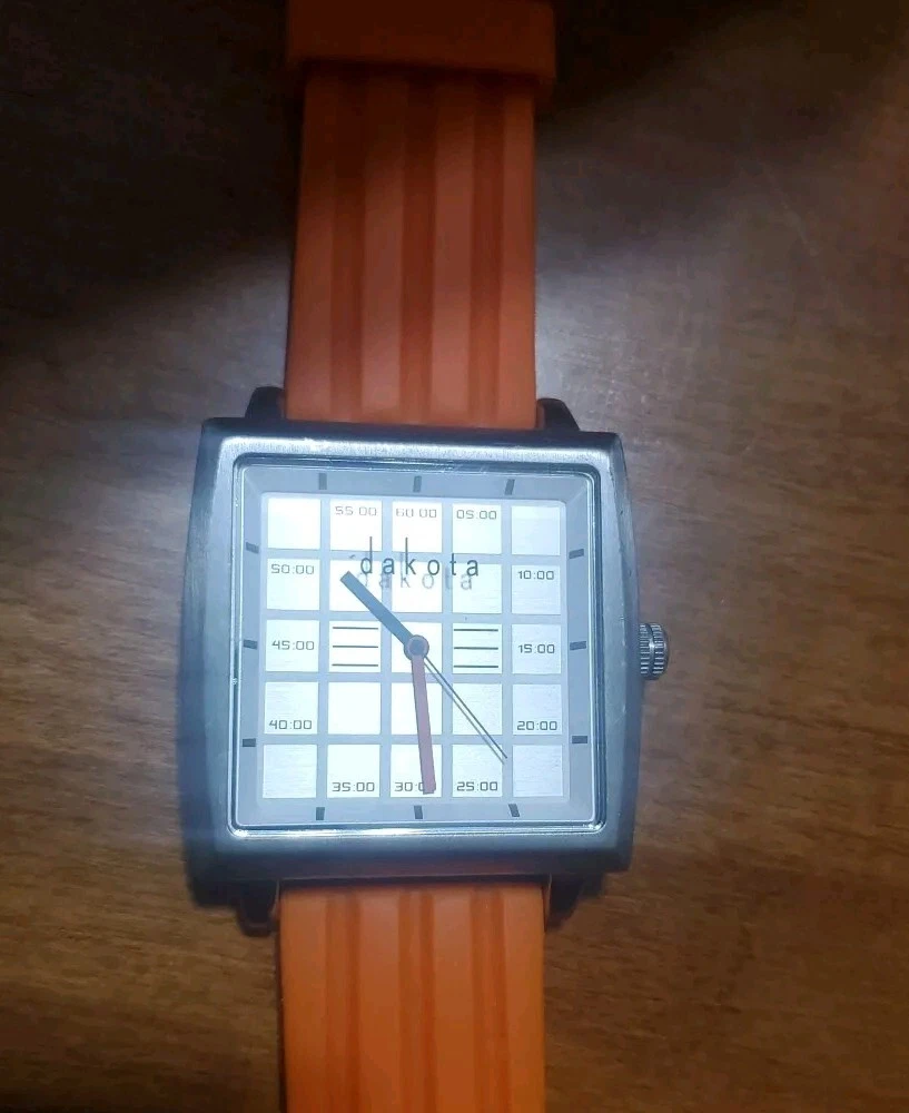 Unique Men's Dakota Watch With Large Square Face And Orange Silicone Band