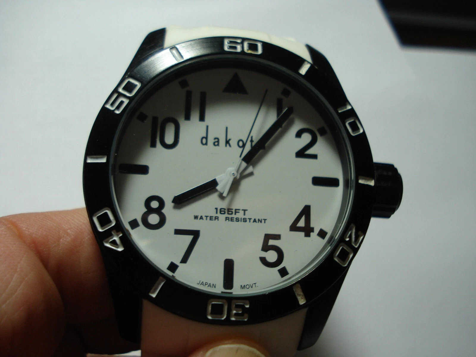 RARE LARGE NICE DAKOTA CHRONOGRAPH SOLID ALUMINUM WHITE BLACK DIVERS WATCH