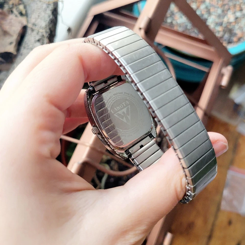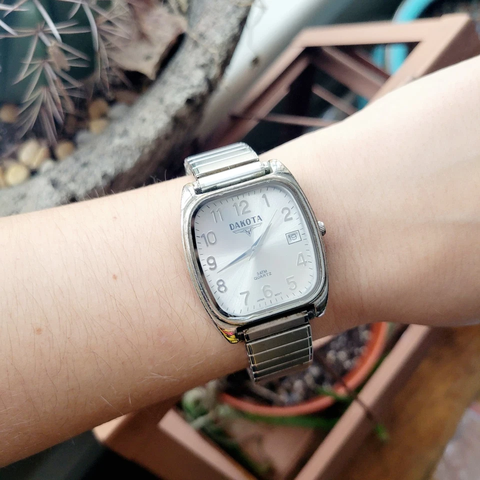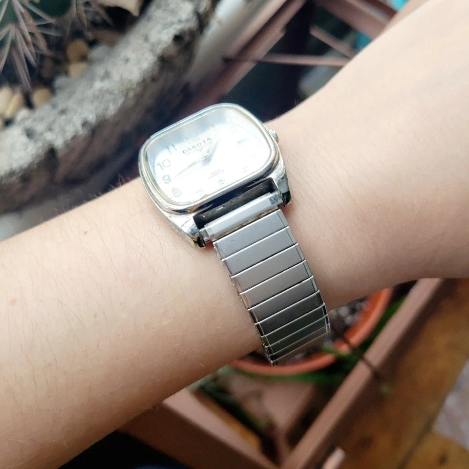 Vintage Dakota Silver Dainty Womans Womens Classic Square Simple Stretch Watch