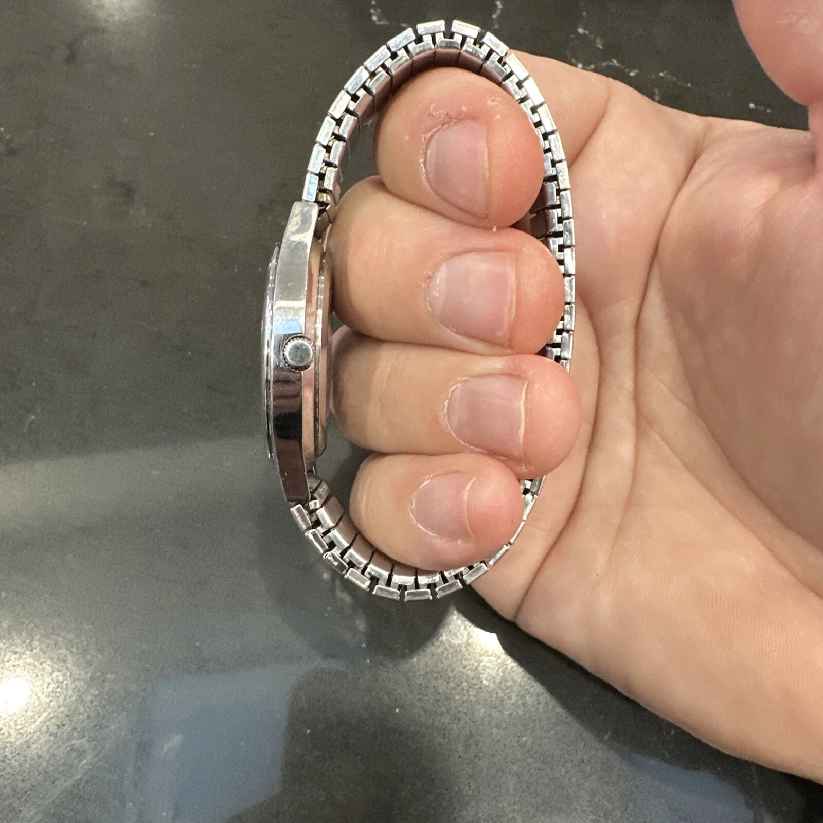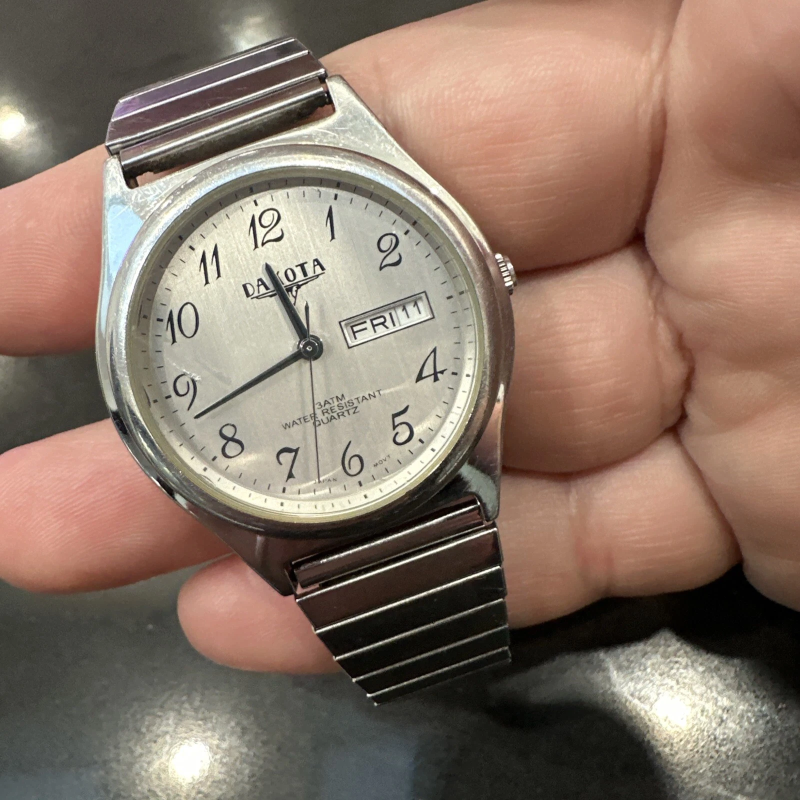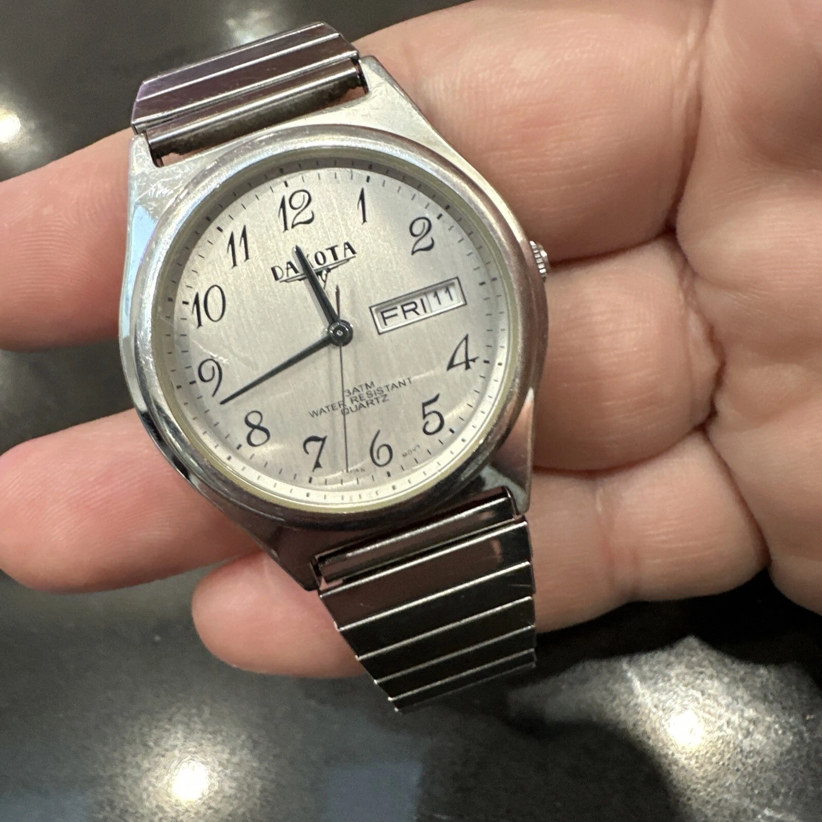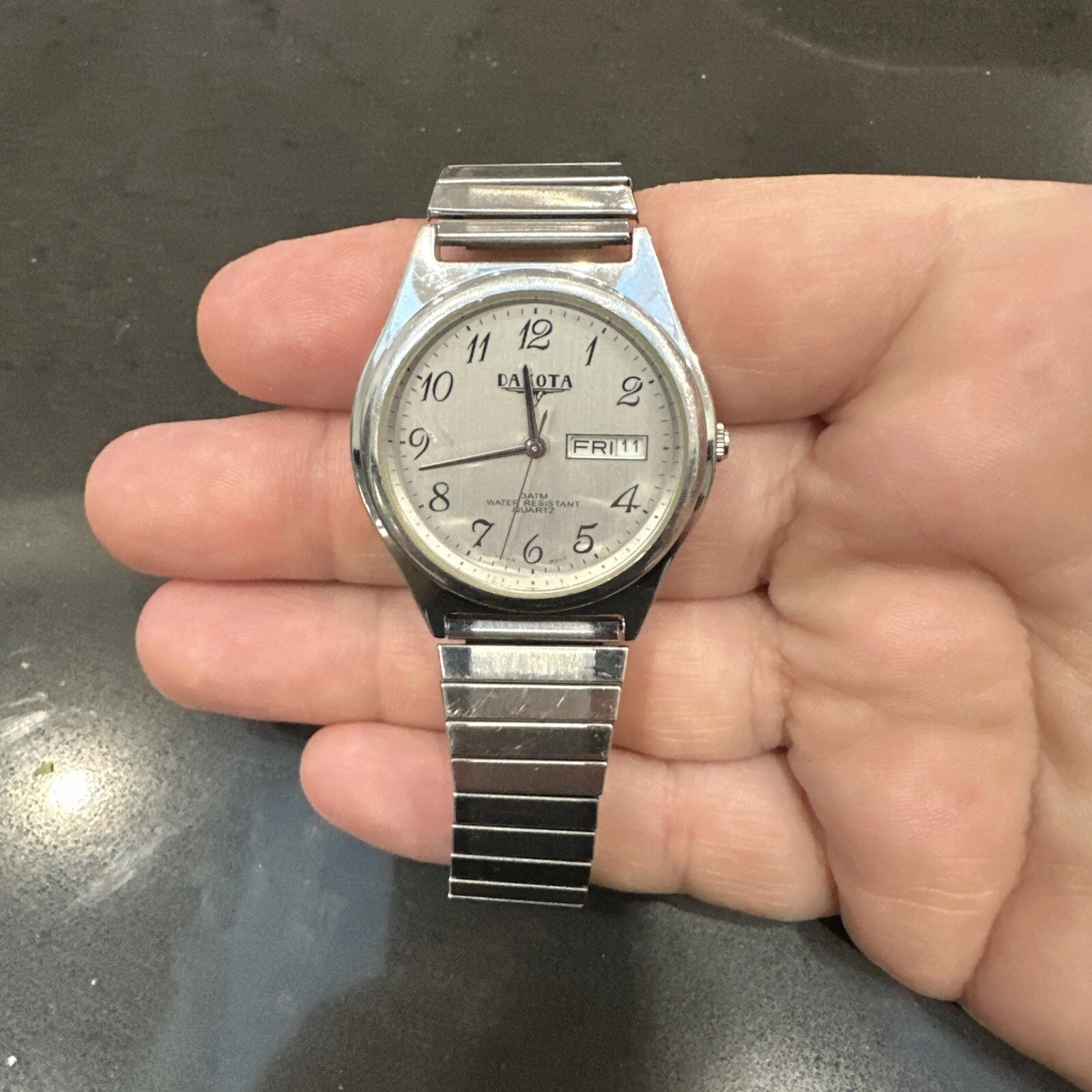 Dakota Watch Men 35mm Silver Tone Date Day Stretch Band