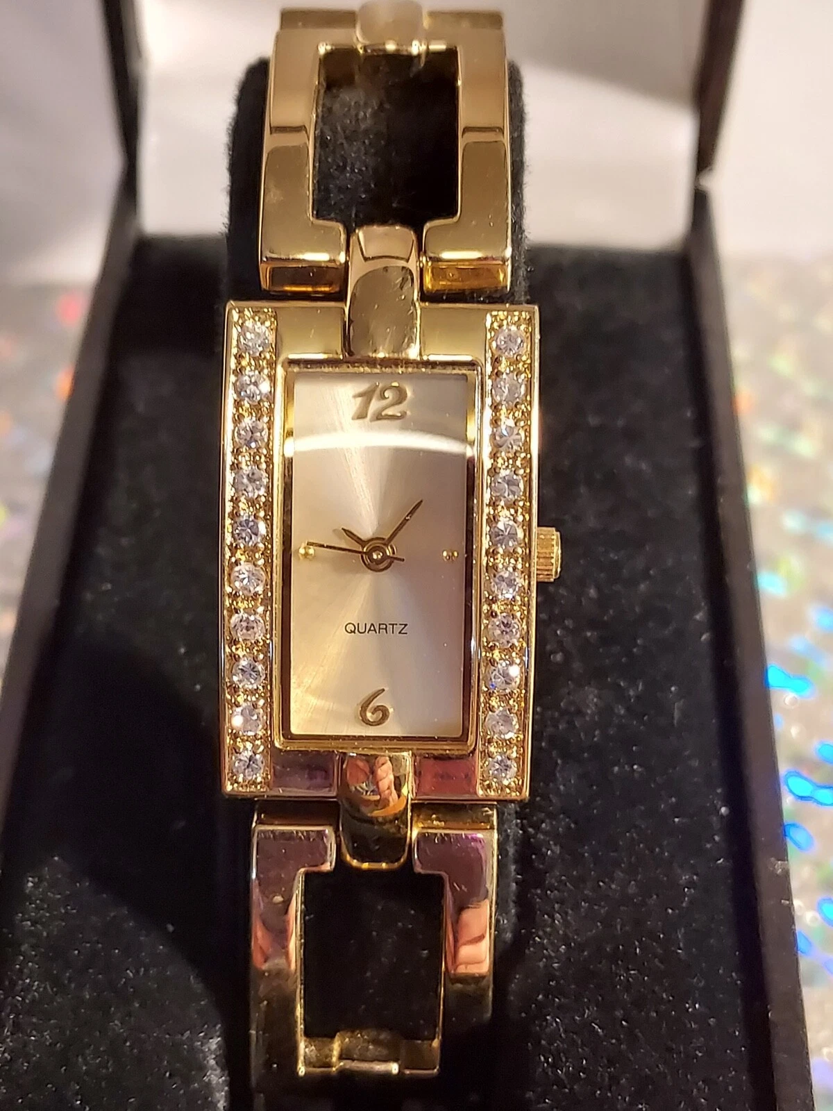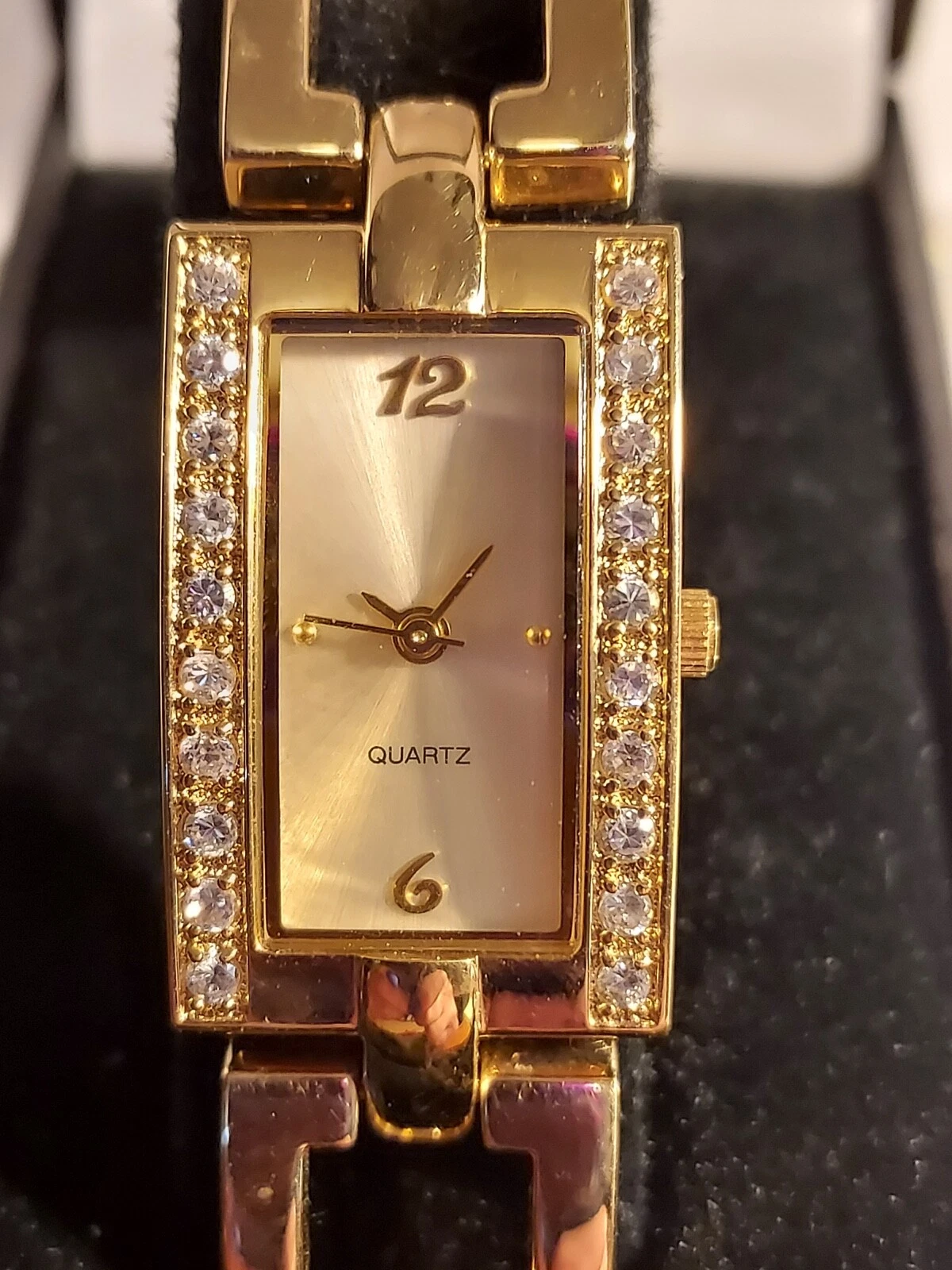 Ladies~*THE DANBURY MINT 7" WATCH*~Gold Toned~RHINESTONES~Box