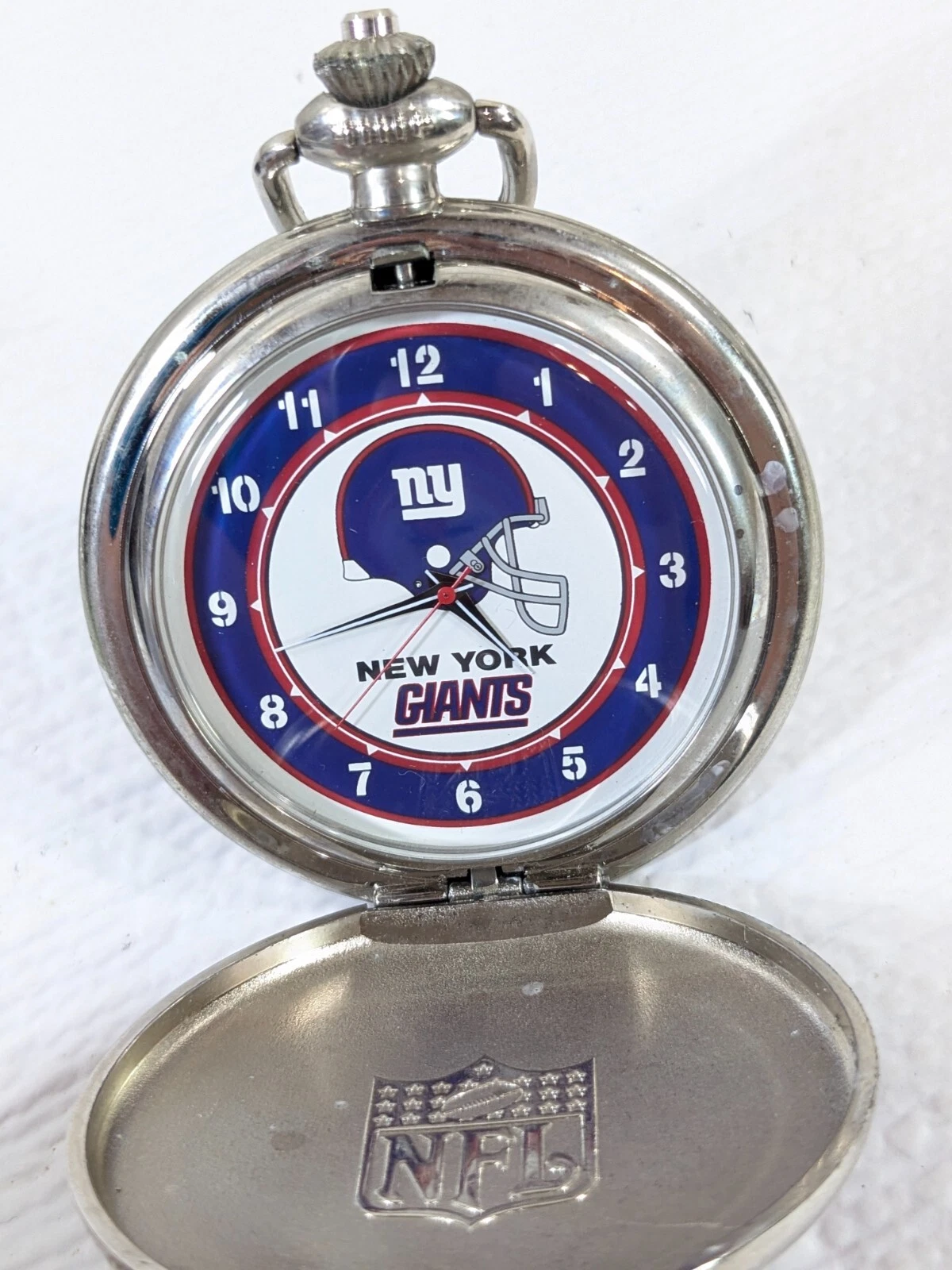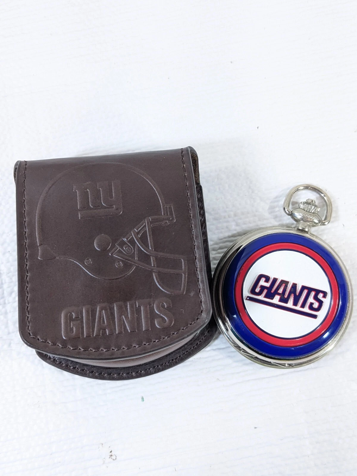Danbury Mint NFL New York Giants Pocket Watch in Leather Case Belt Pouch