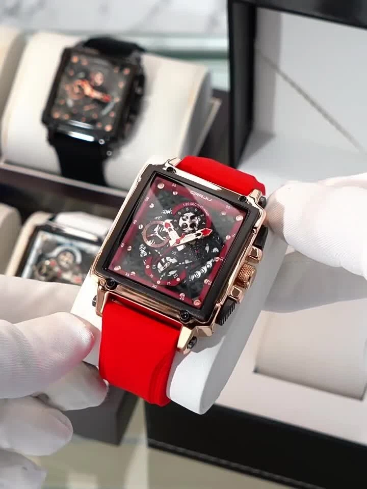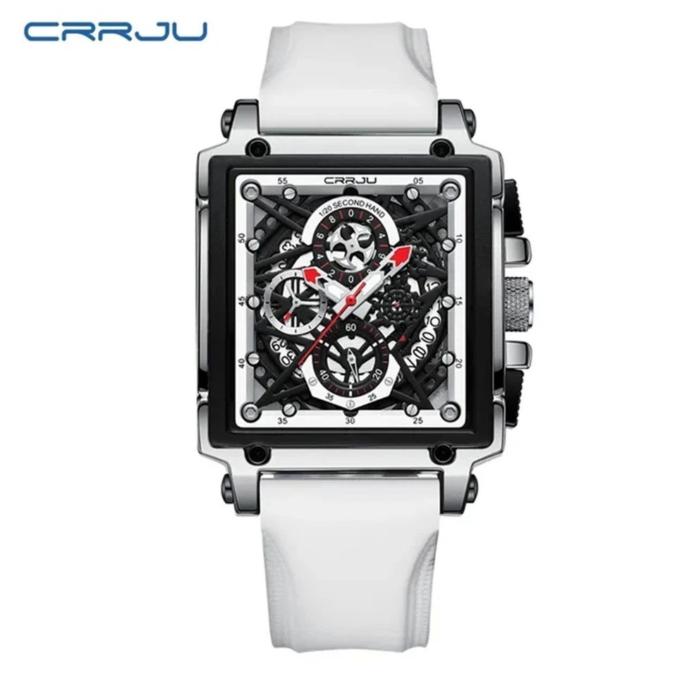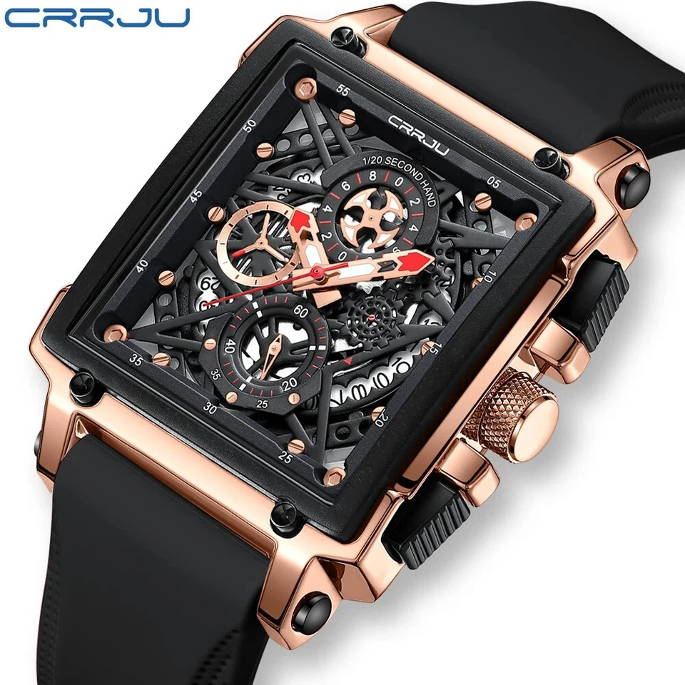 CRRJU Men Square Watch Chronograph Wristwatch Silicone Strap Business Male Watch