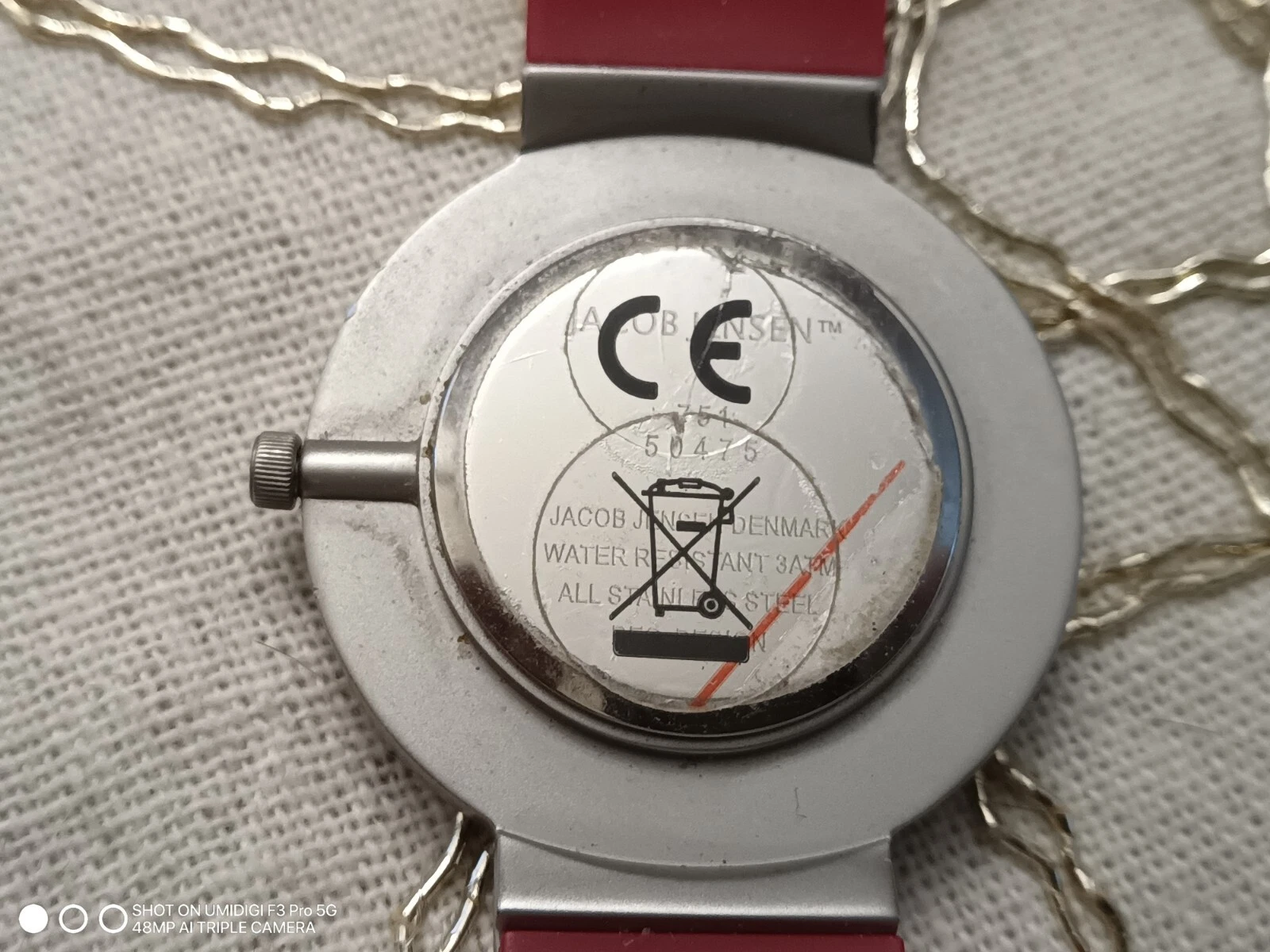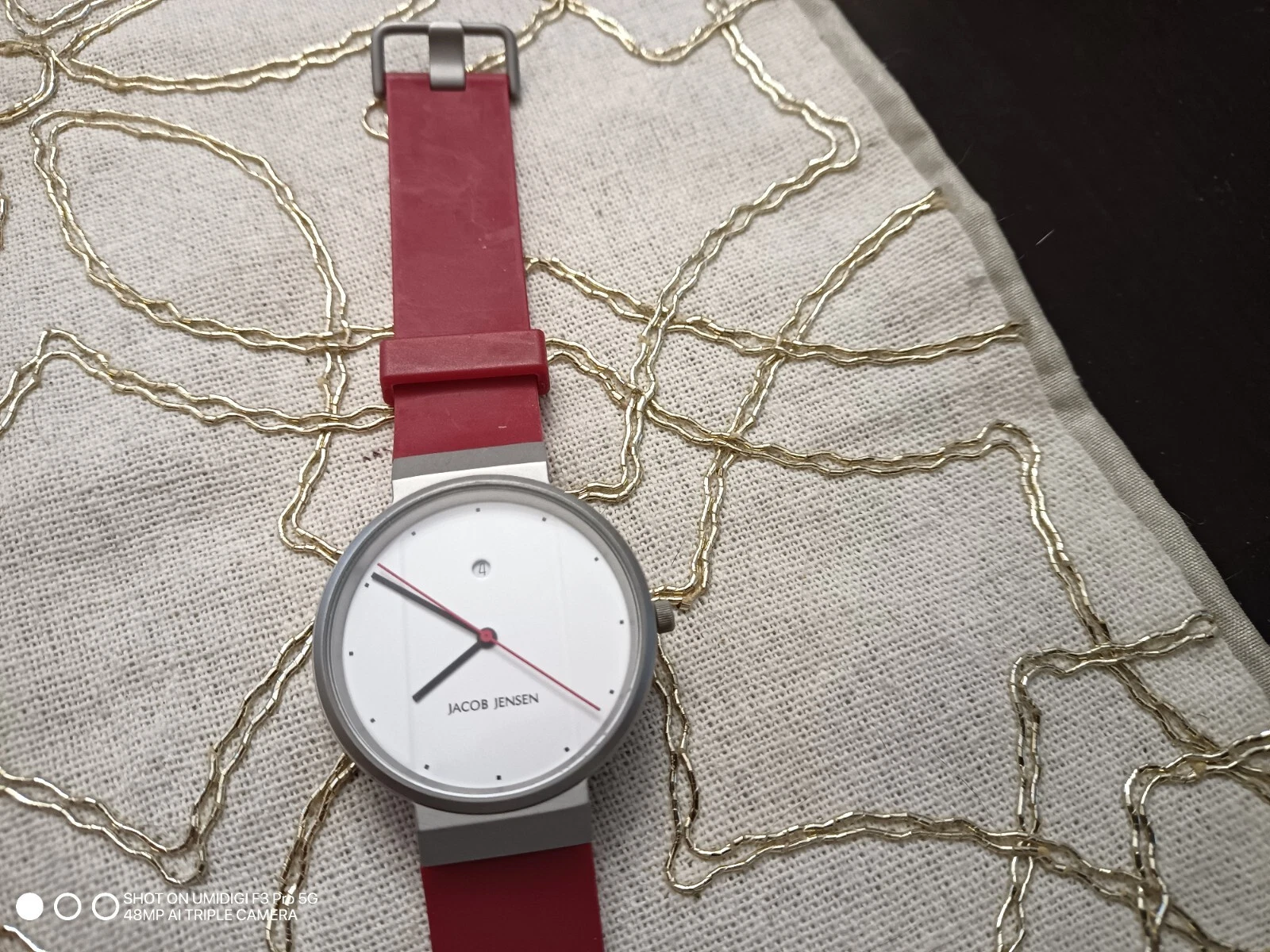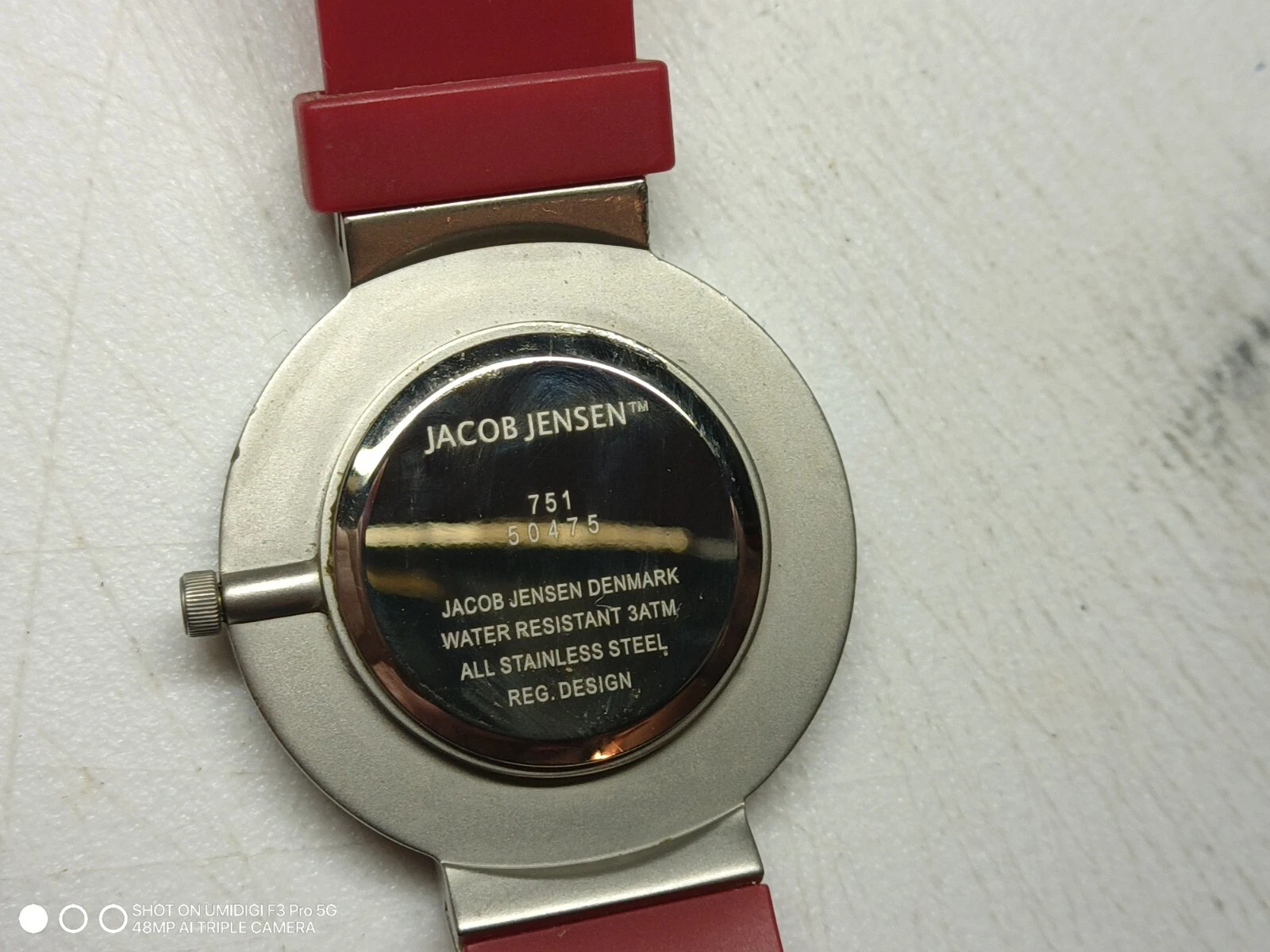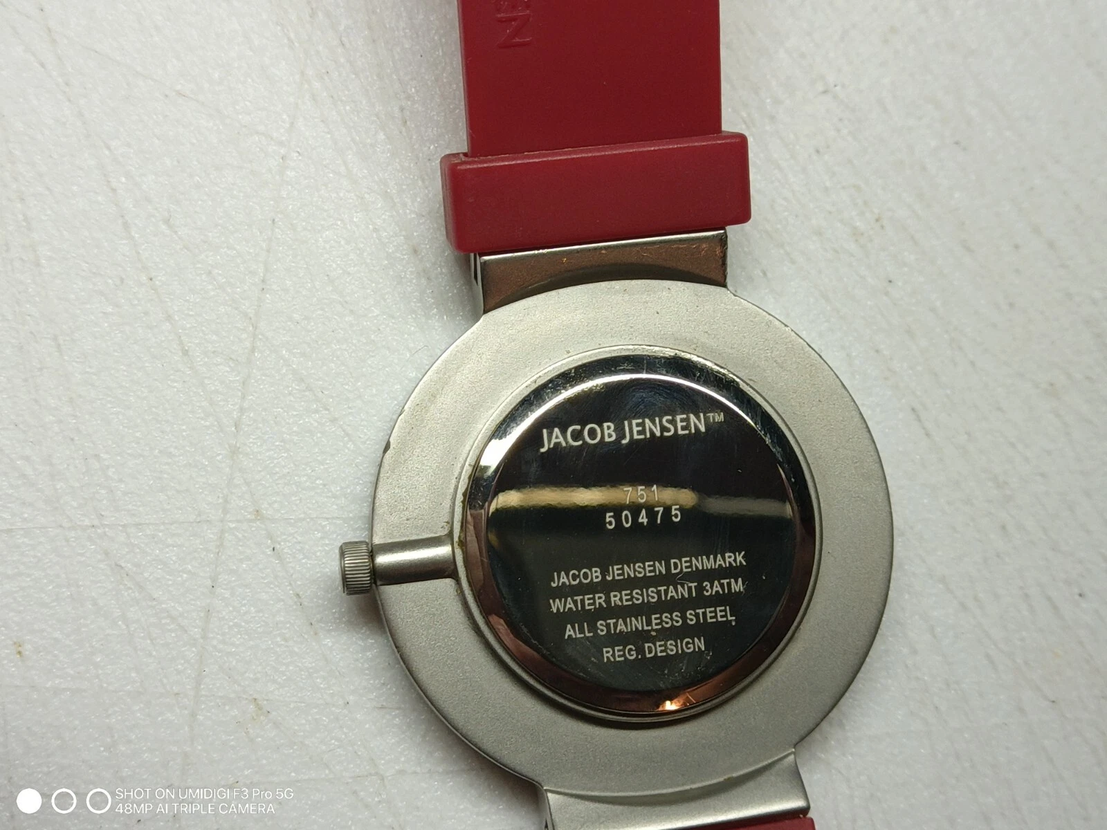 NEW Jacob Jensen Round Case White Dial Poly Band Watch NEEDS BATTERY