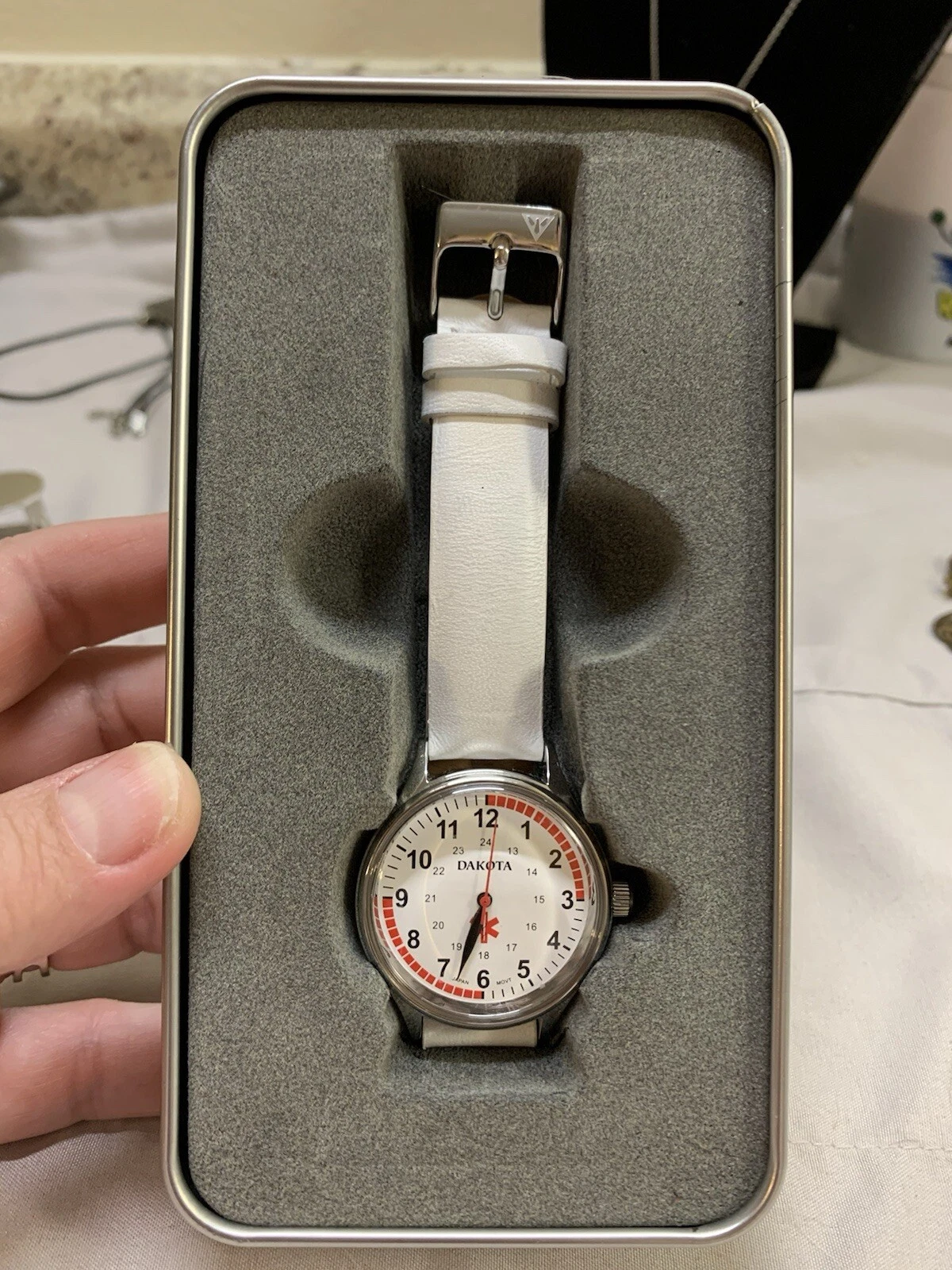 Dakota Nurses Watch White Leather Band