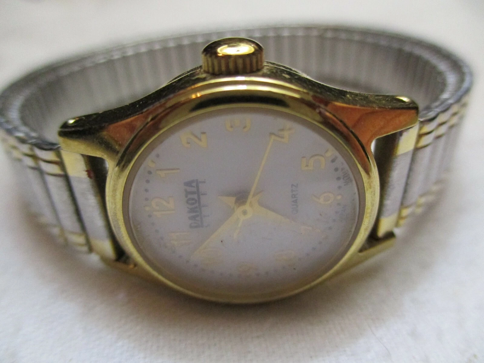 Dakota Steel Watch Gold & Silver Two Toned Expansion Band Round White Face