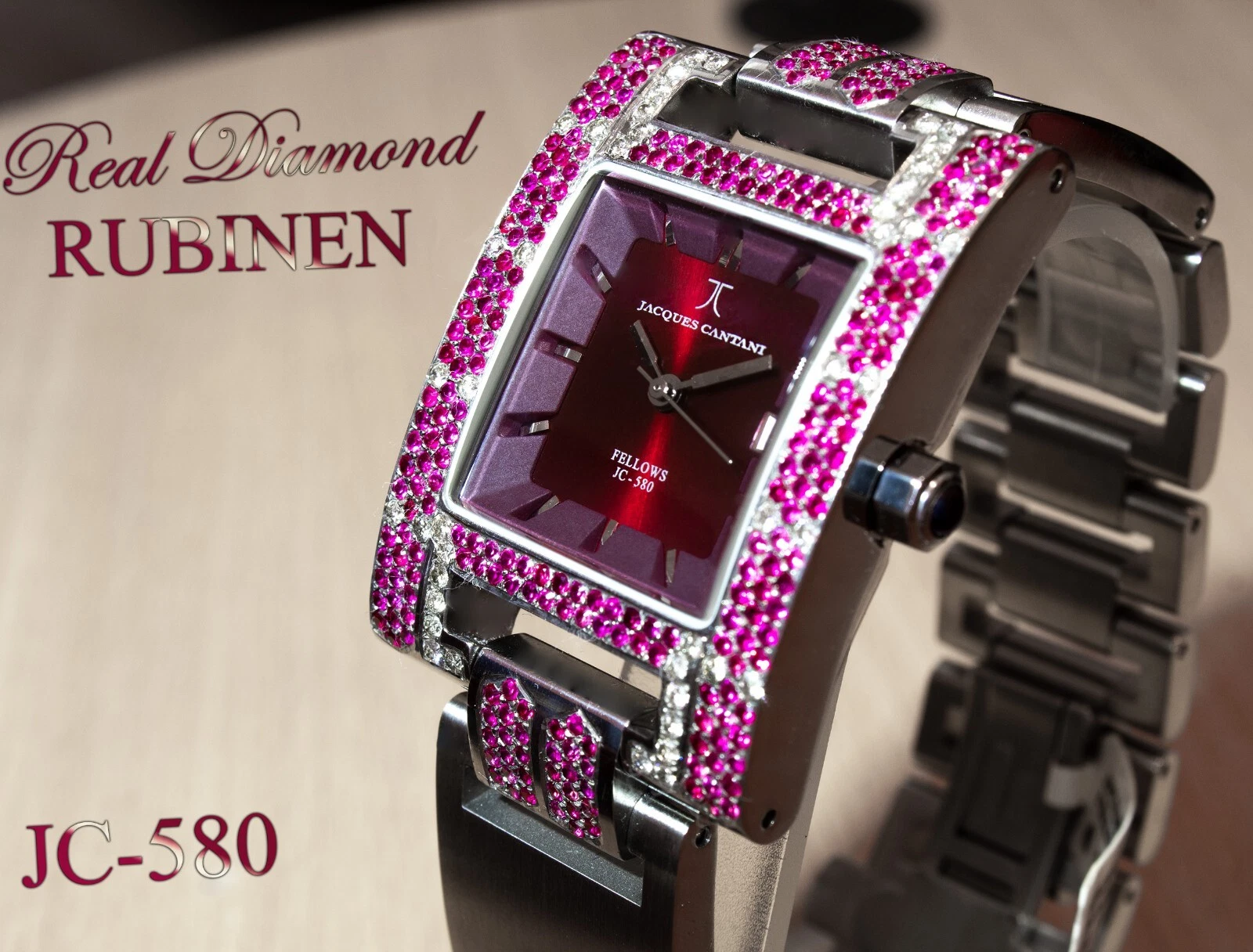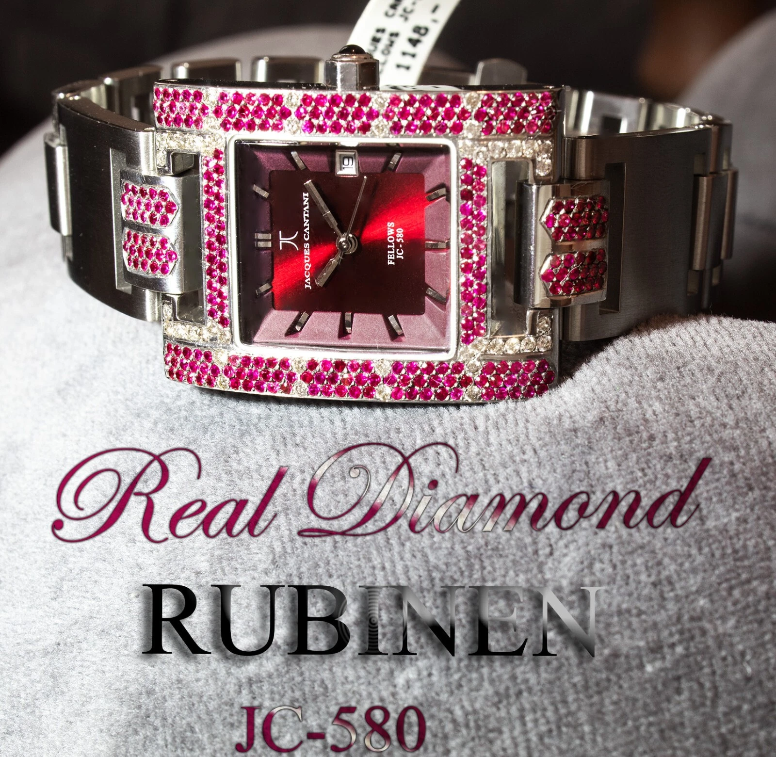 Jacques Cantani Watch Unique Stainless Steel, Real Diamonds And Synthetic Rubies