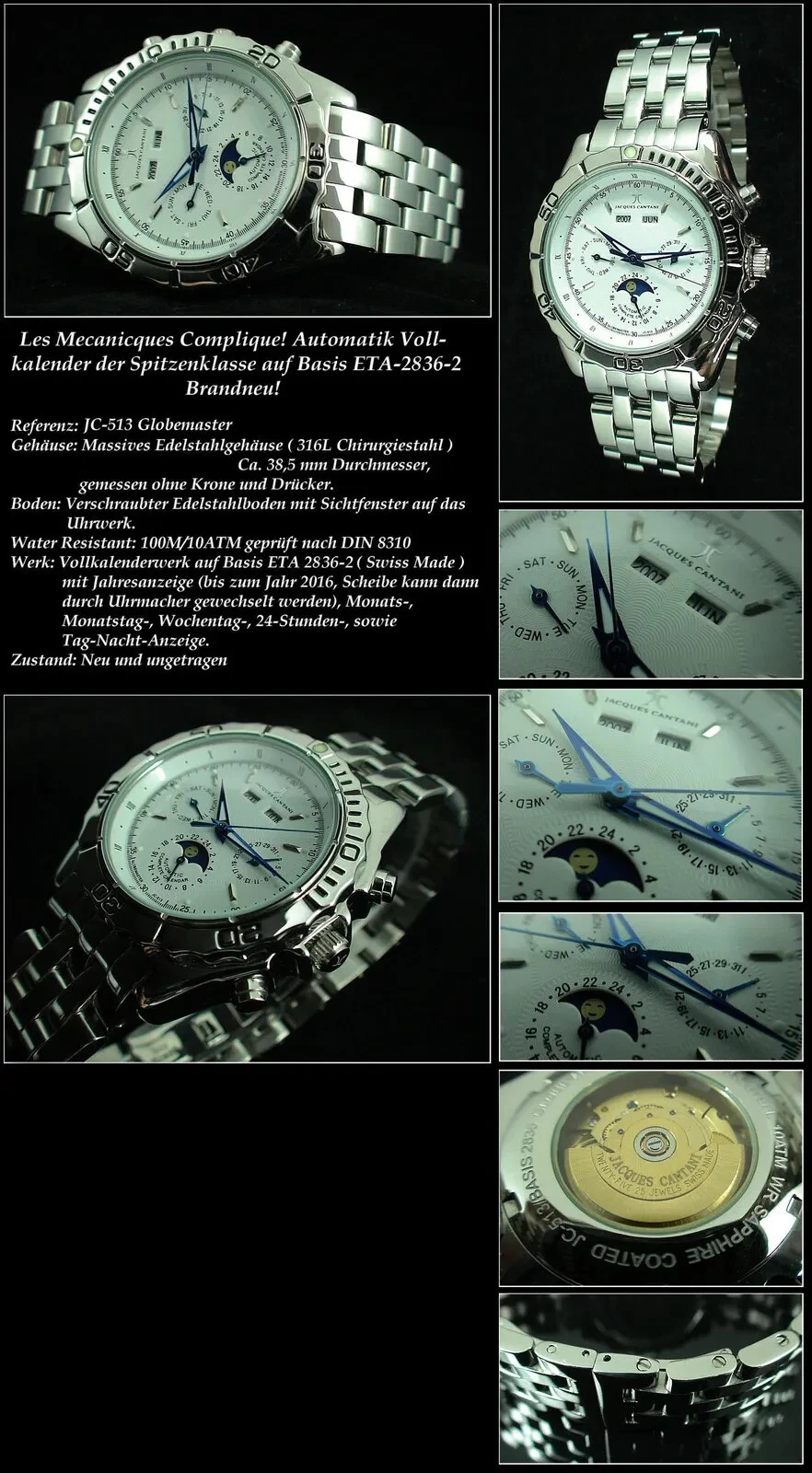 Automatic Watch Jacques Cantani Base Swiss Made Eta 2836 With Calendar Module