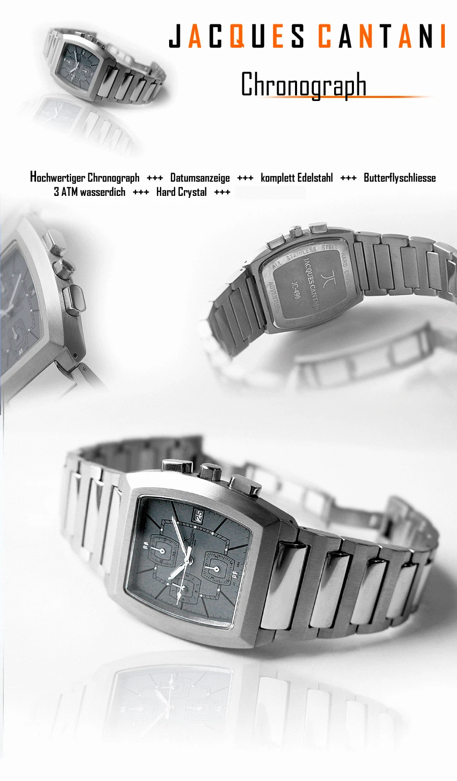 Chronograph Jacques Cantani Stainless Steel Tonneau JC-490 Date