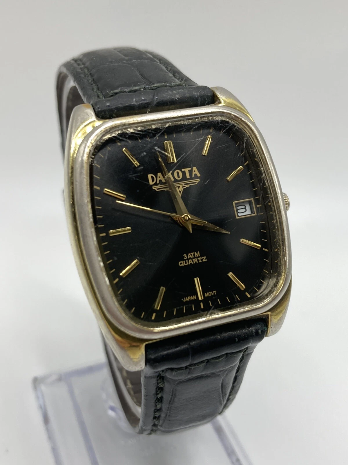 Dakota Men’s Date Dial Quatz Black Leather Watch New Batt