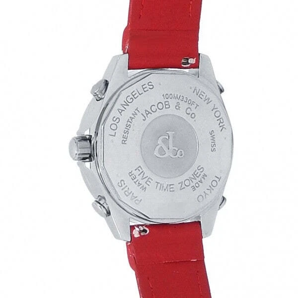 Jacob & Co Five Time Zones Stainless Steel Red Rubber Diamonds Red Watch JC47SR