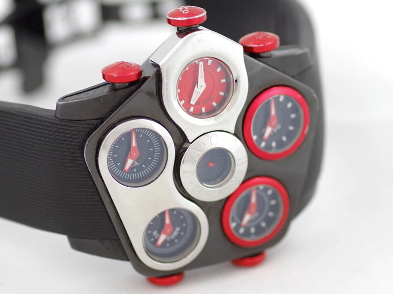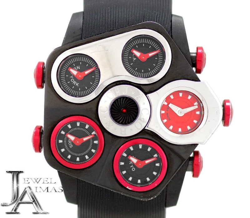 Jacob Five Time Zone JC-GR4-27 GRAND 47mm Black Red Dial SS  Men's Quartz