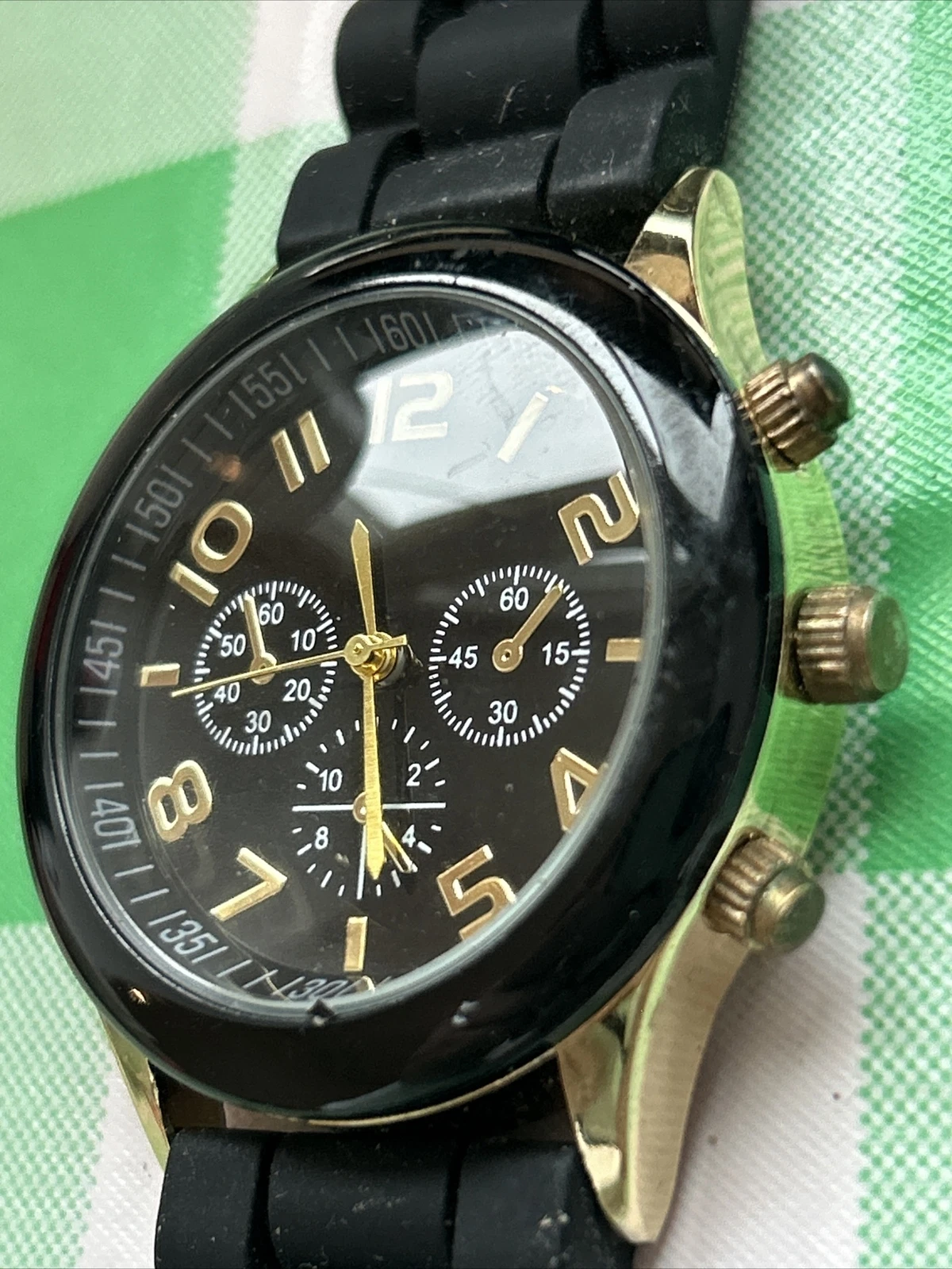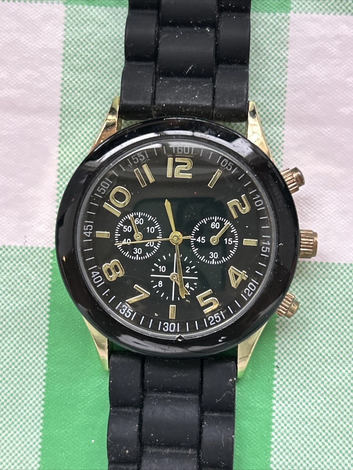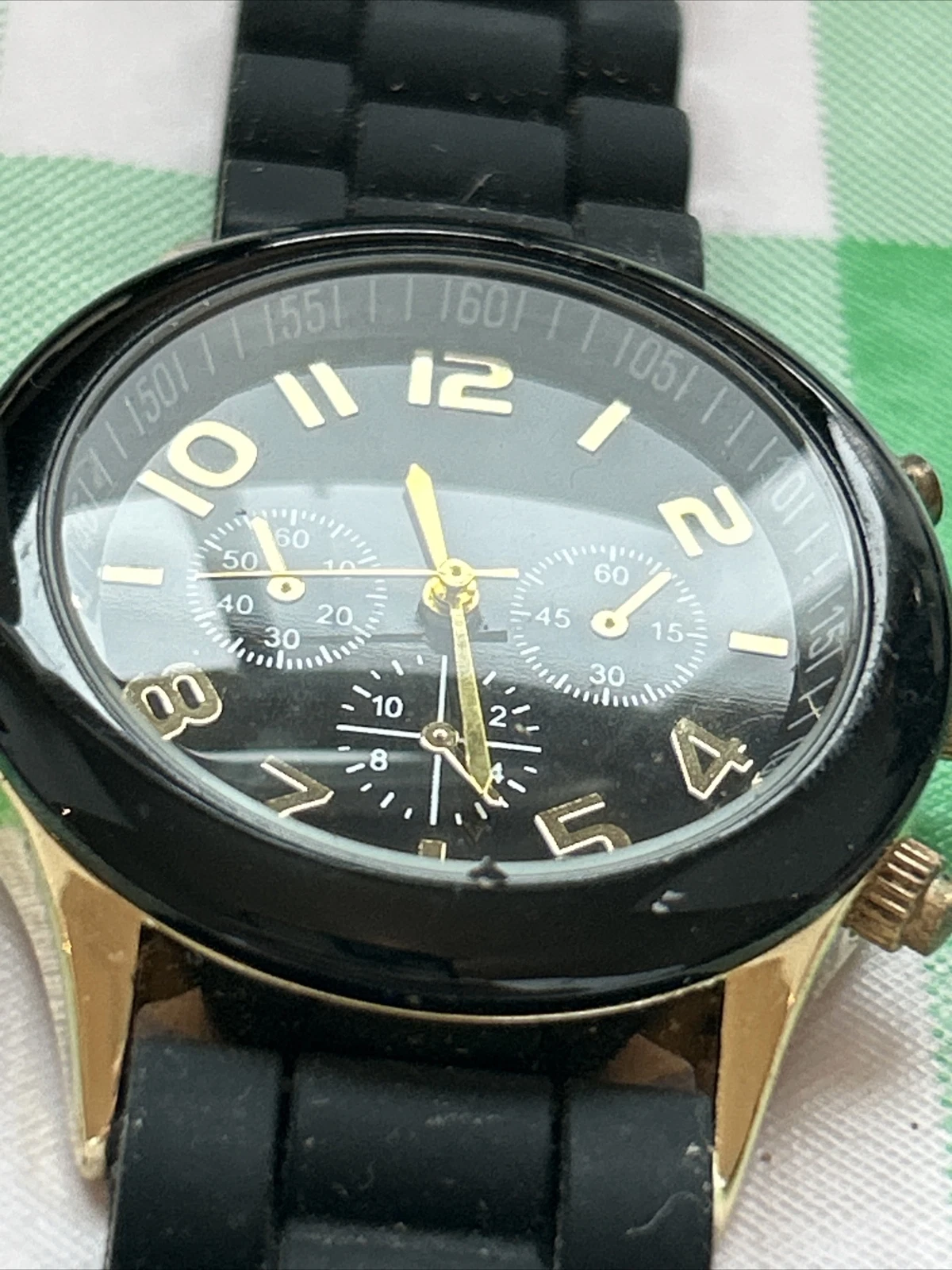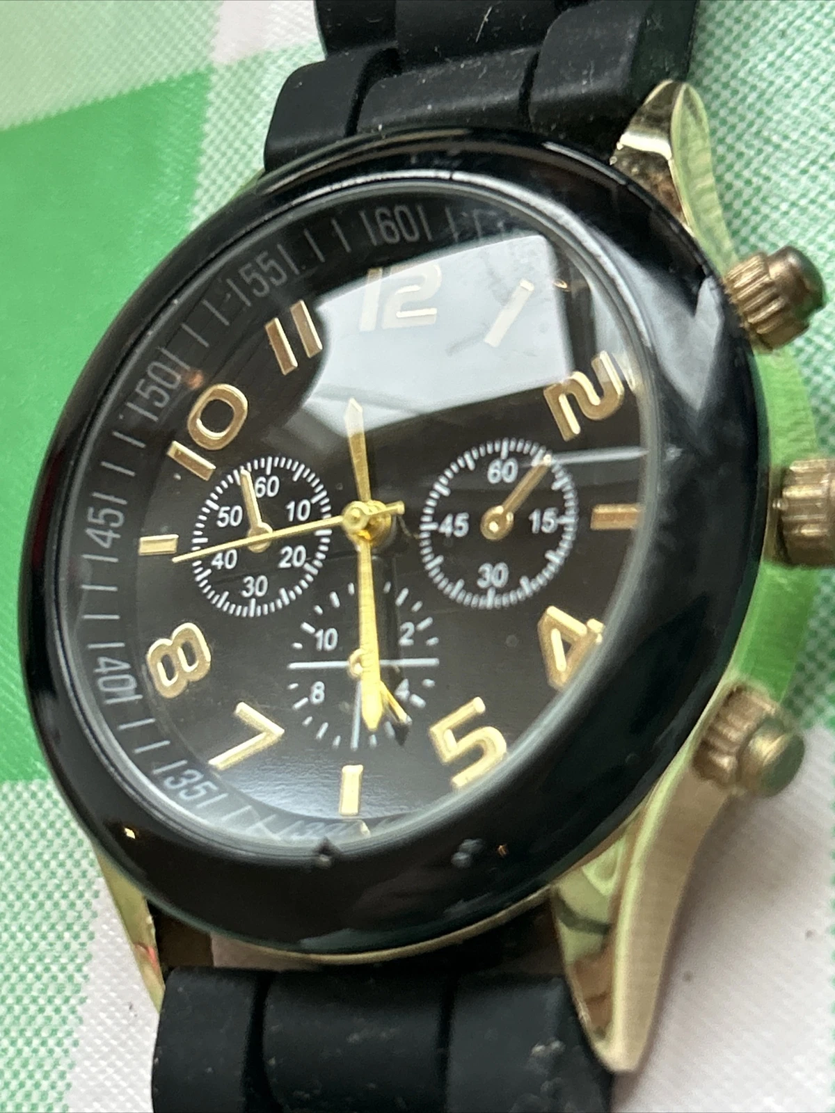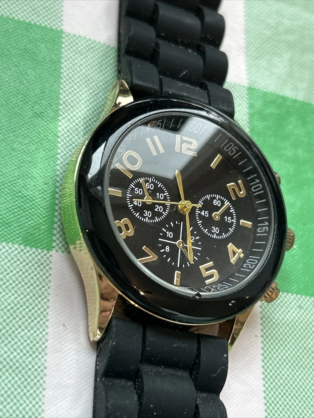 Darice Wristwatch Black/Gold Silicone Strap Women/Unisex Quartz Watch