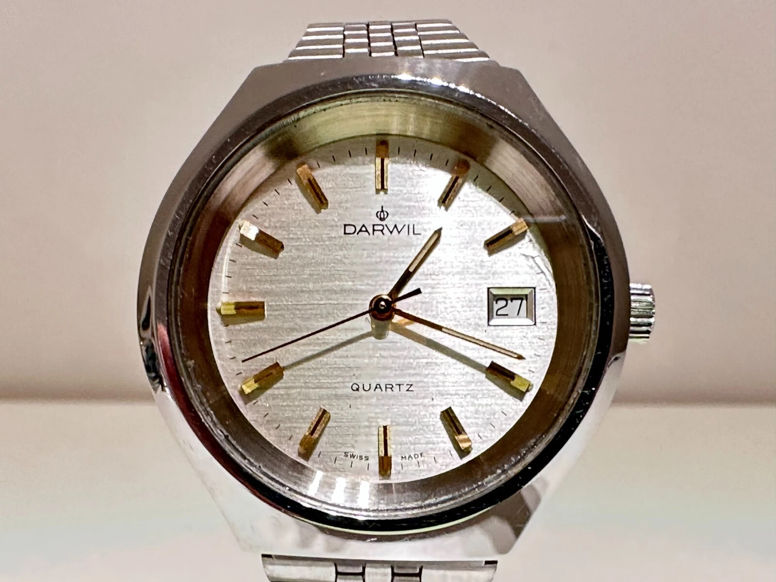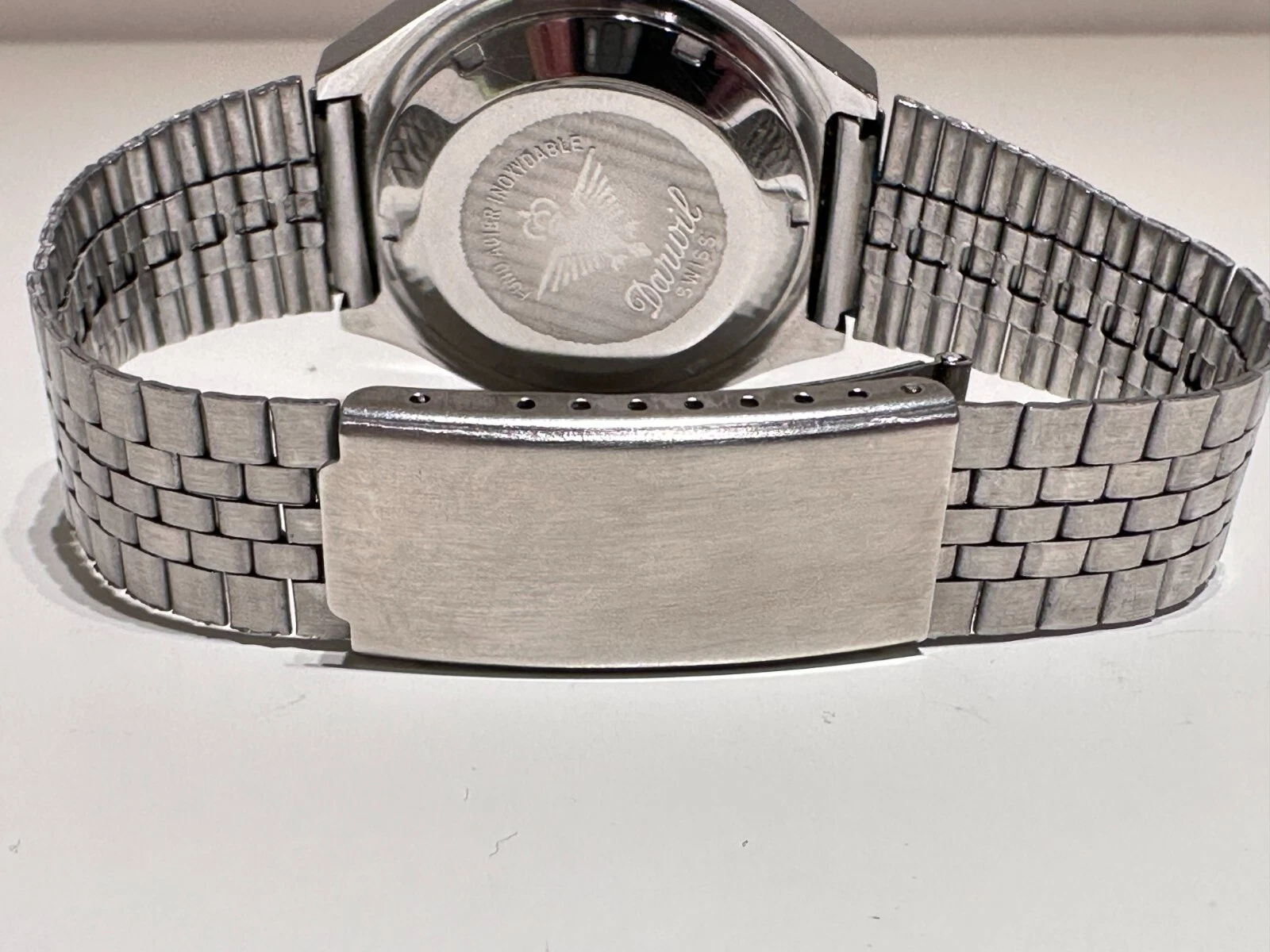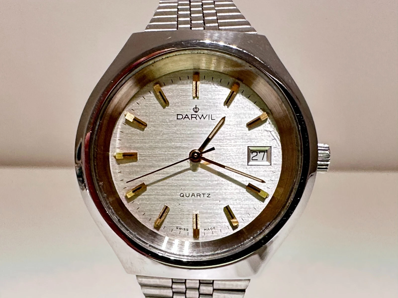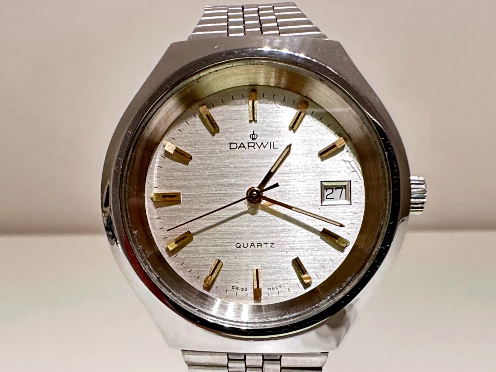 VINTAGE RARE COLLECTIBLE BIG SWISS ALL ST.STEEL MEN'S QUARTZ WATCH "DARWIL"
