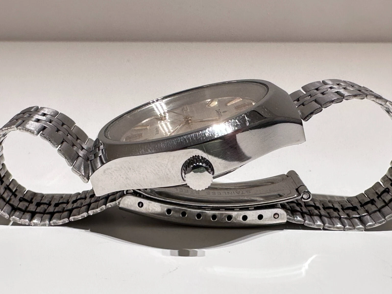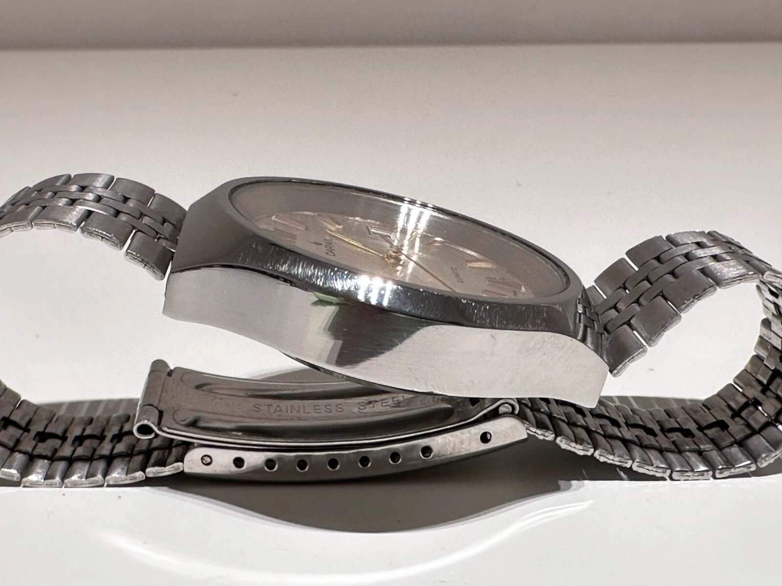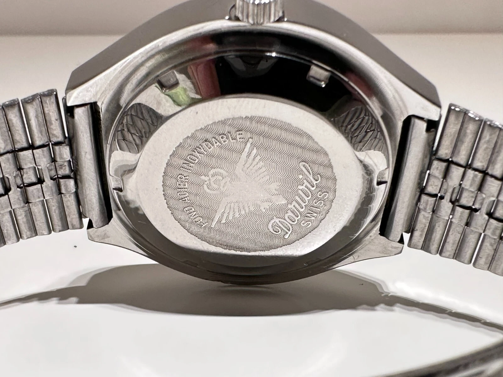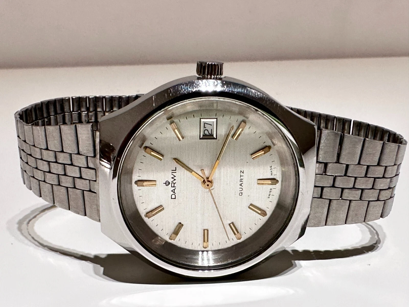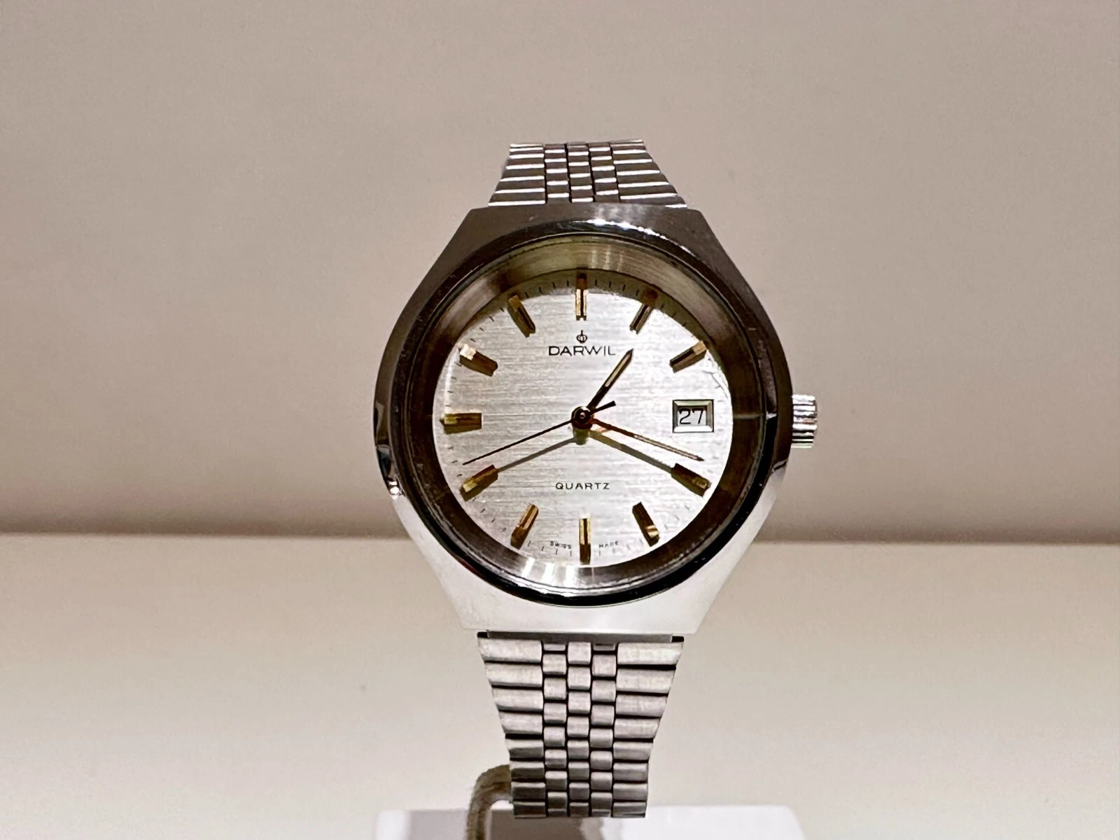 VINTAGE RARE COLLECTIBLE BIG SWISS ALL ST.STEEL MEN'S QUARTZ WATCH "DARWIL"