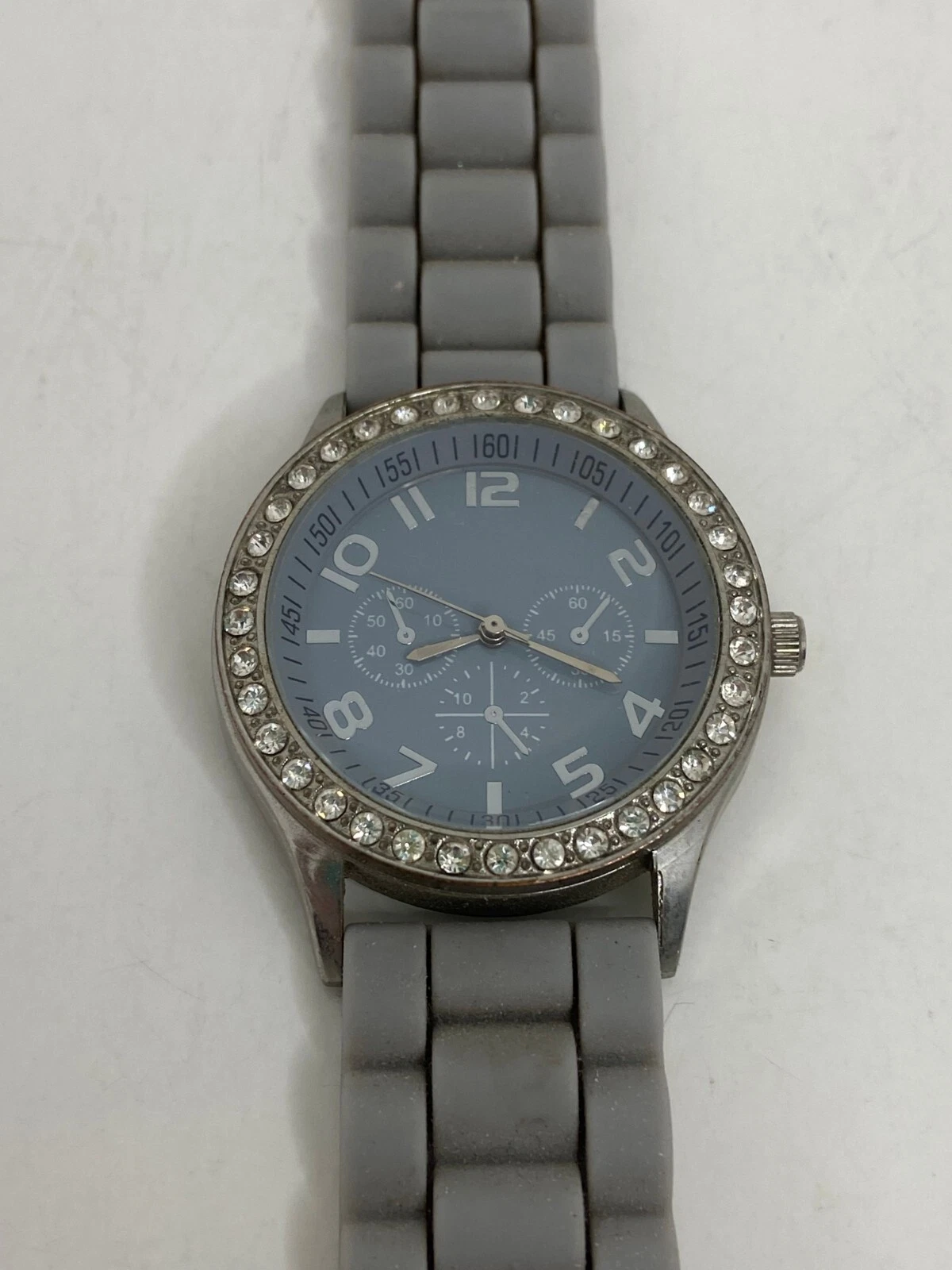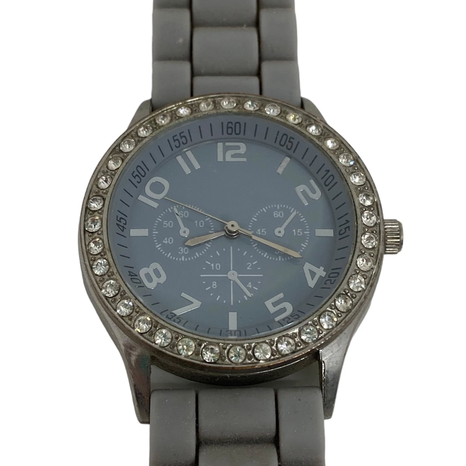 Women's 40mm Silver Tone Darice Watch, Crystal Accents Gray Silicone Link Band