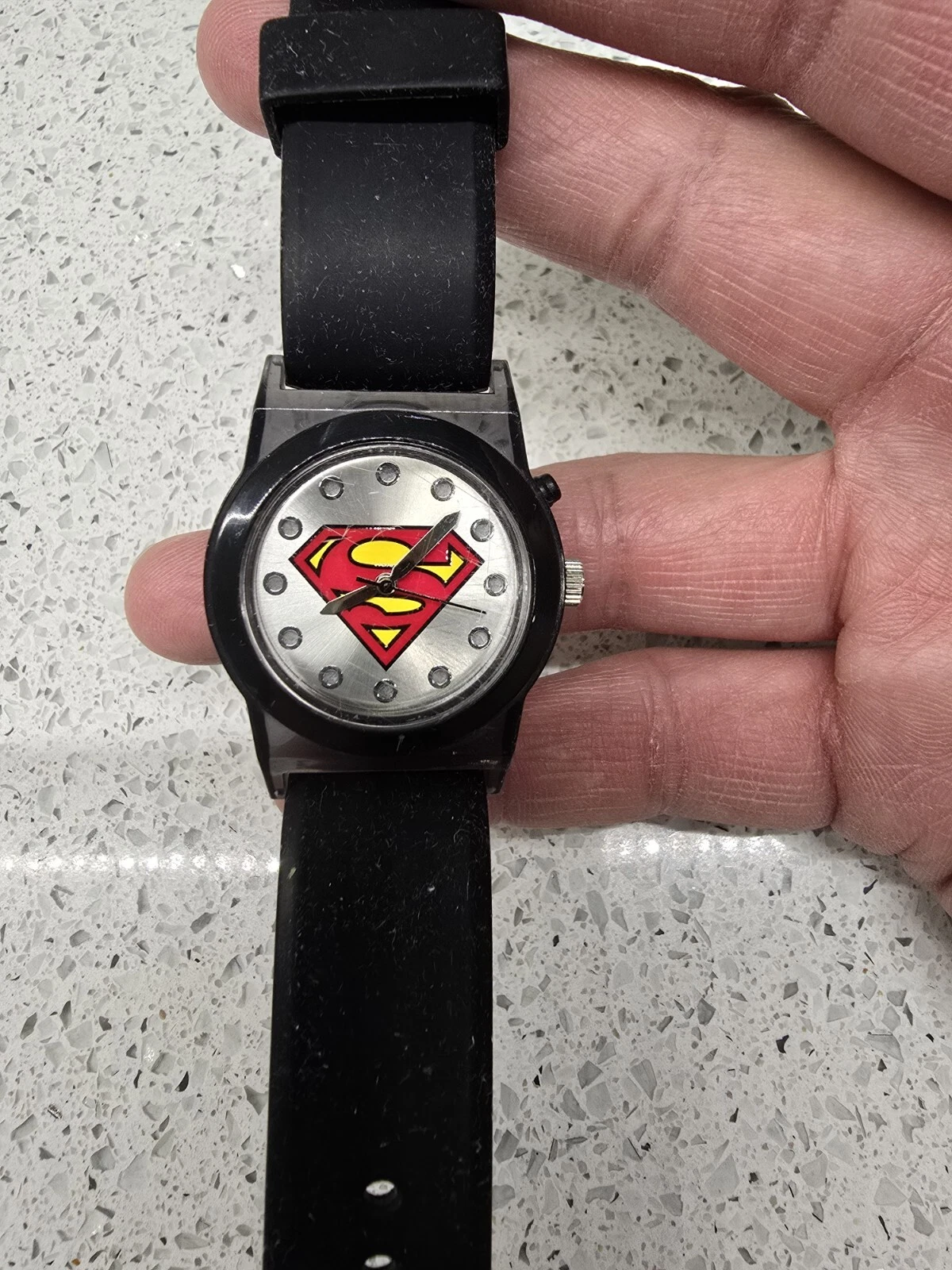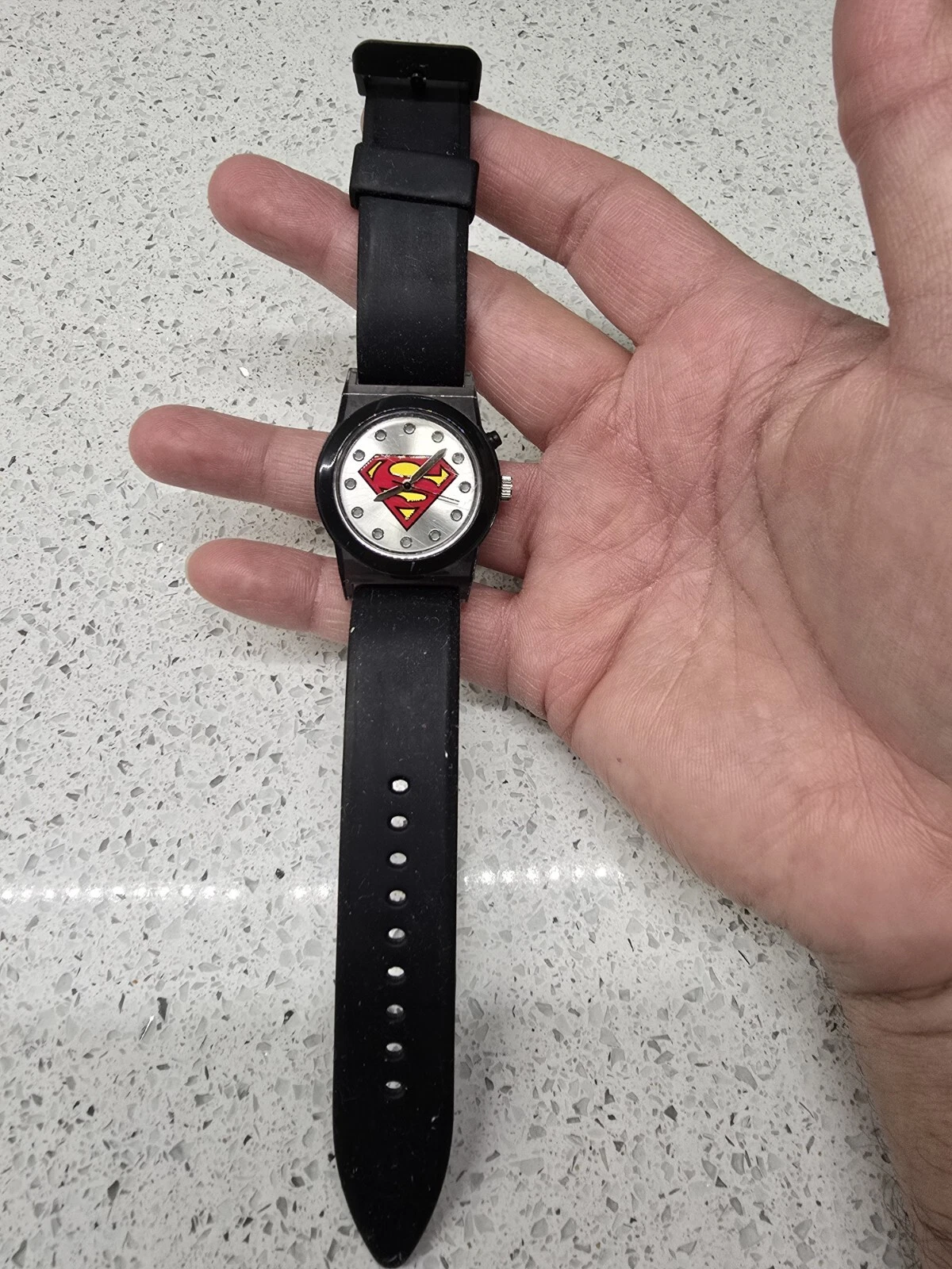 Accutime Youth Superman Watch DC Comics s15 SUP9128KL Black Silicone Band
