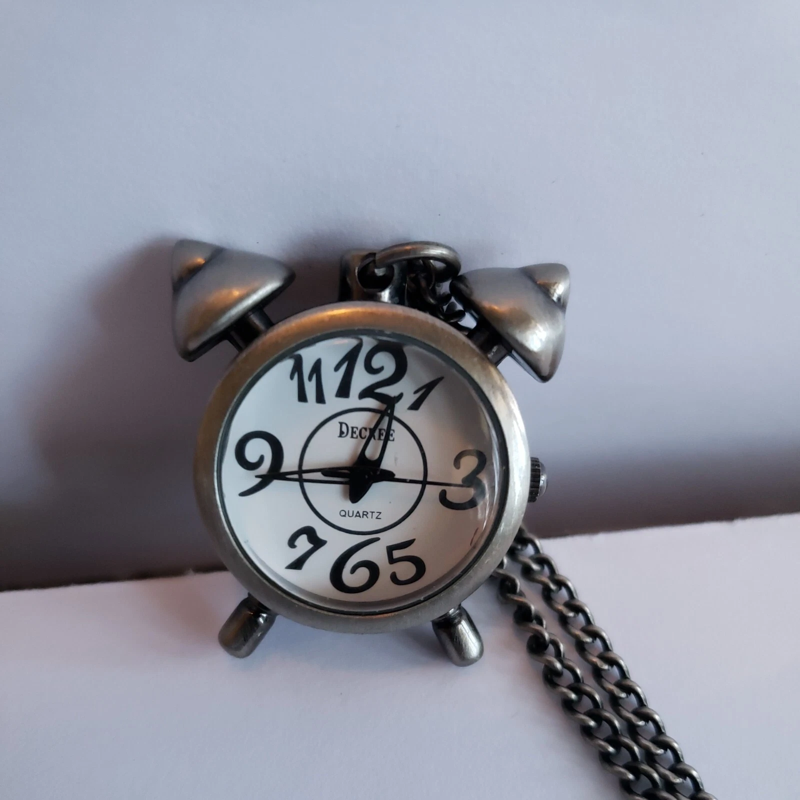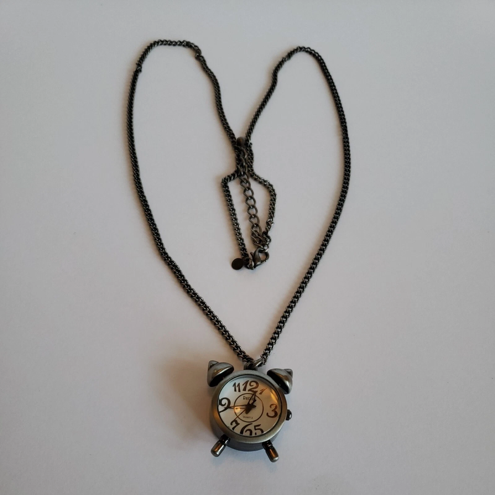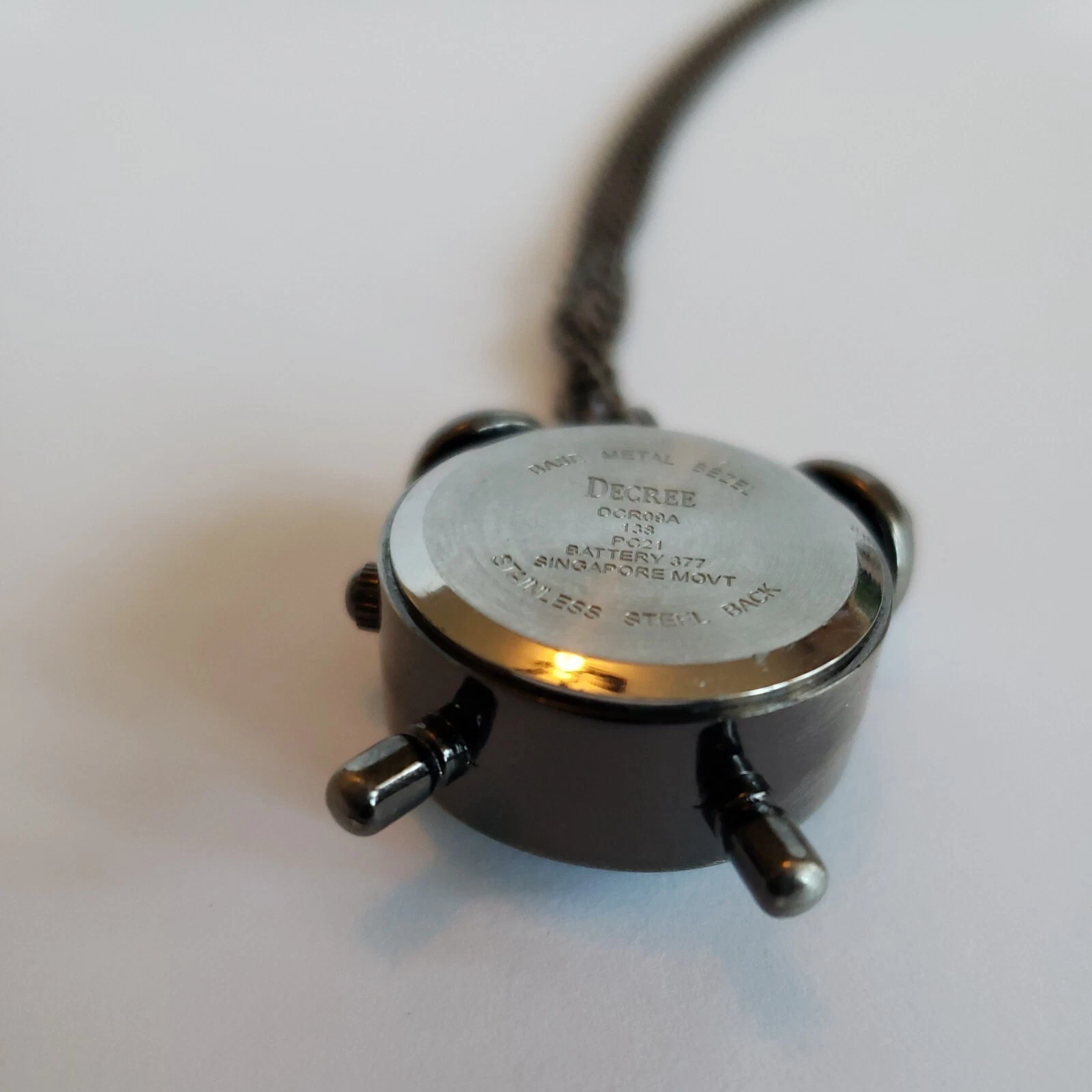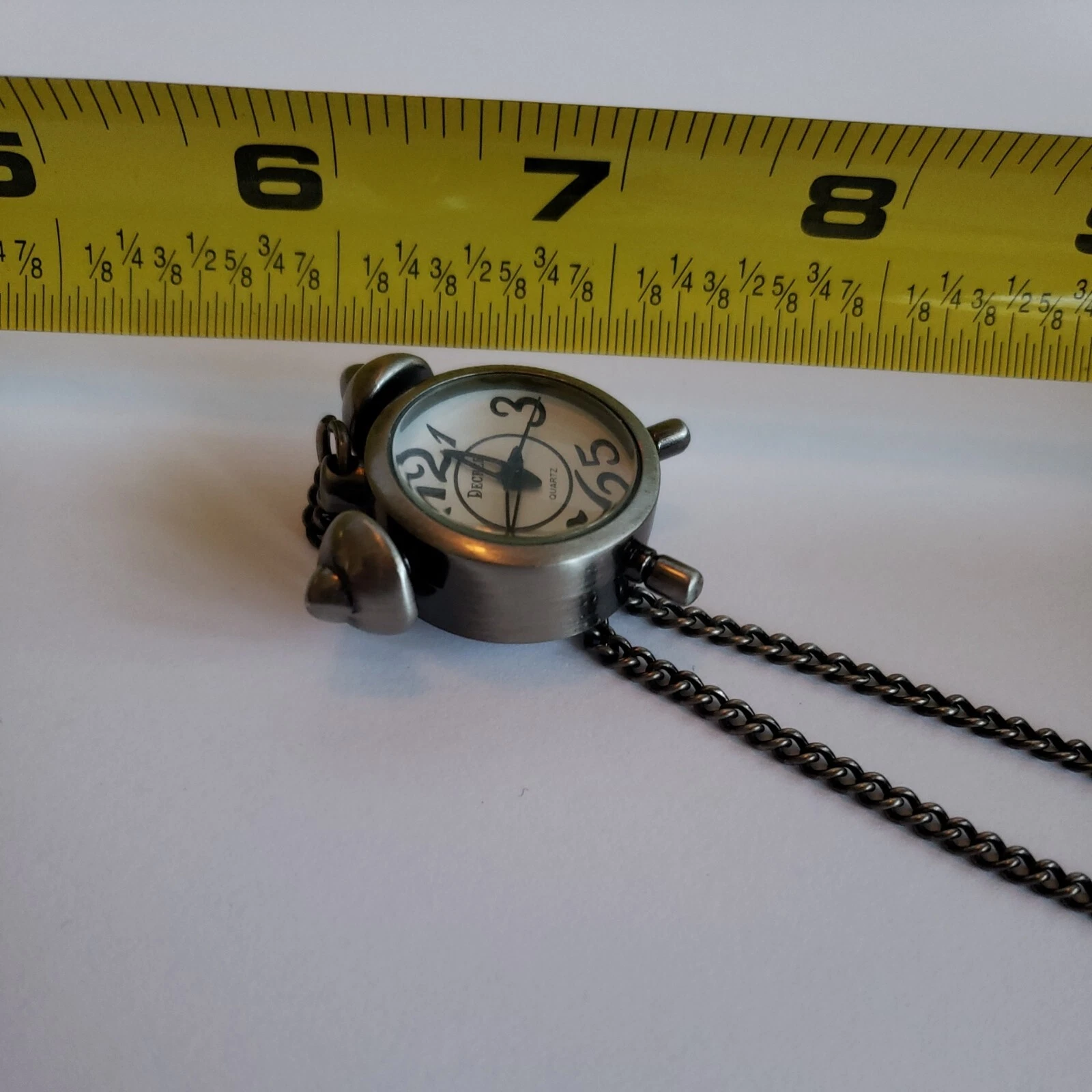 Decree Alarm Clock Shaped Necklace New Battery Quartz Pre-Owned