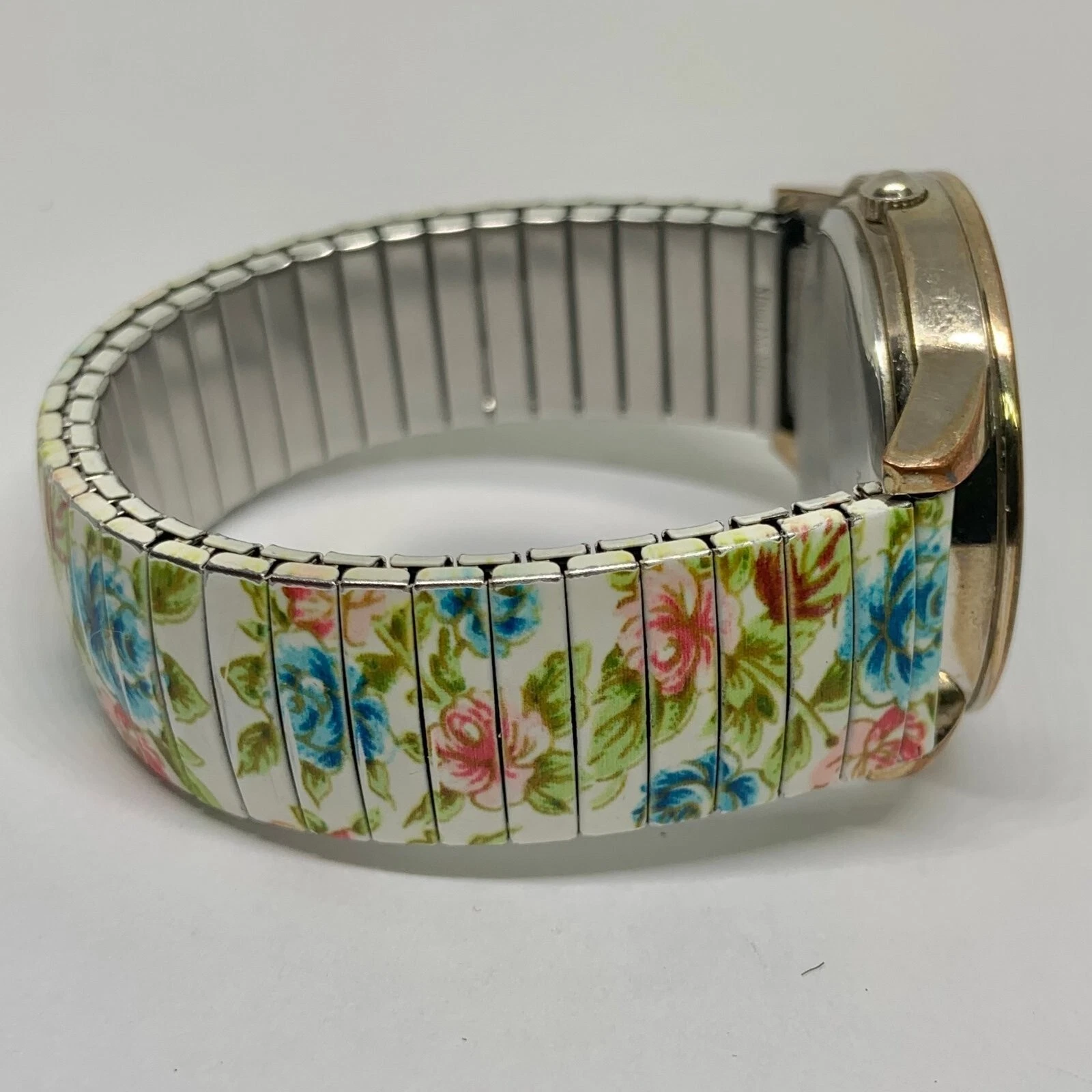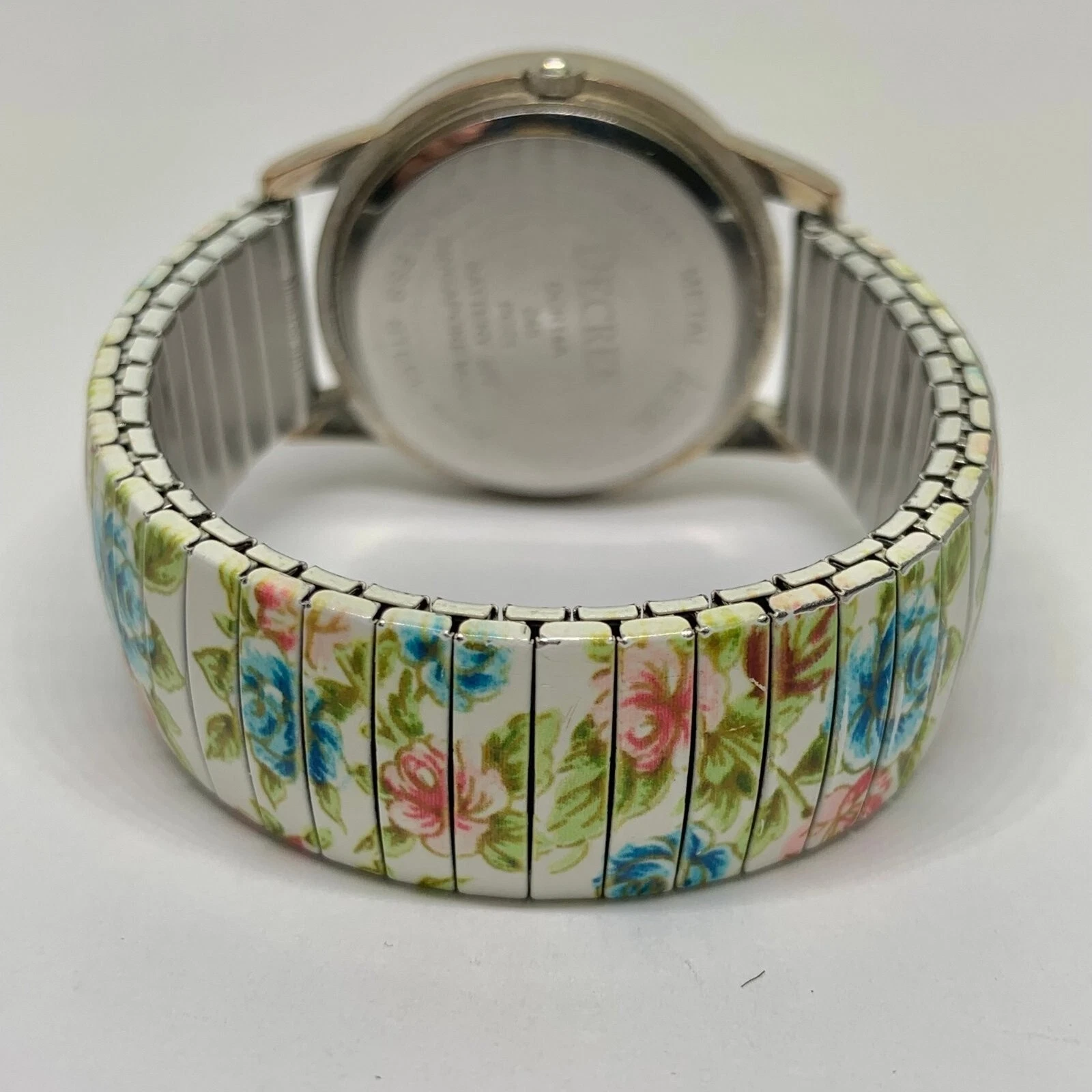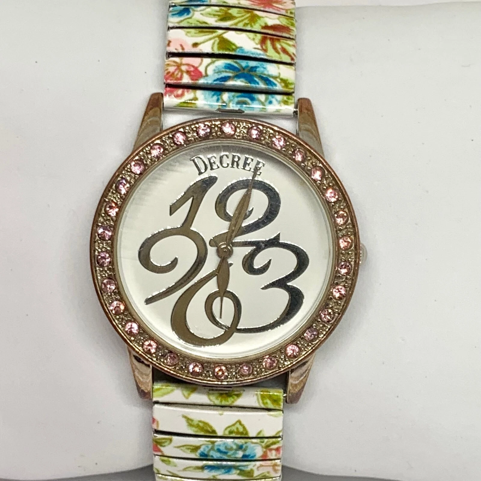 Decree ladies quartz watch 35mm pink rhinestones floral stretch band running