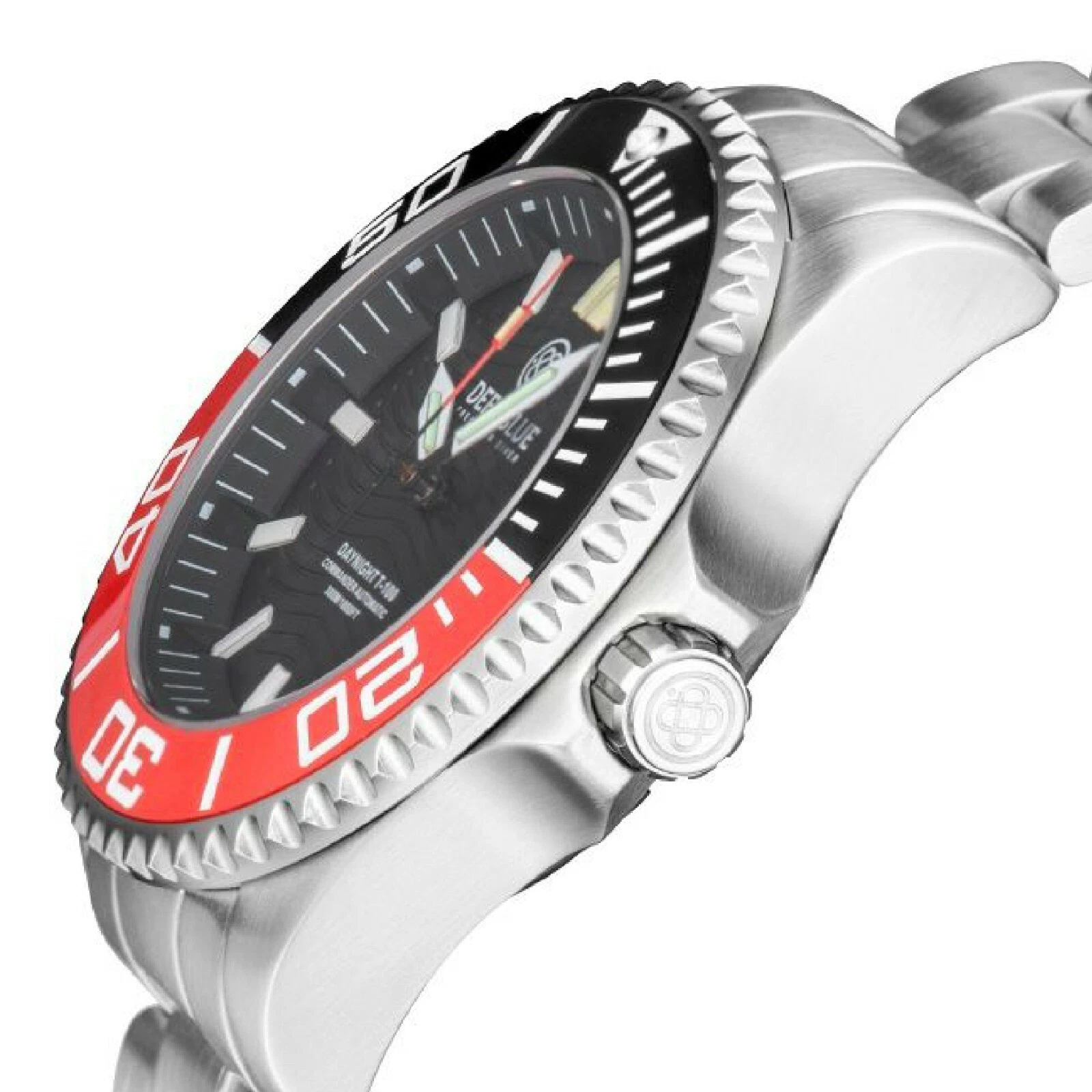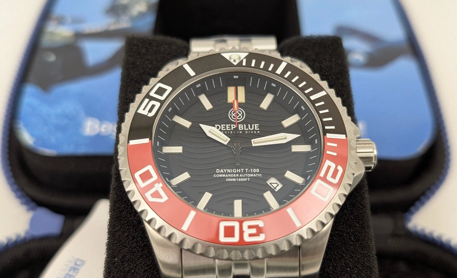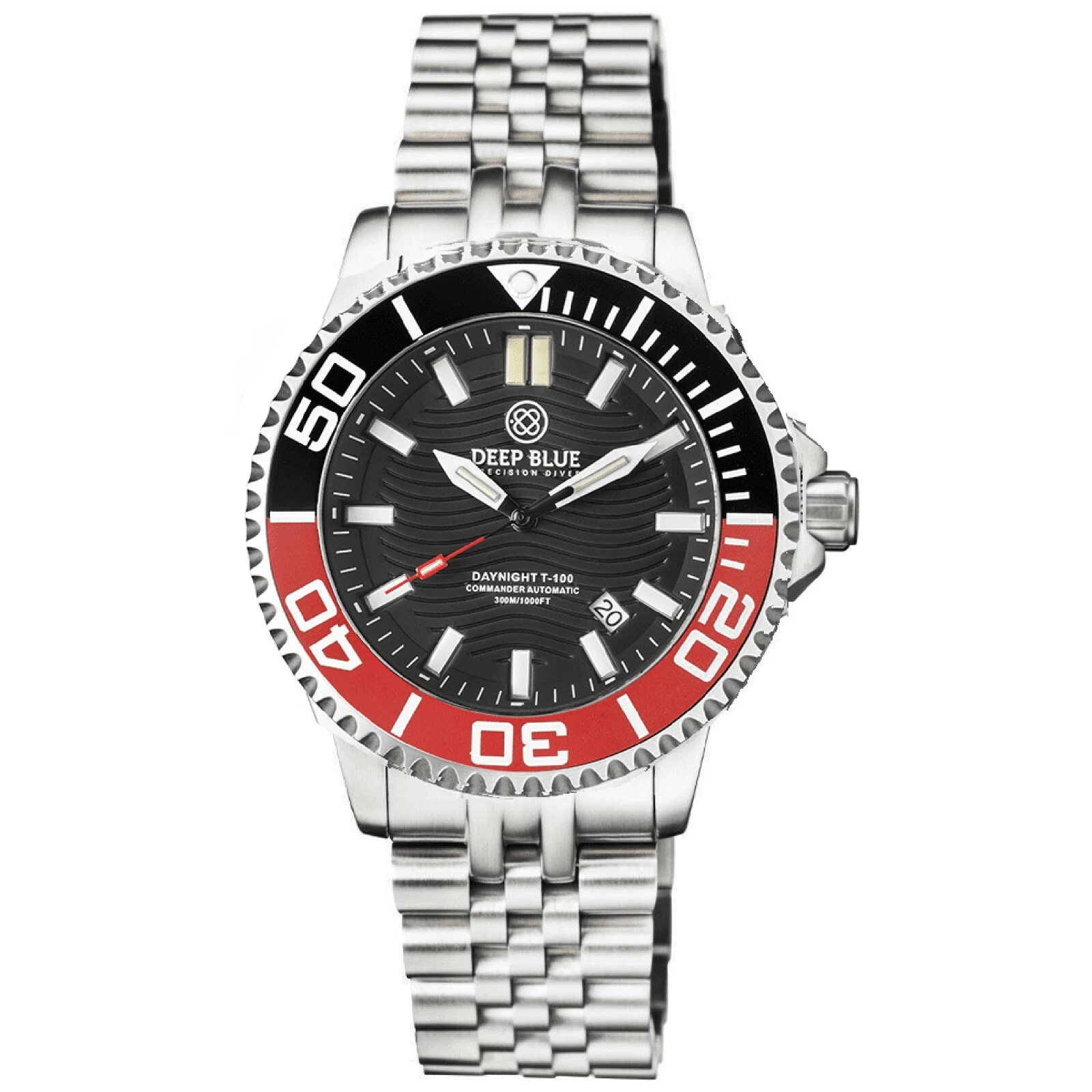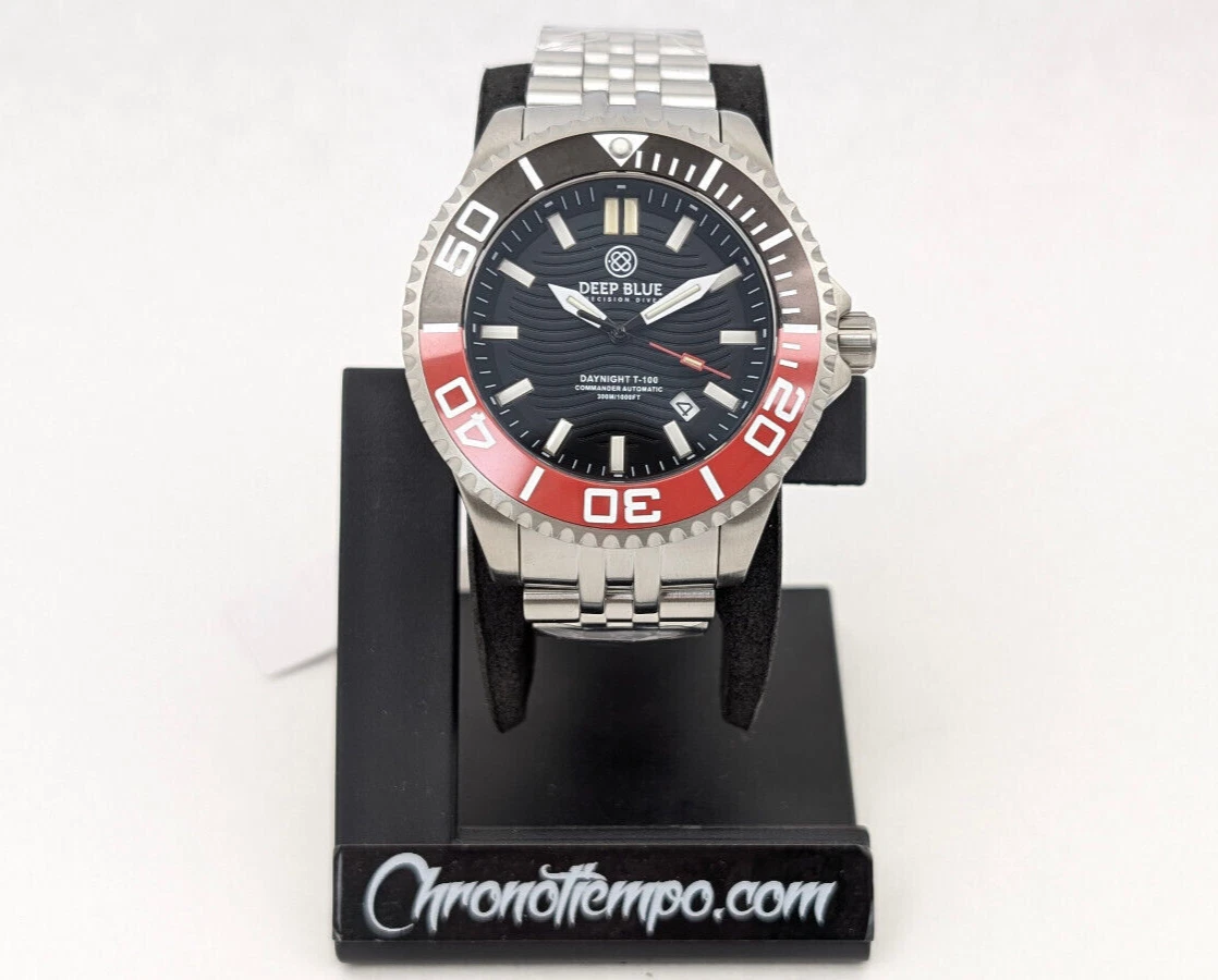 Deep Blue DayNight Commander T-100 Automatic Men's Diver Watch Black-Red Bezel