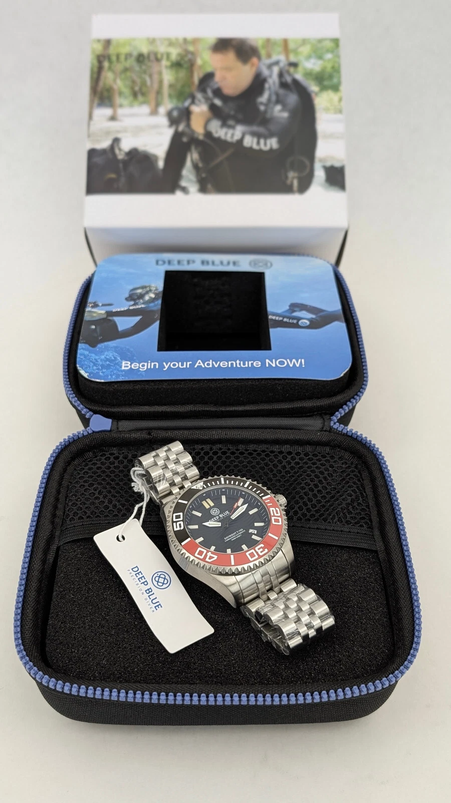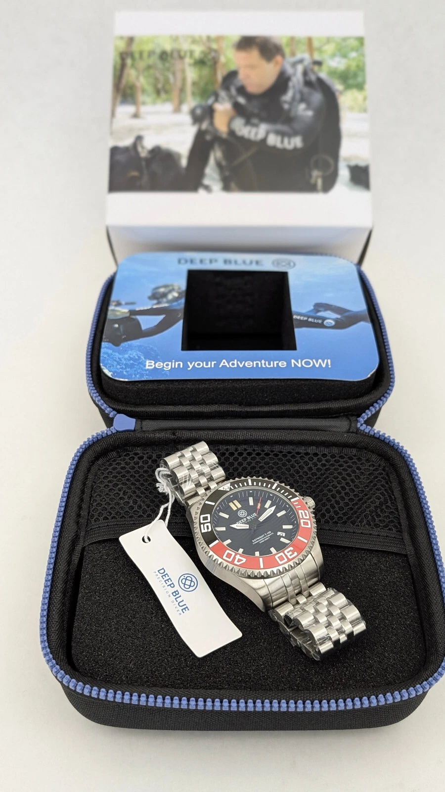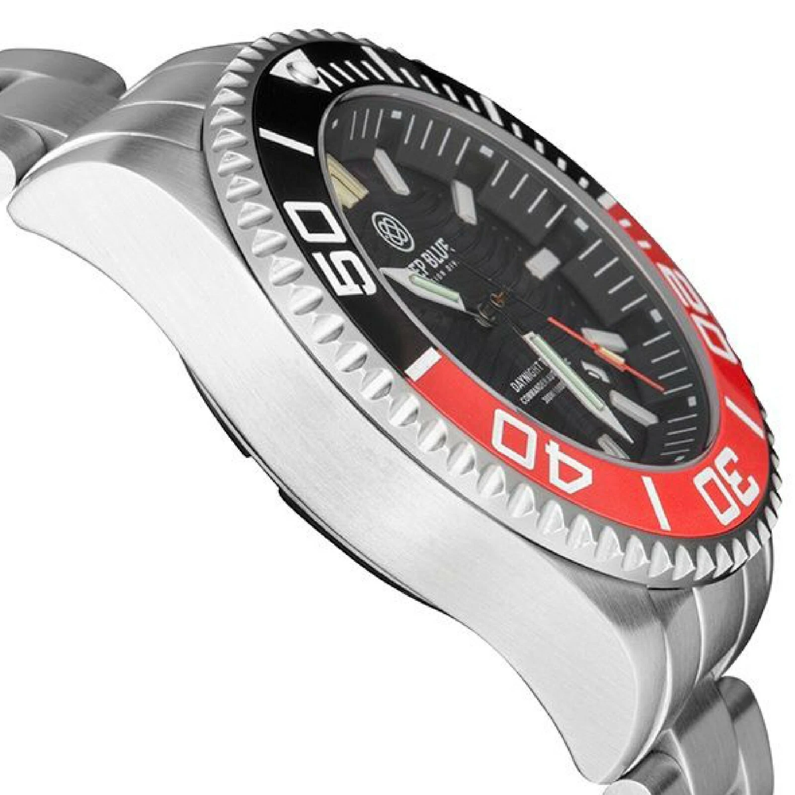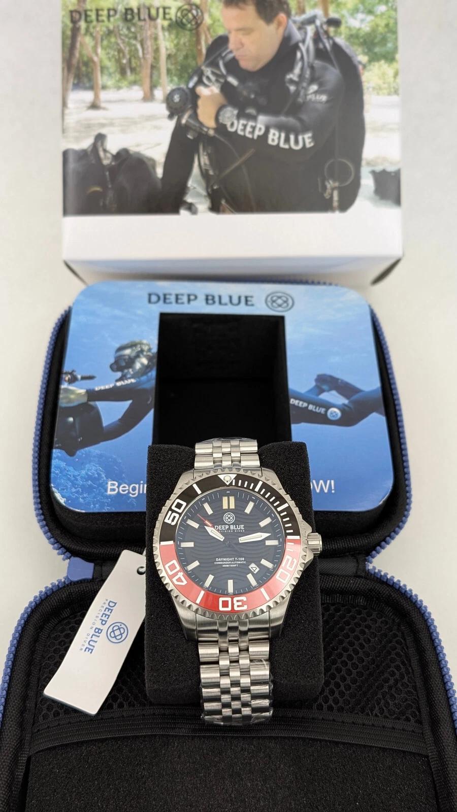 Deep Blue DayNight Commander T-100 Automatic Men's Diver Watch Black-Red Bezel