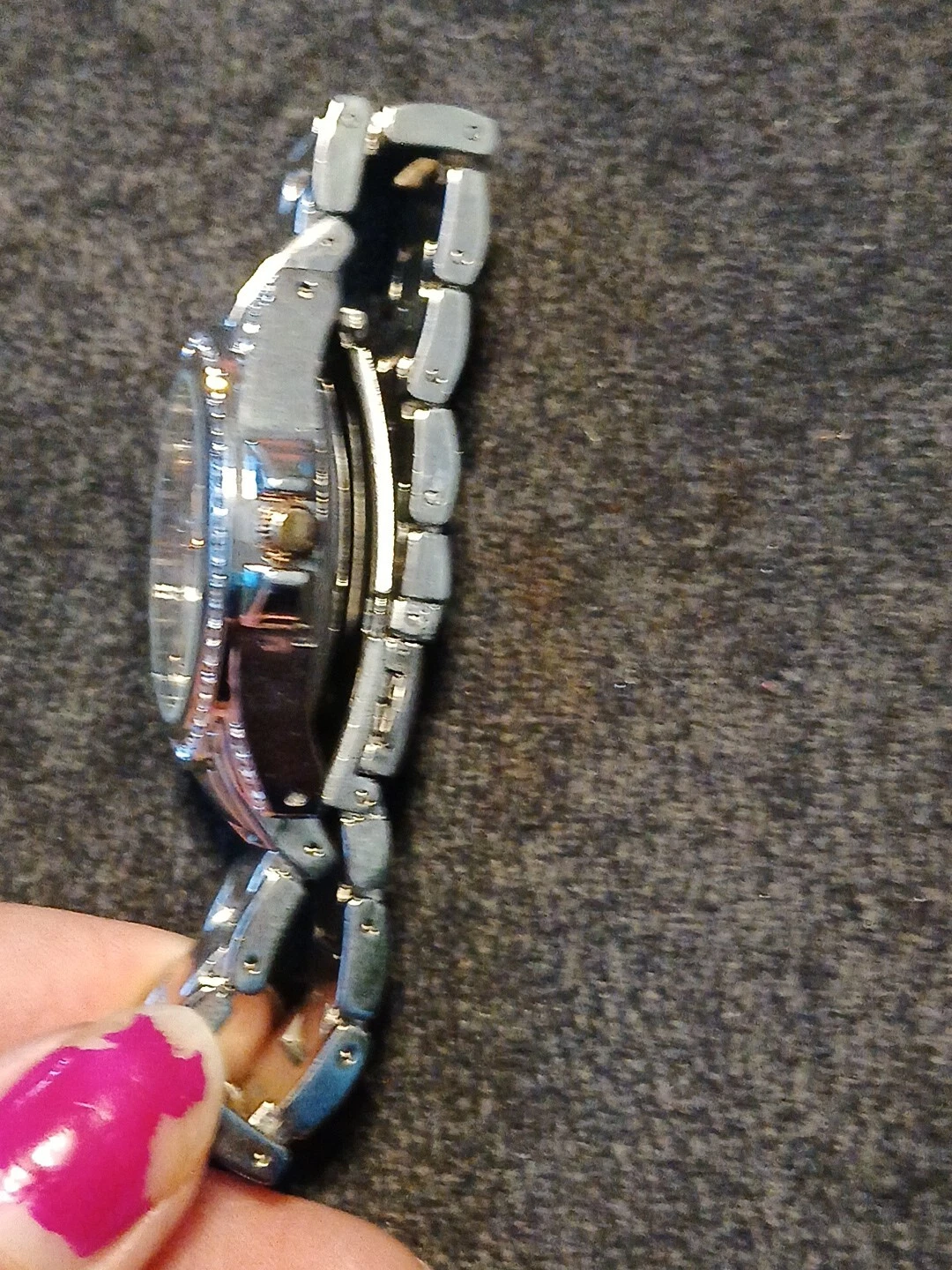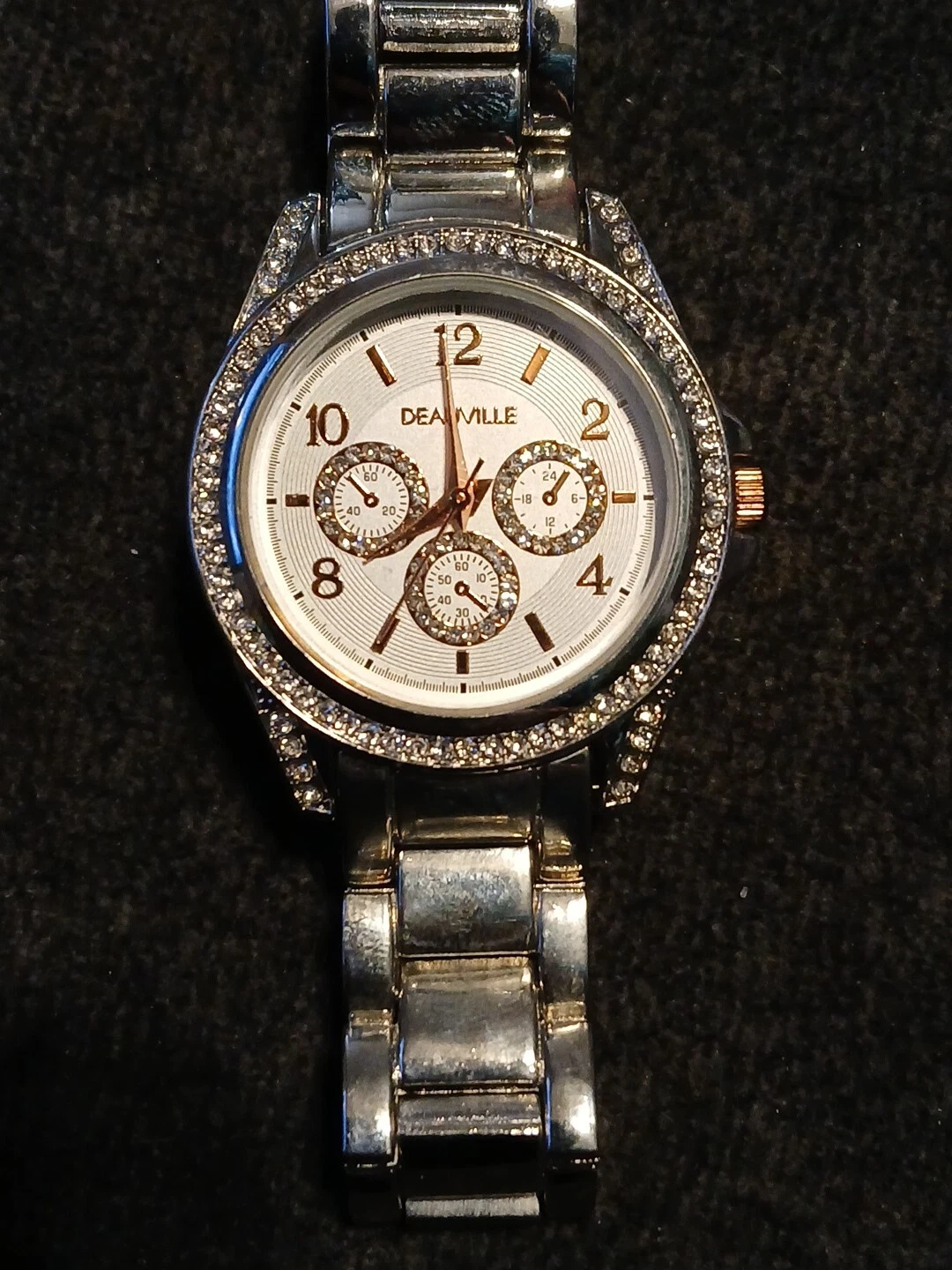 Deauville Crystal Accent Silver Tone Dial Round Case Stainless Steel Link Watch
