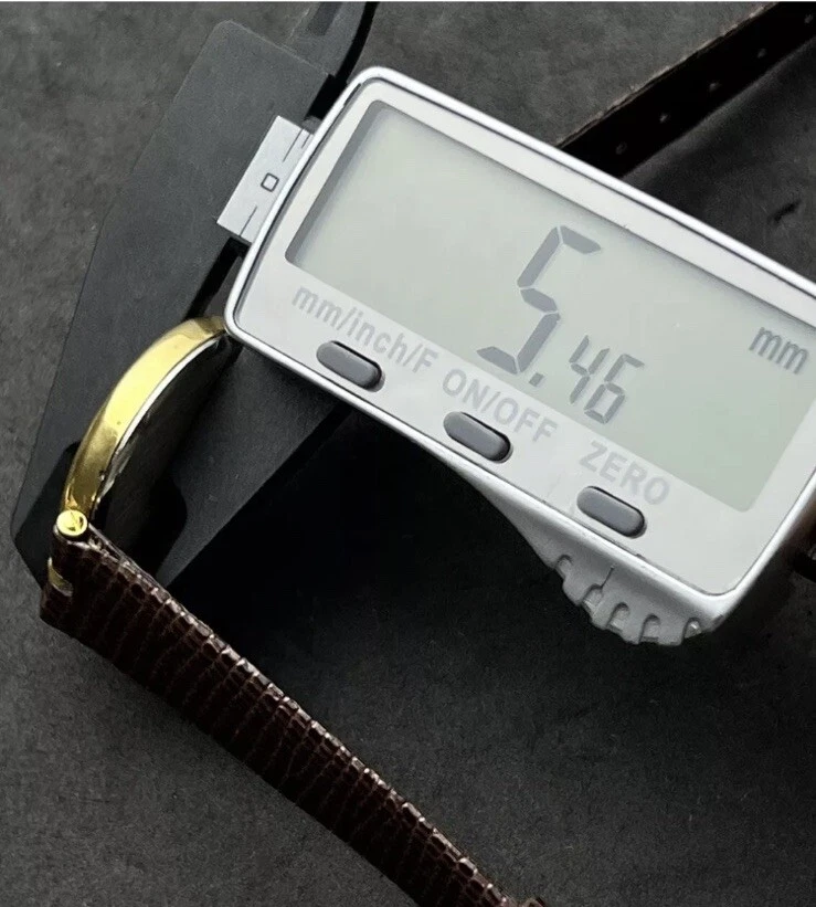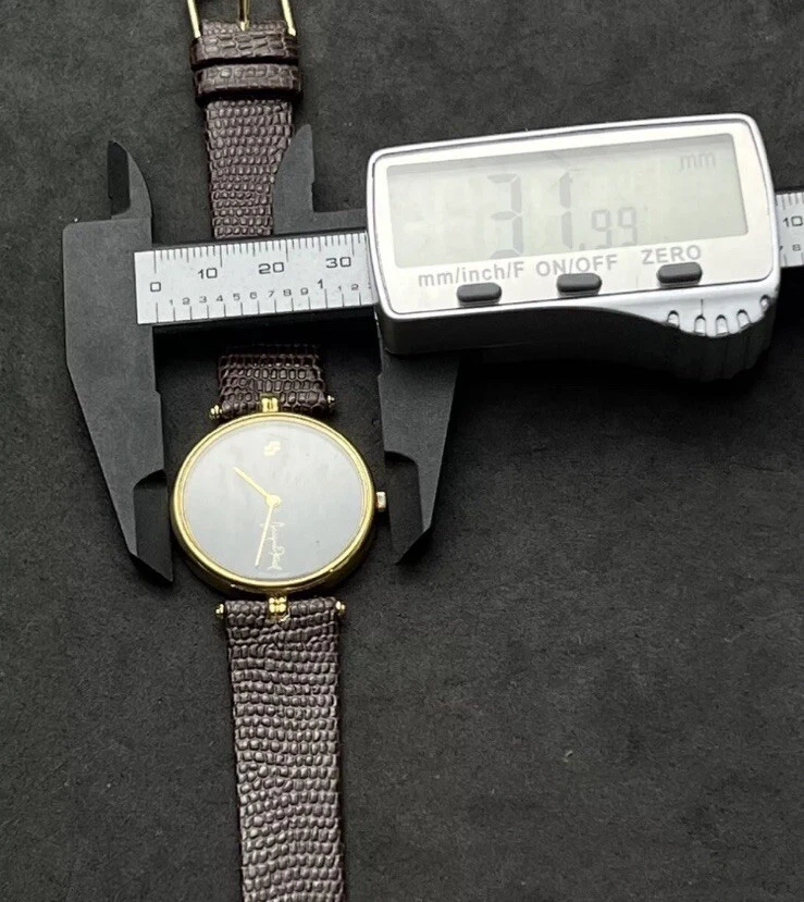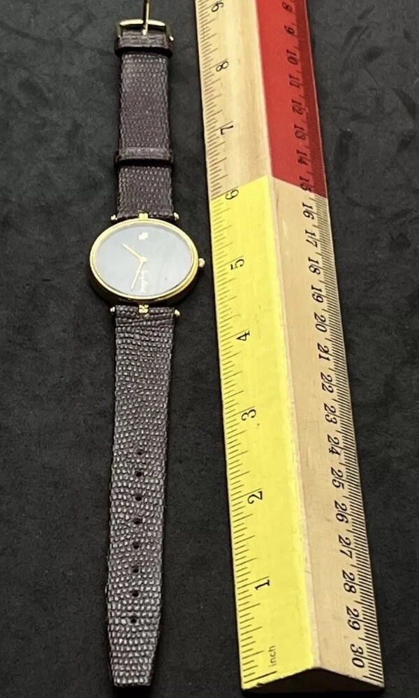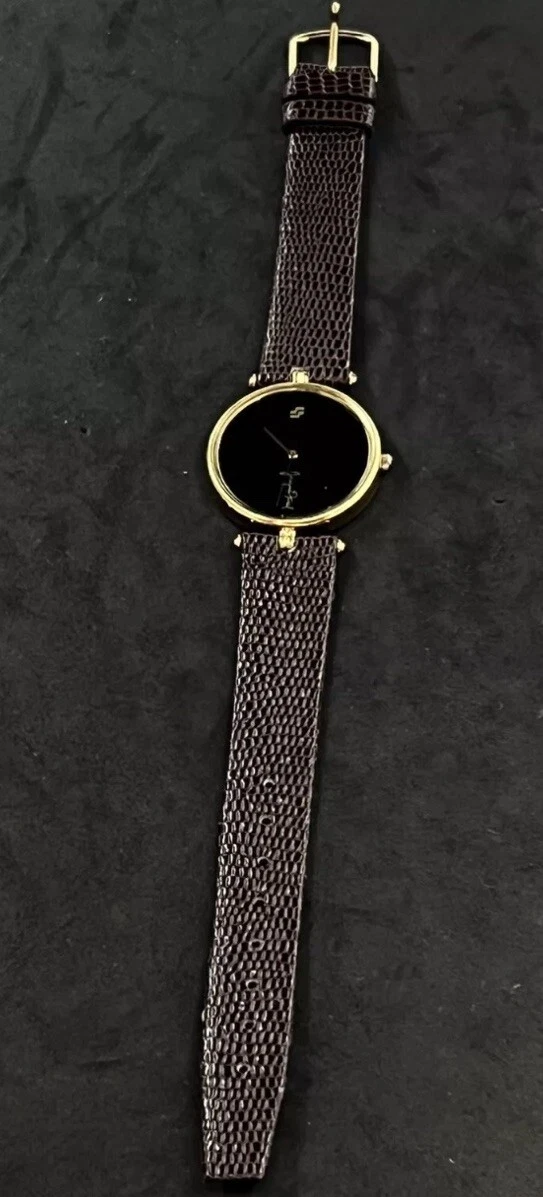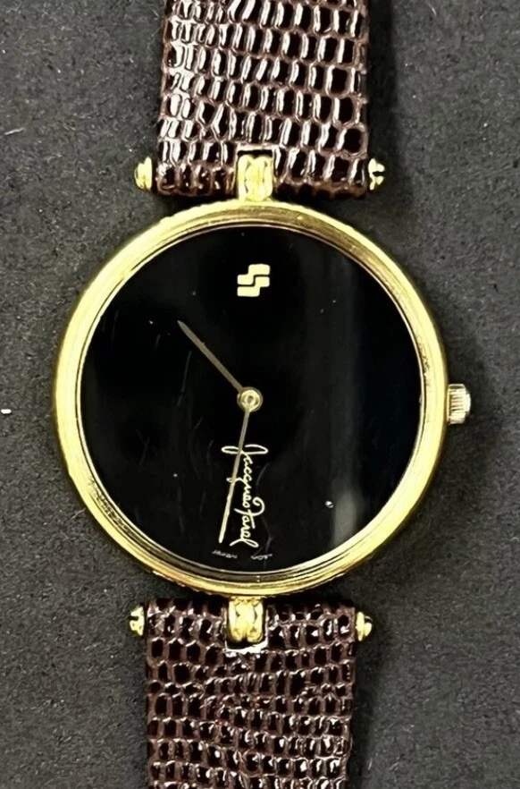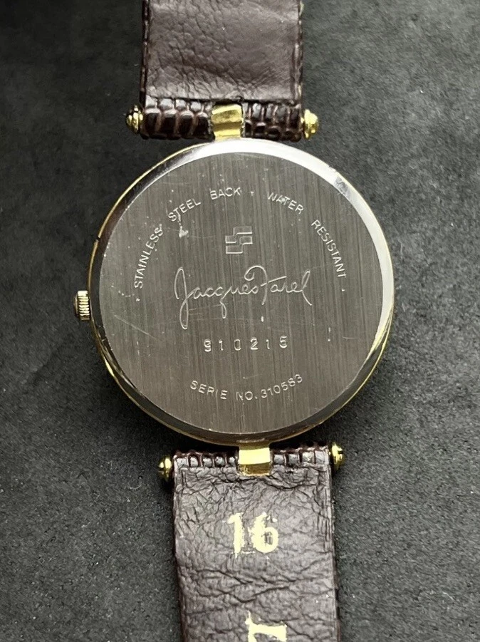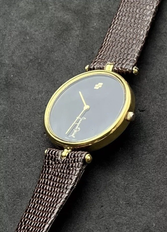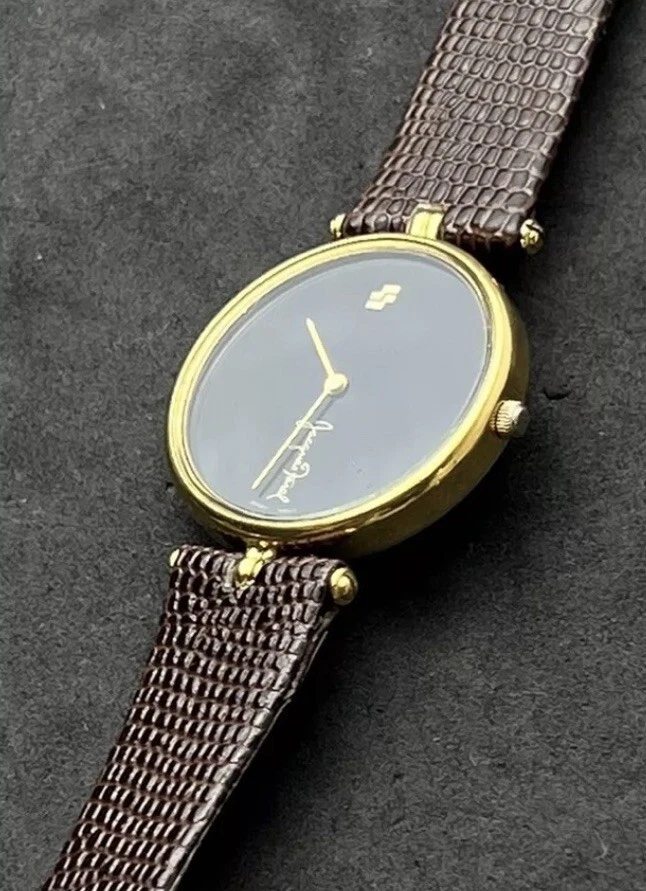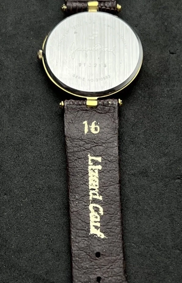 Vintage New JACQUES FAREL Men’s 32mm Quartz Watch Gold Black Dial Genuine Lizard