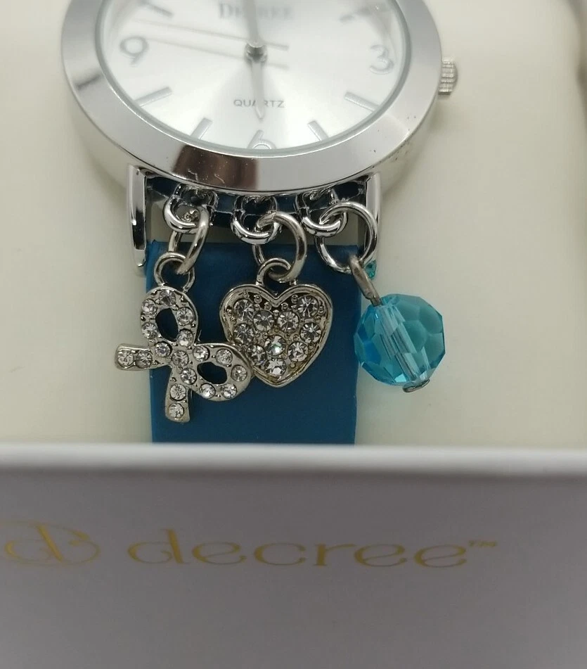 Decree Womens Ladies Wrist Watch w/ Charms - Blue Band - Quartz - NEW - NIB