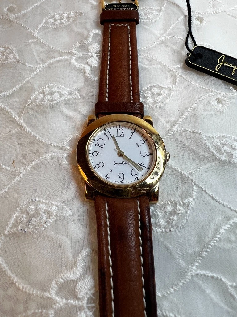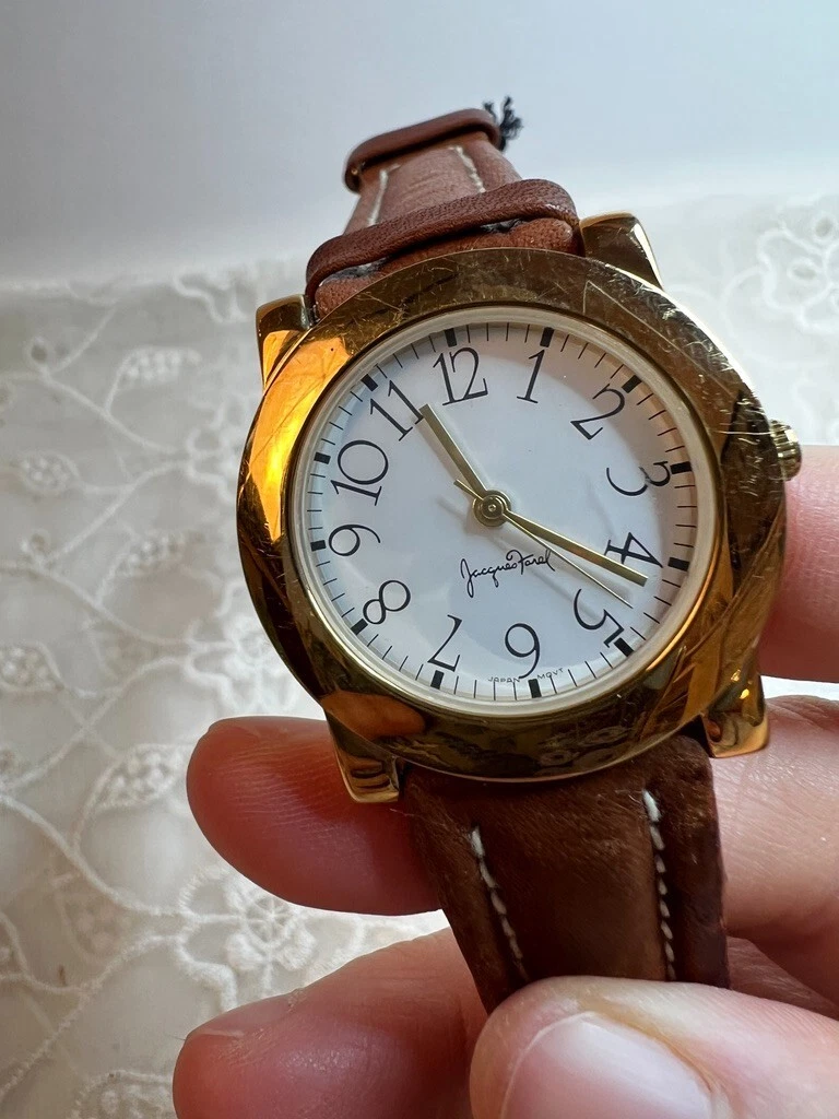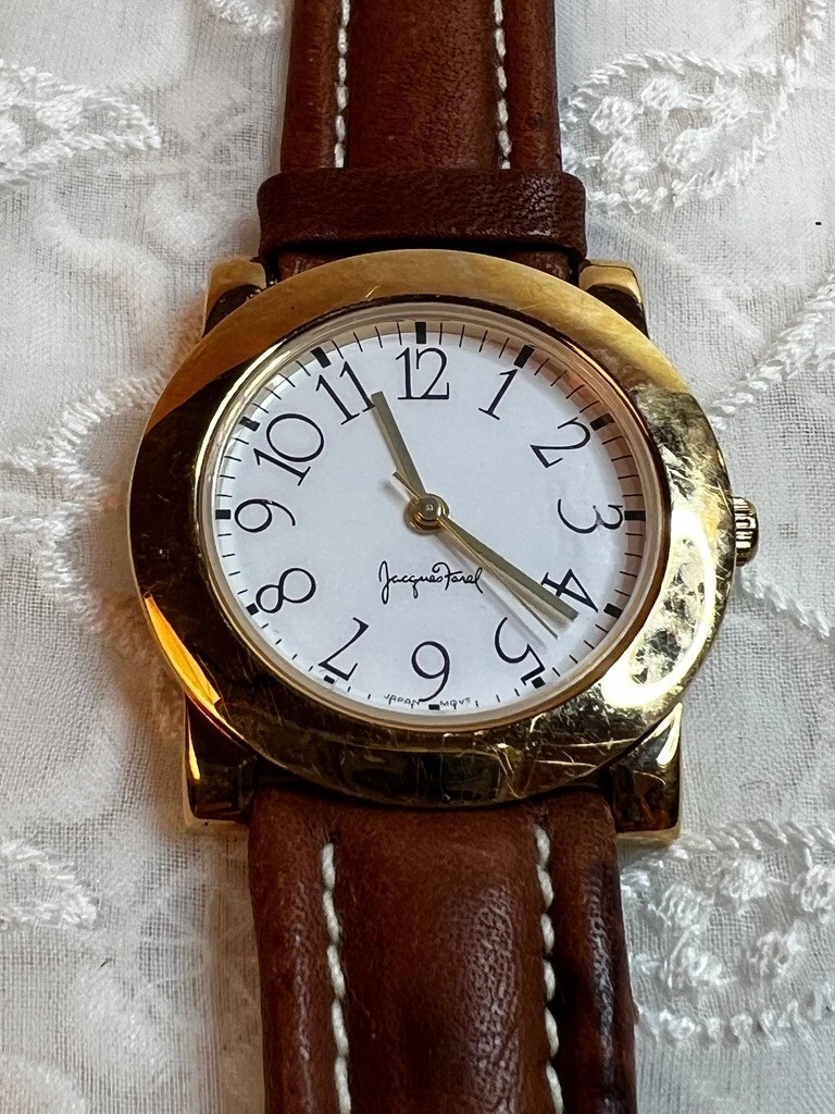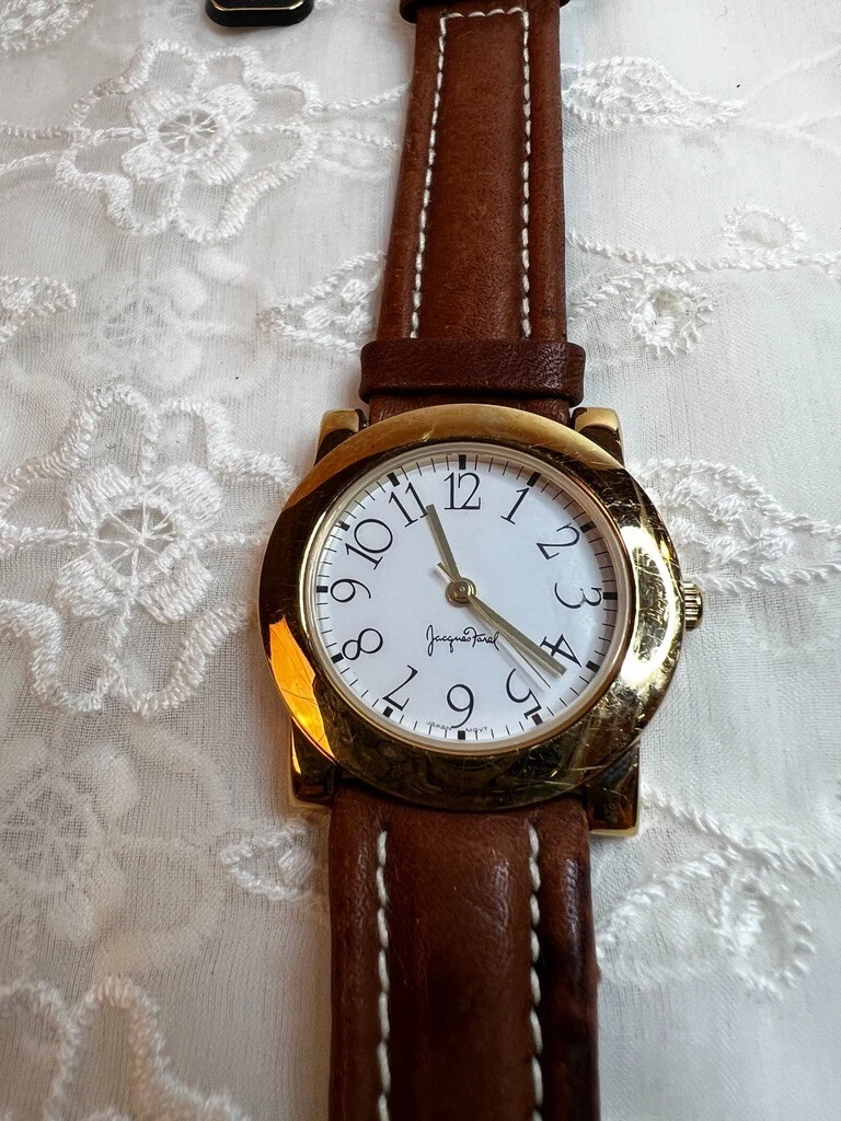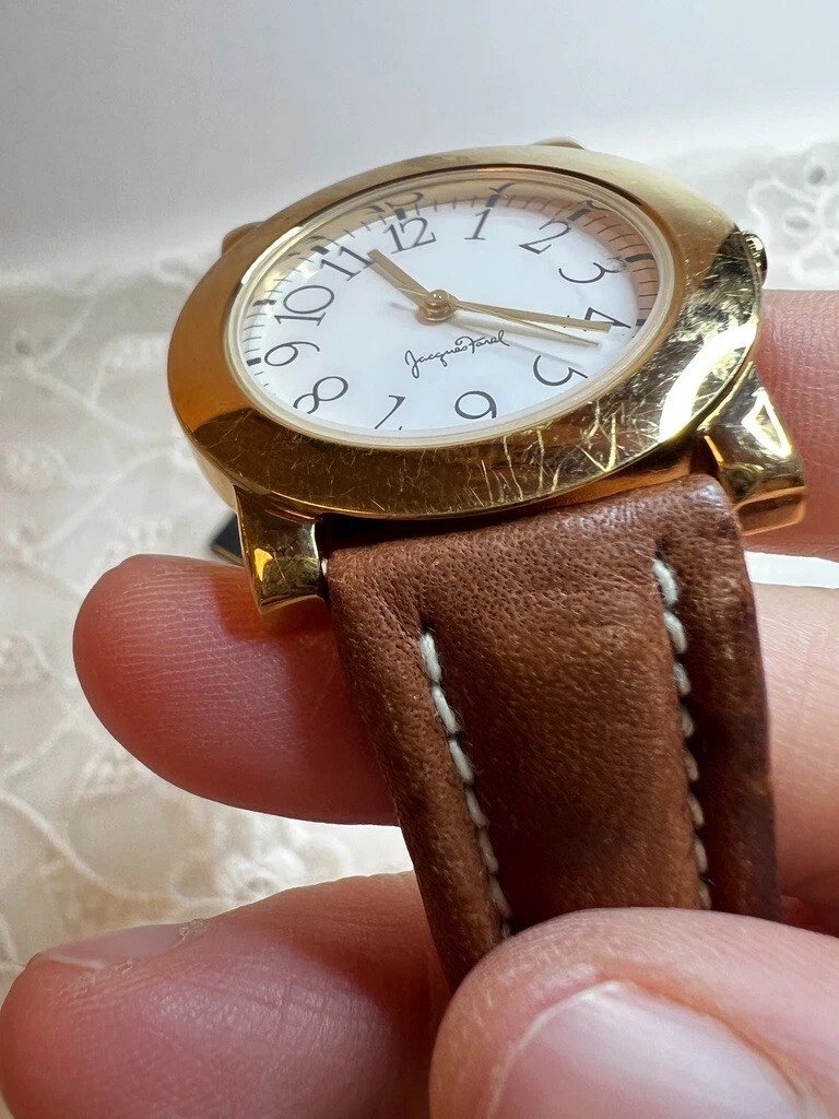 Vintage Jacques Farel Gold Toned Case White Dial Leather Band DD