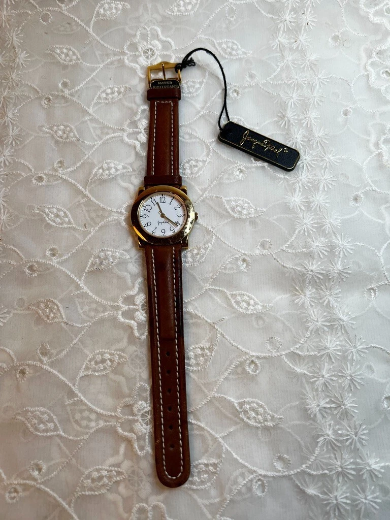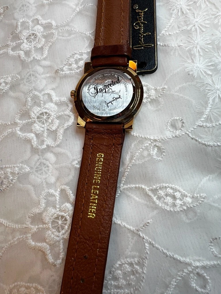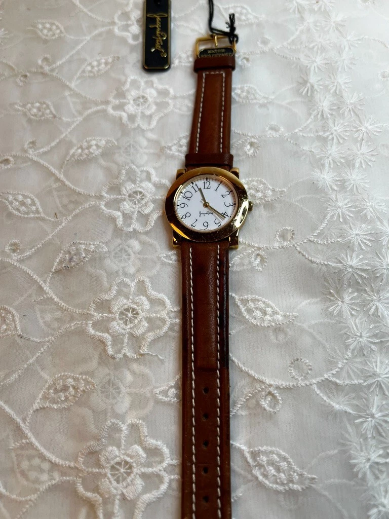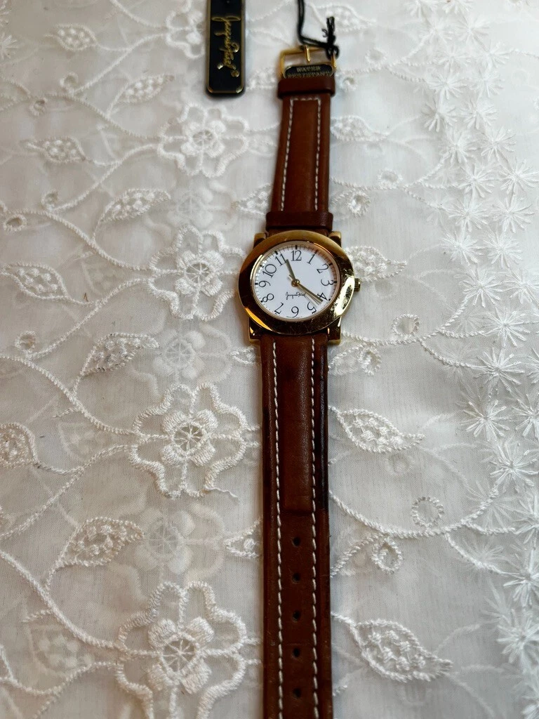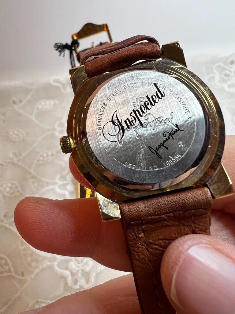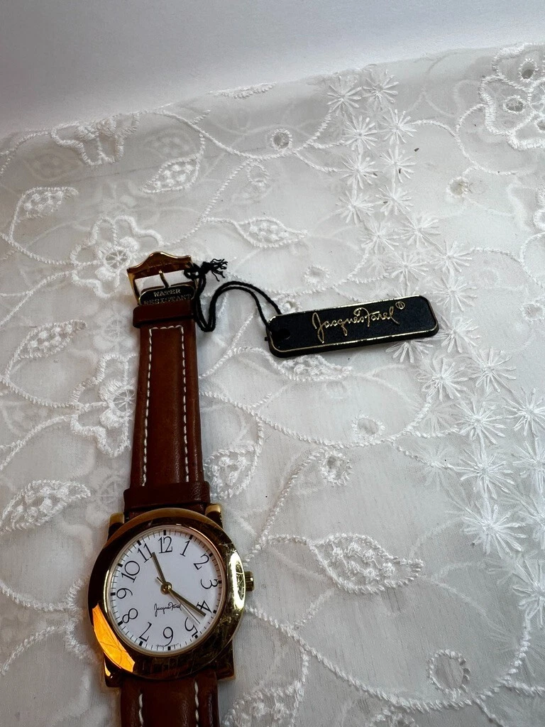 Vintage Jacques Farel Gold Toned Case White Dial Leather Band DD