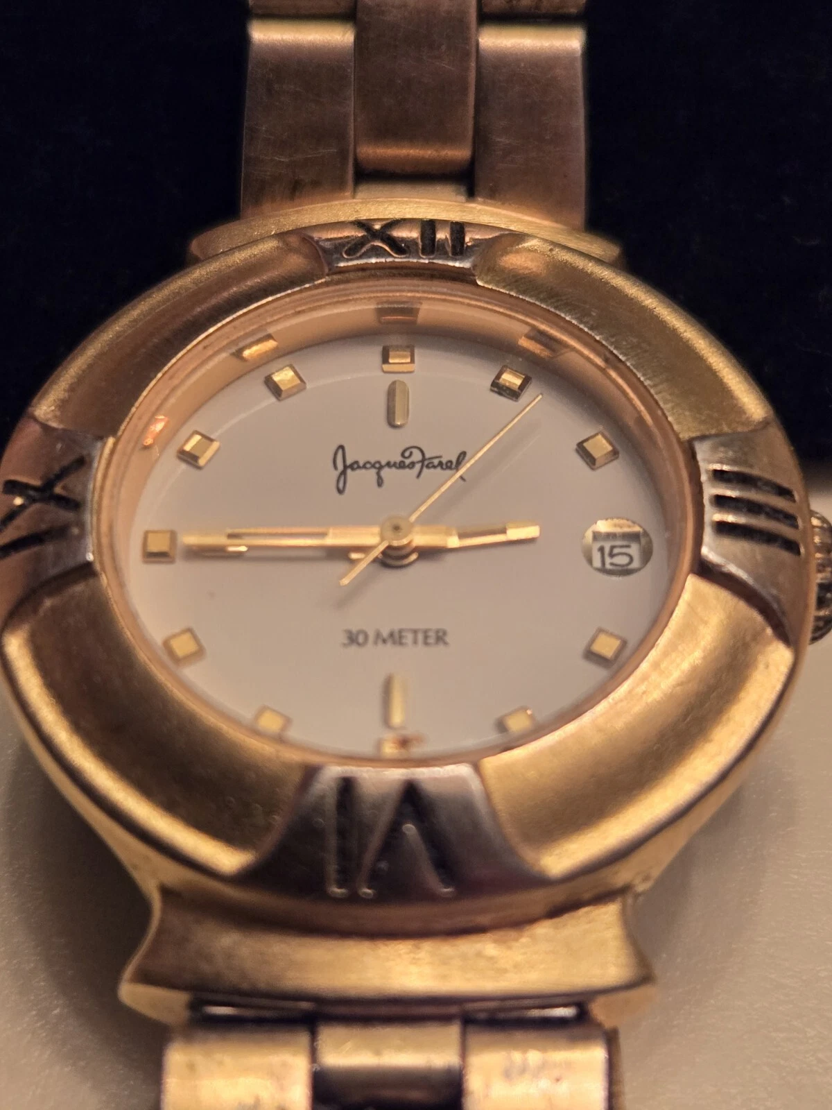 Jacques Farel Quartz Watch, Vintage Sport 30 Meter, Date Gold Tone Watch