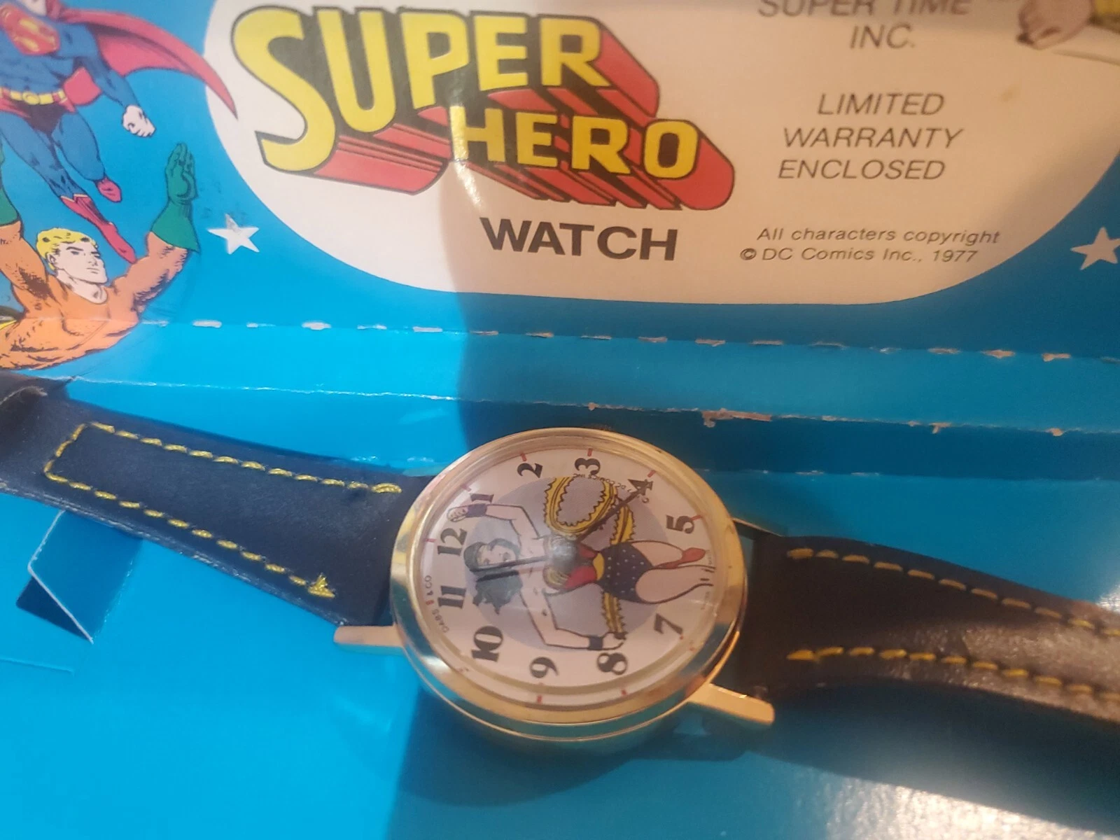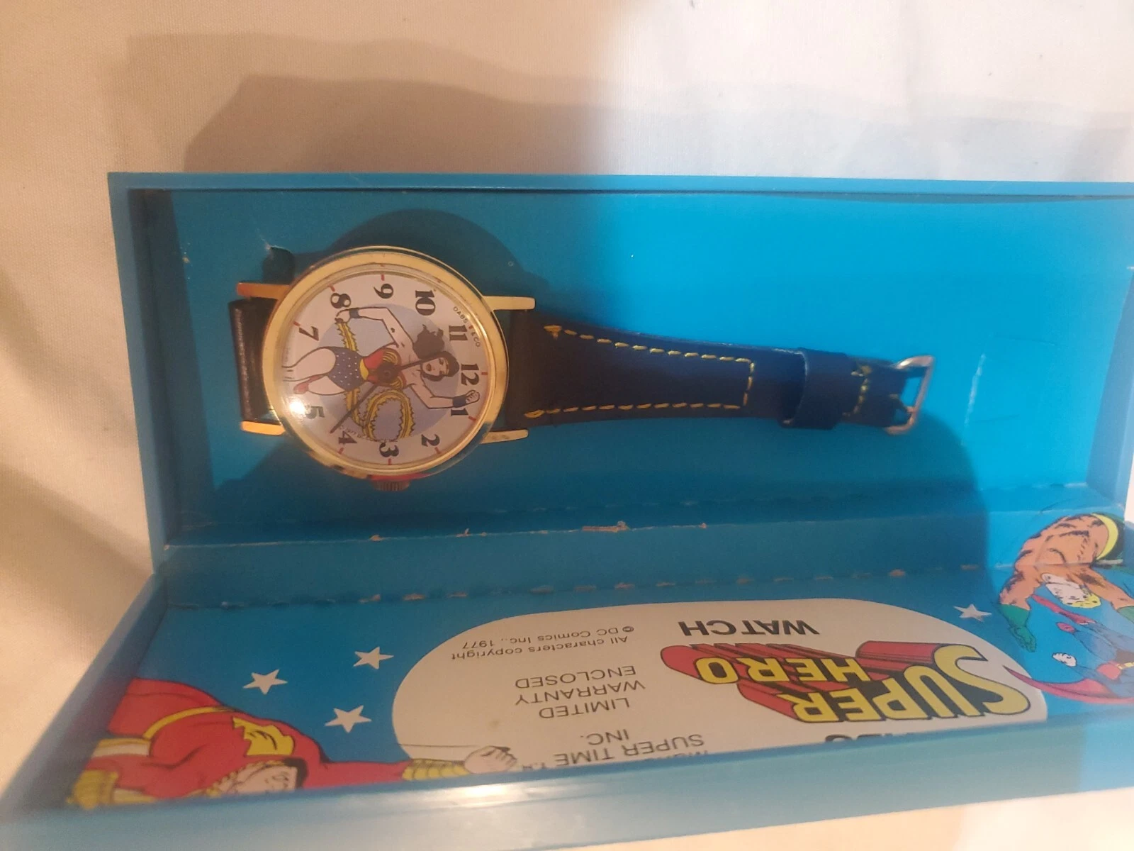 Vintage DABS Wonder Woman Watch in BOX Complete Swiss Made 1977 DC Comics RARE!