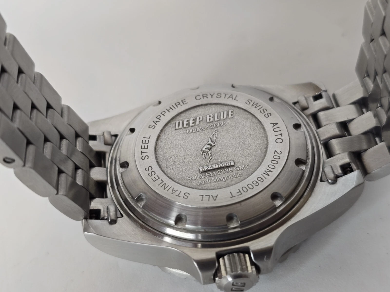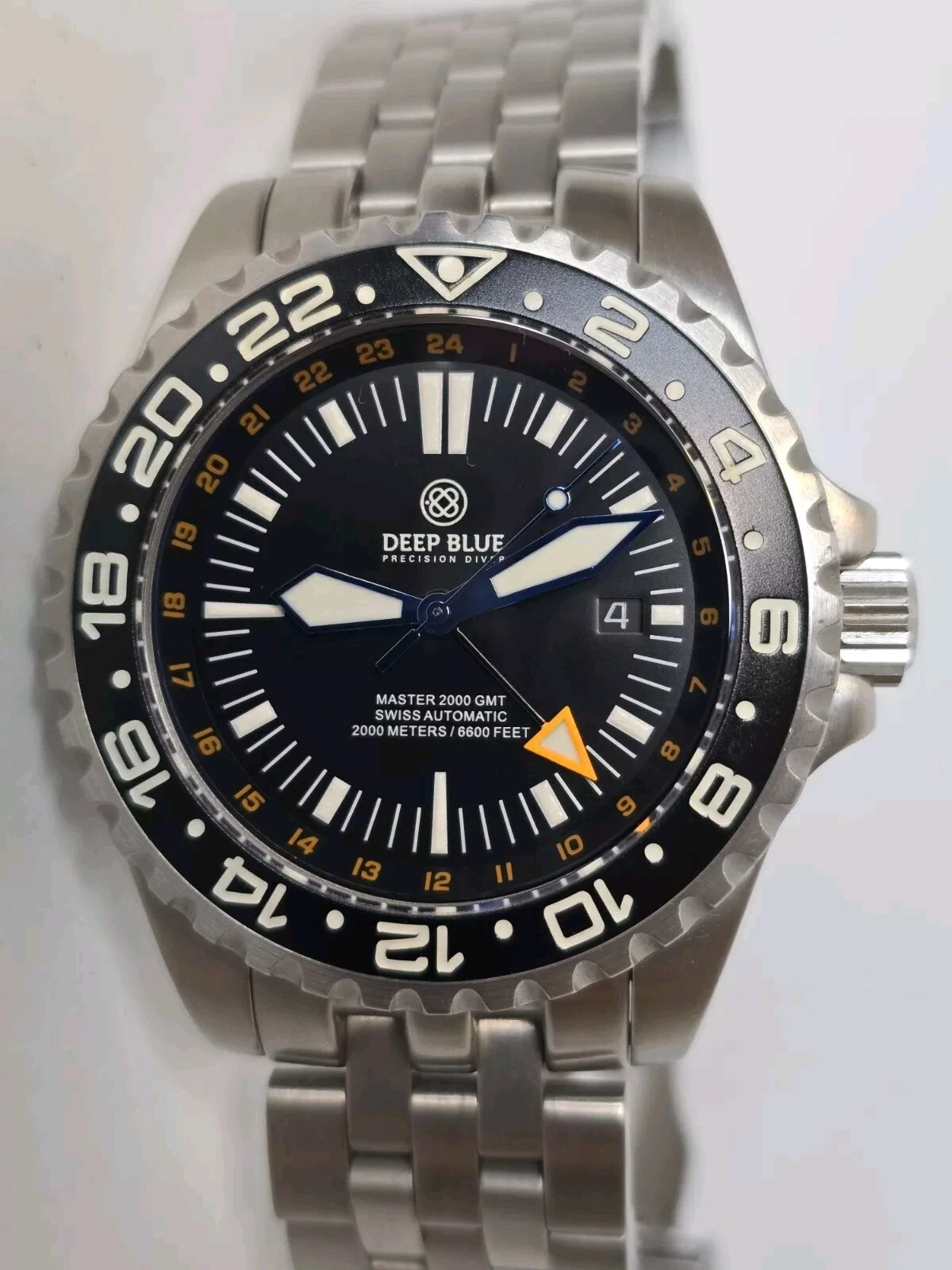 Deep Blue Men's Master 2000 Swiss Automatic Watch GMT Black 45mm 2893