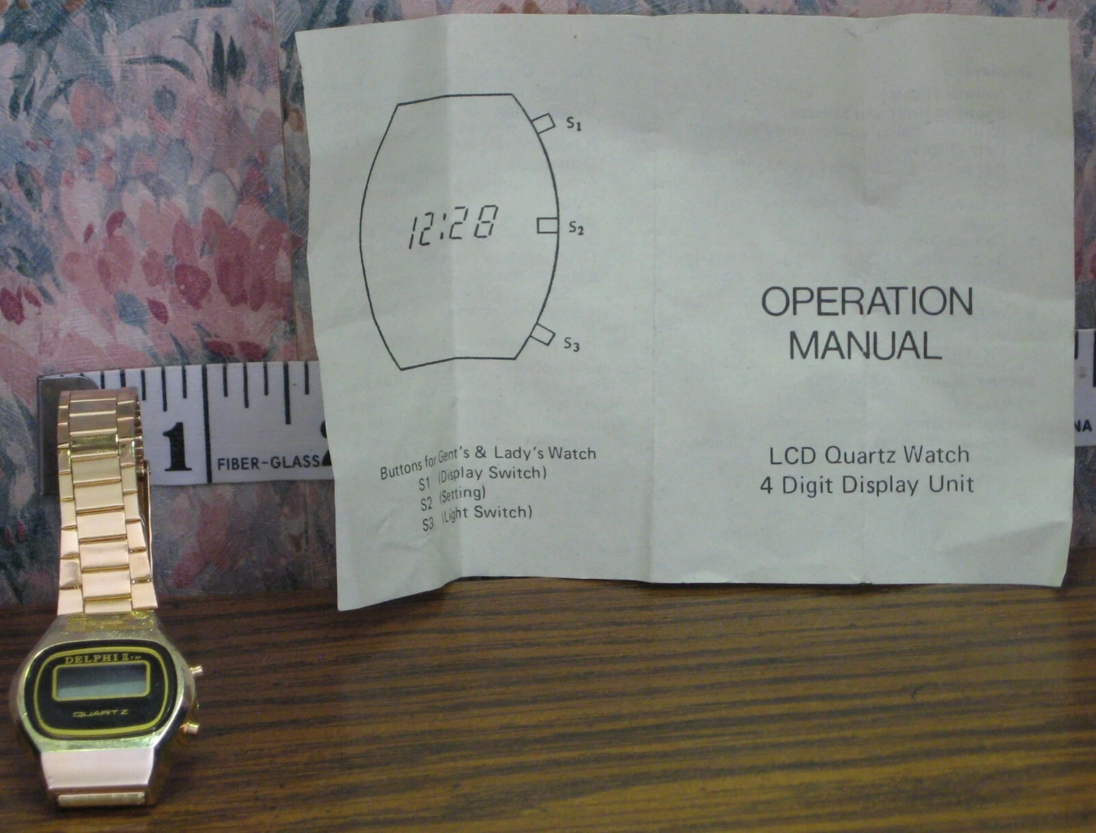 Delphi II LCD Lady's Quartz Digital Wrist Watch - Gold Plated No Battery - 1980s