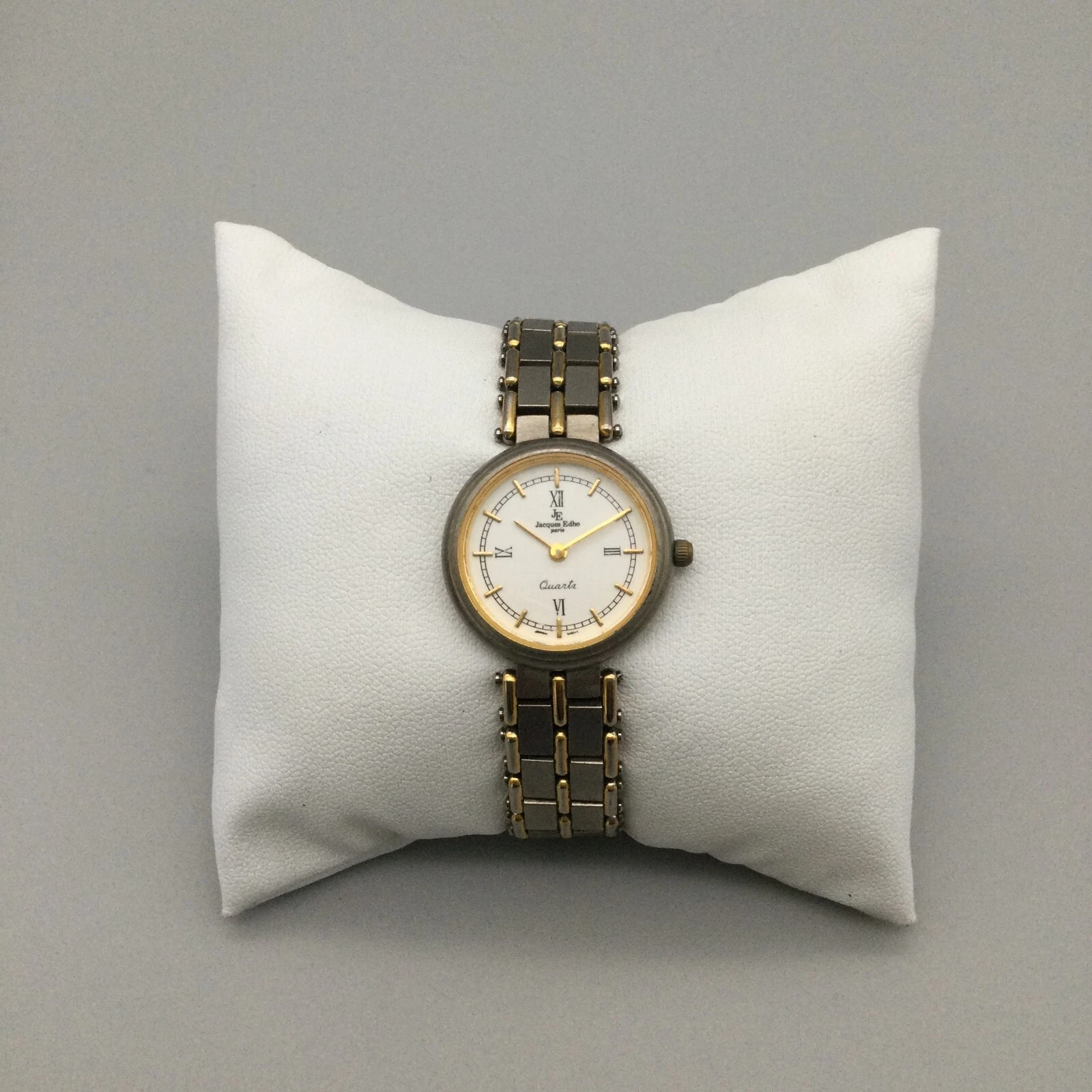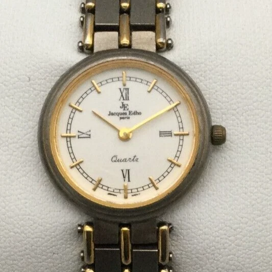 Vtg Jacques Edho Watch Women 23mm 18K Gold Plated Silver Tone New Battery 6.25"