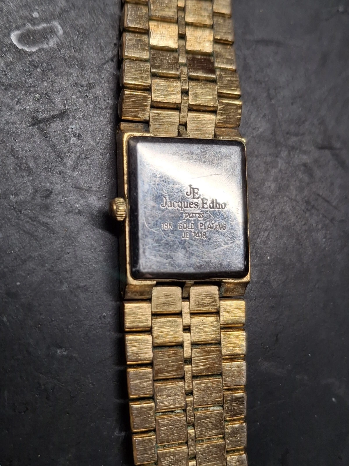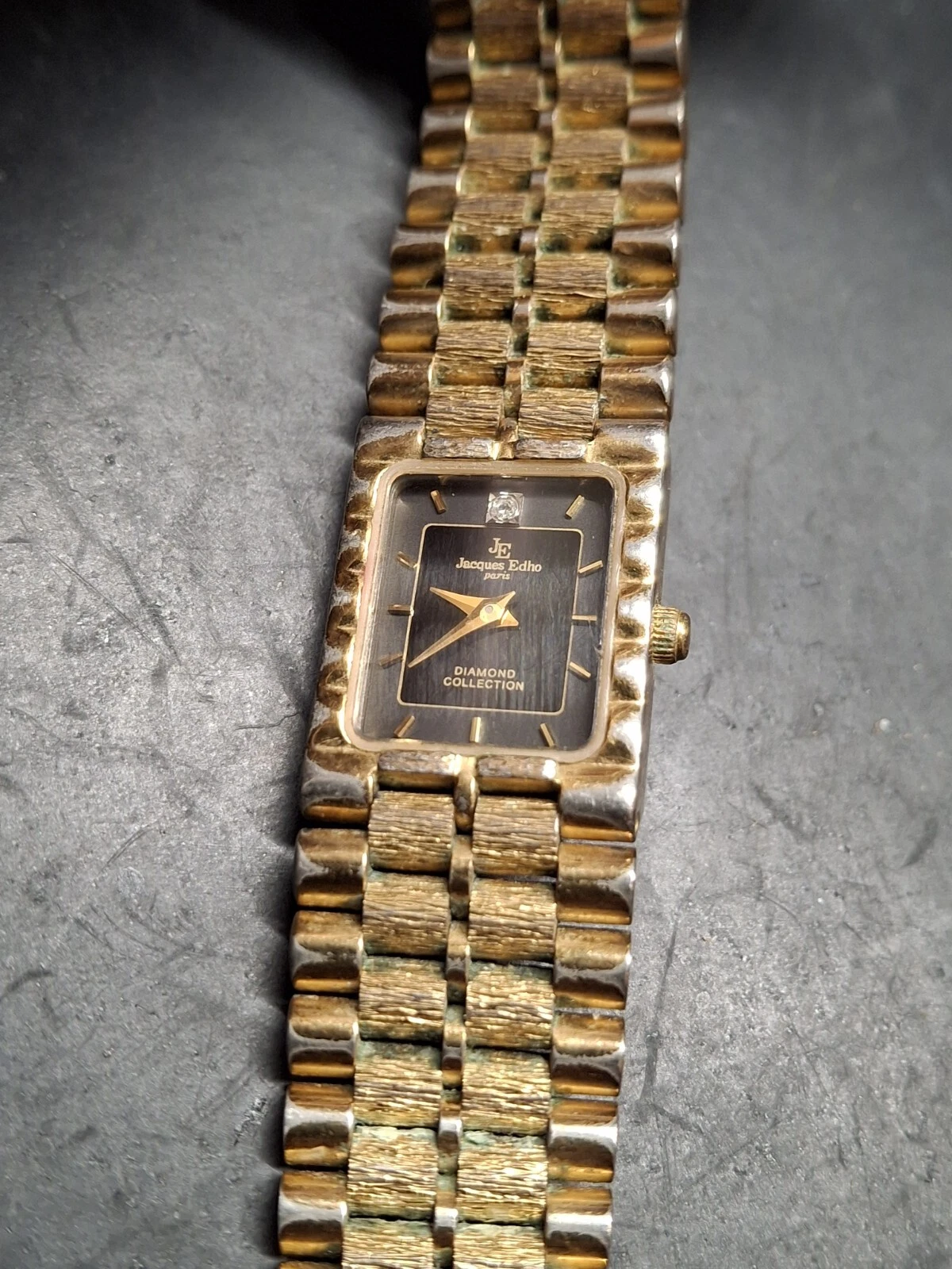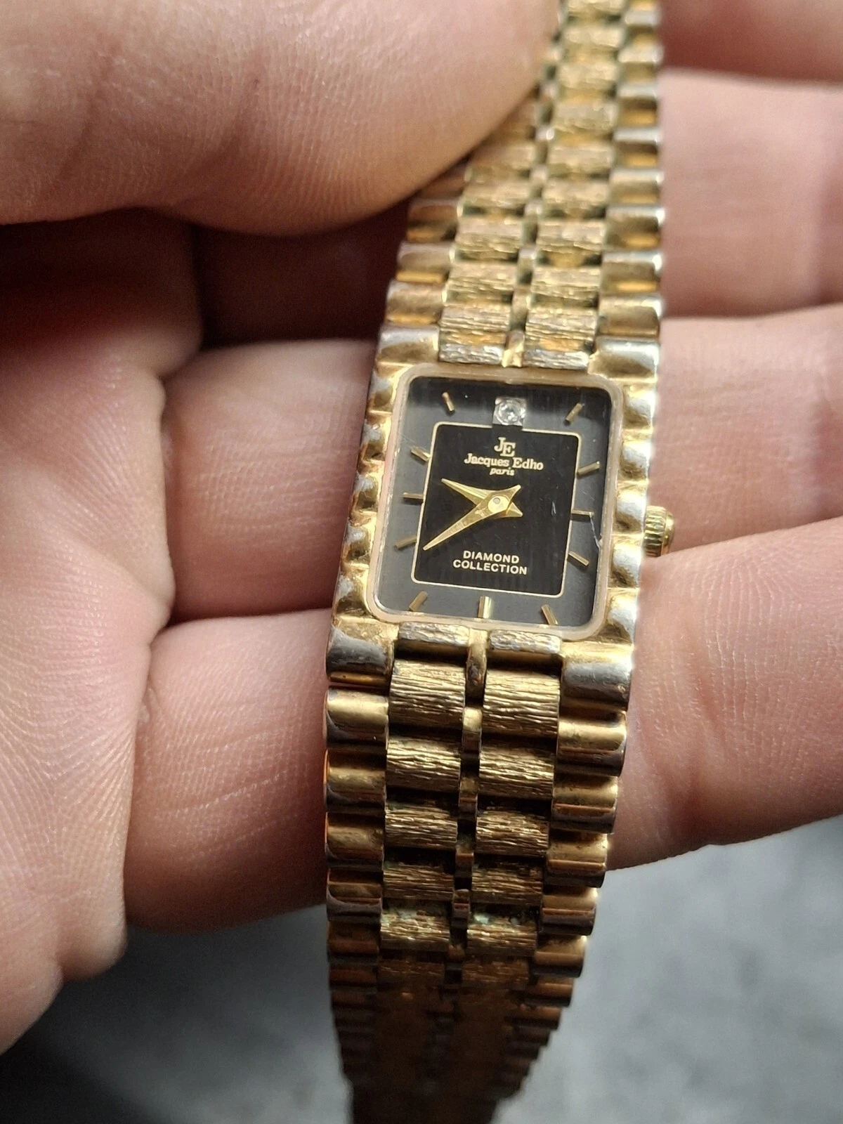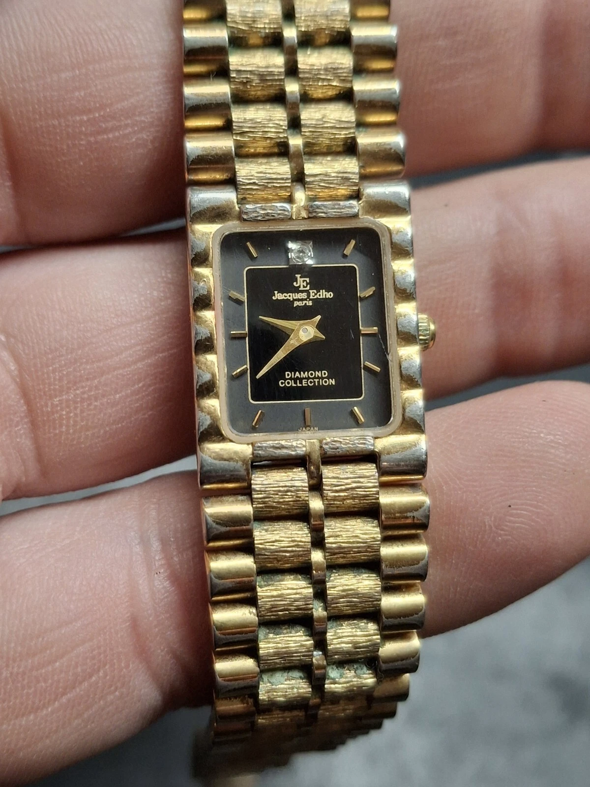 Jacques Edho 18K Gold Plated Black Dial Ladies Quartz Watch Vintage 1990s
