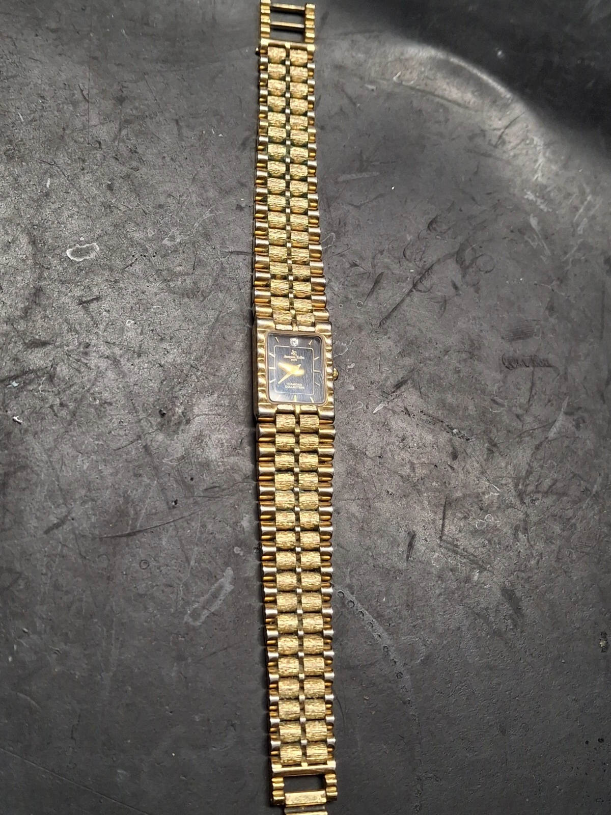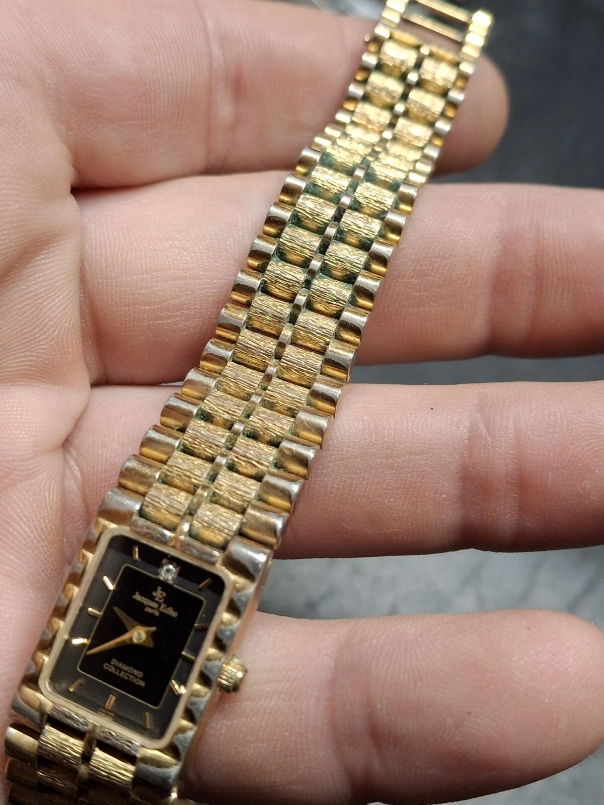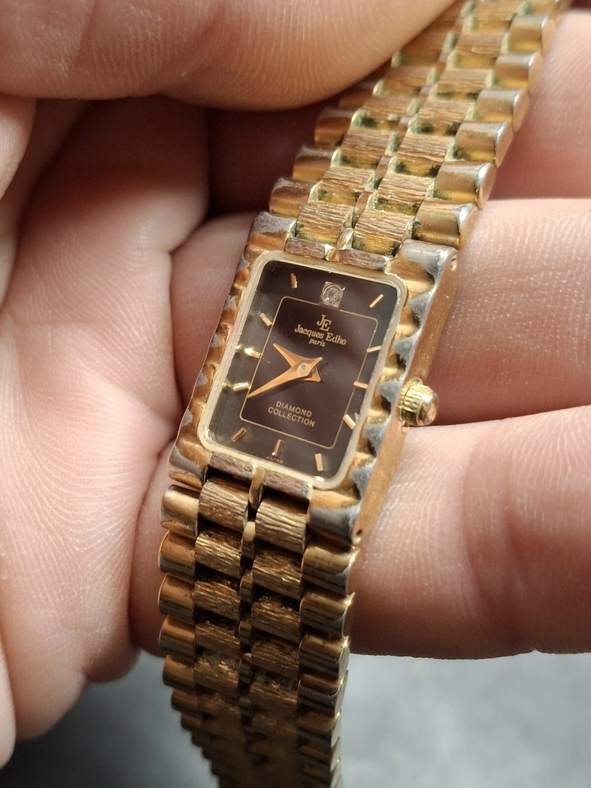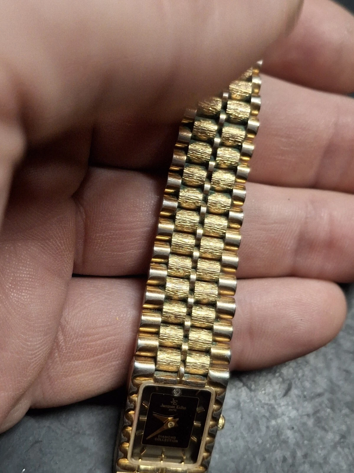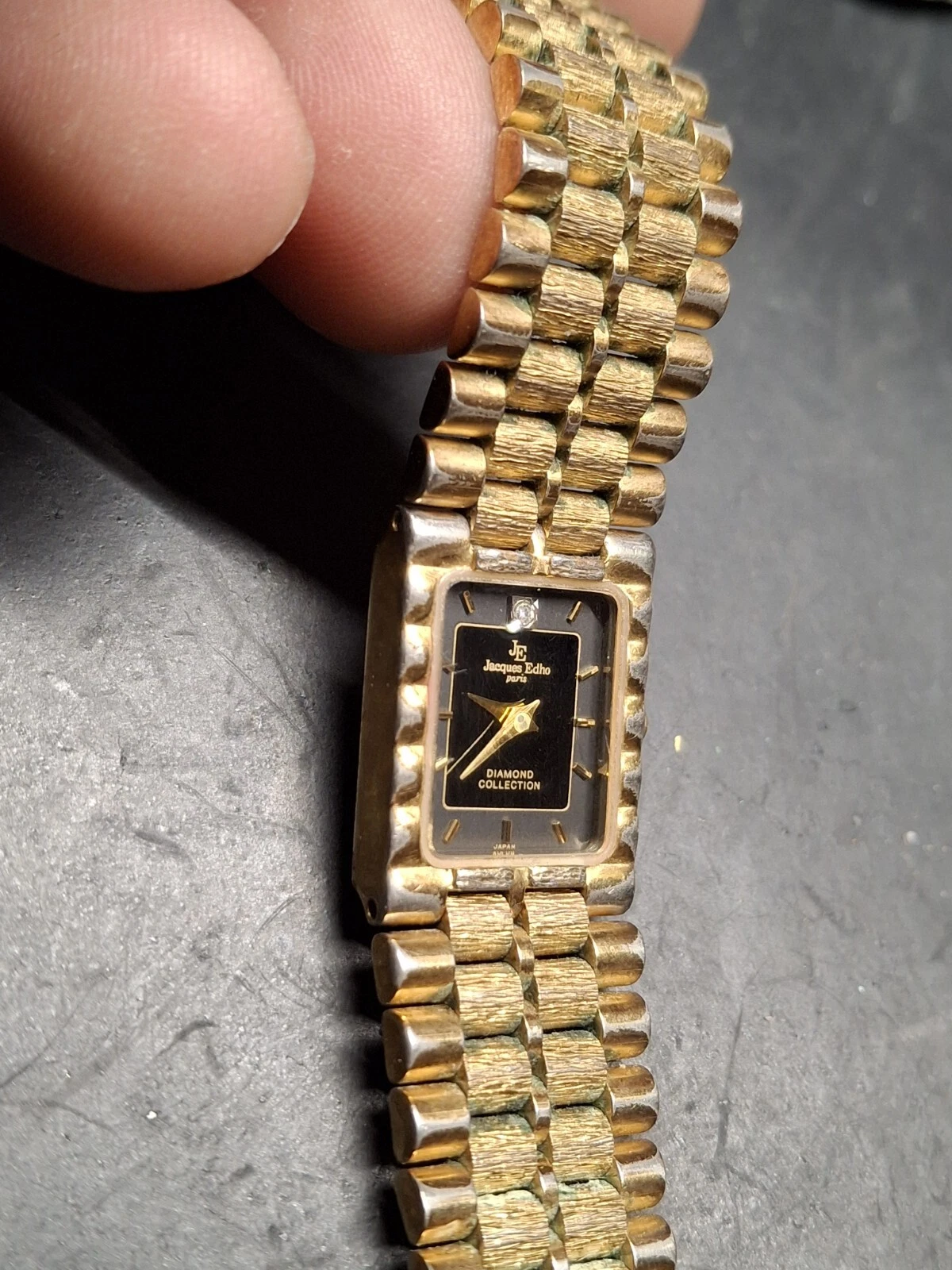 Jacques Edho 18K Gold Plated Black Dial Ladies Quartz Watch Vintage 1990s