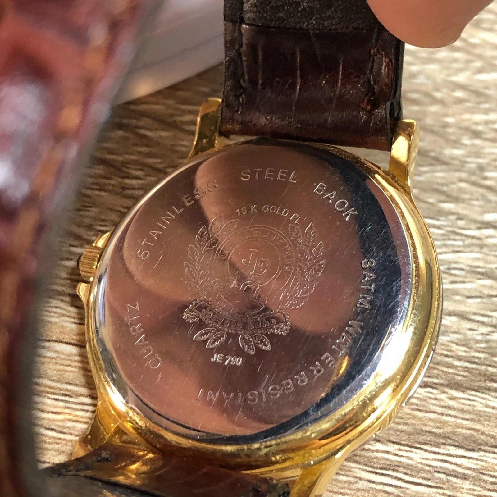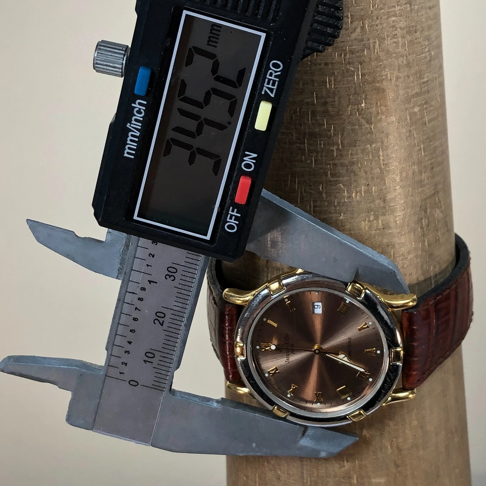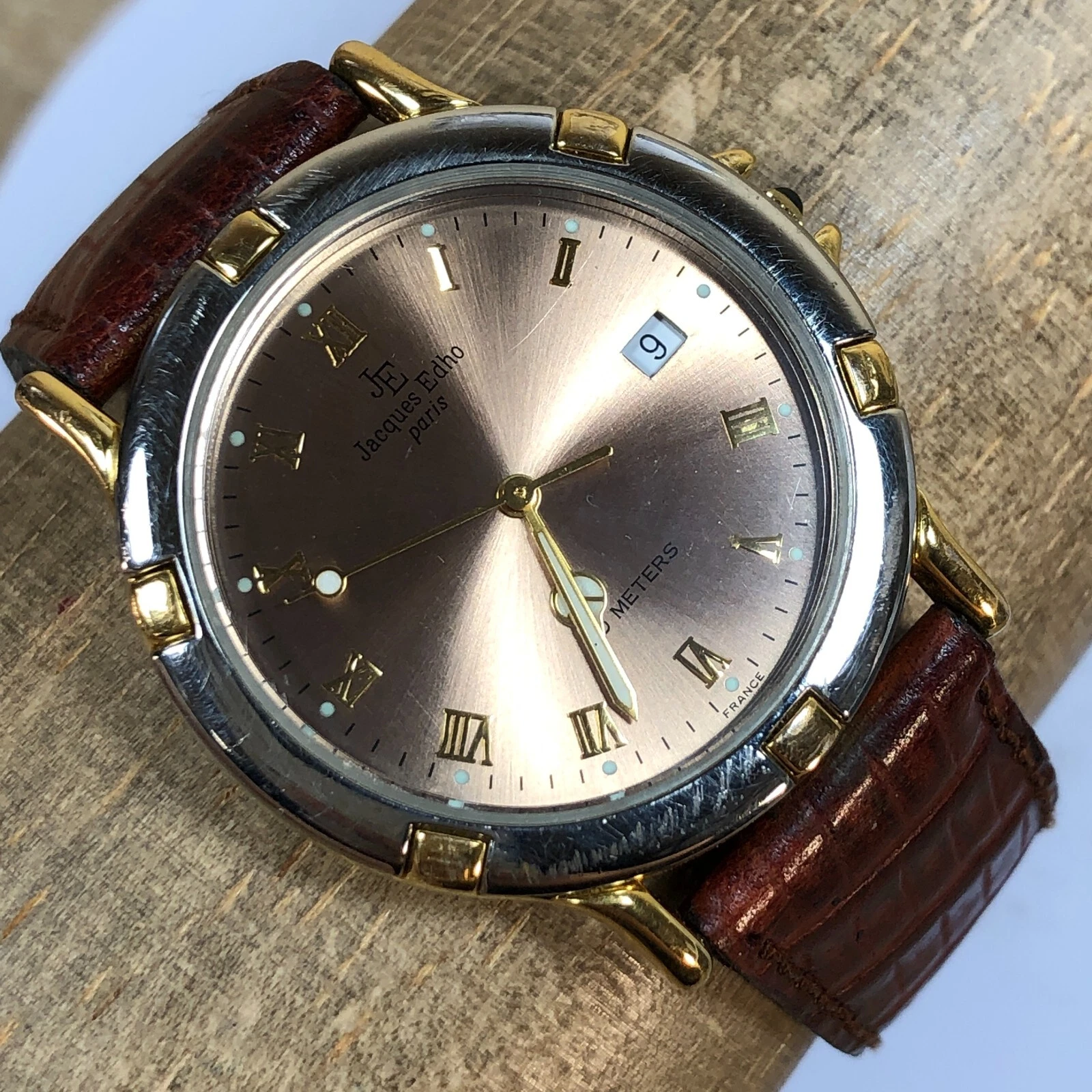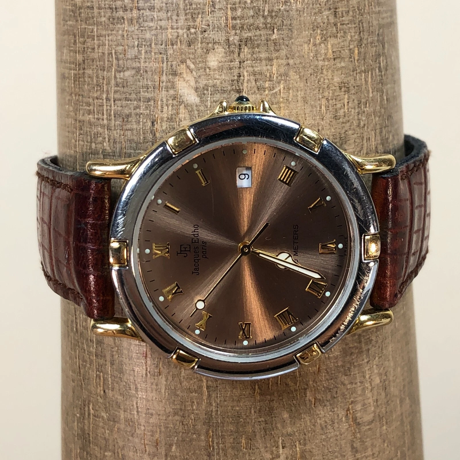Jacques Edho Paris Men JE790 18k Gold Plated Date Brown Black Band Watch 7"