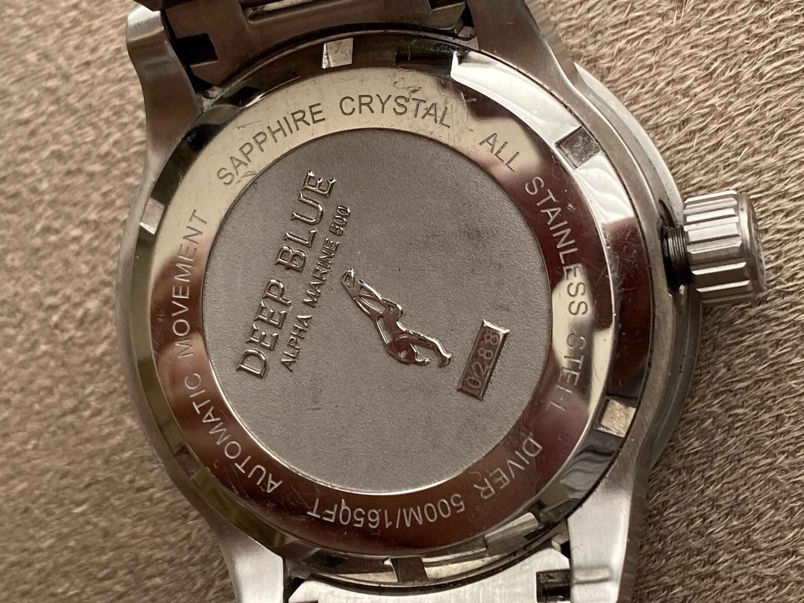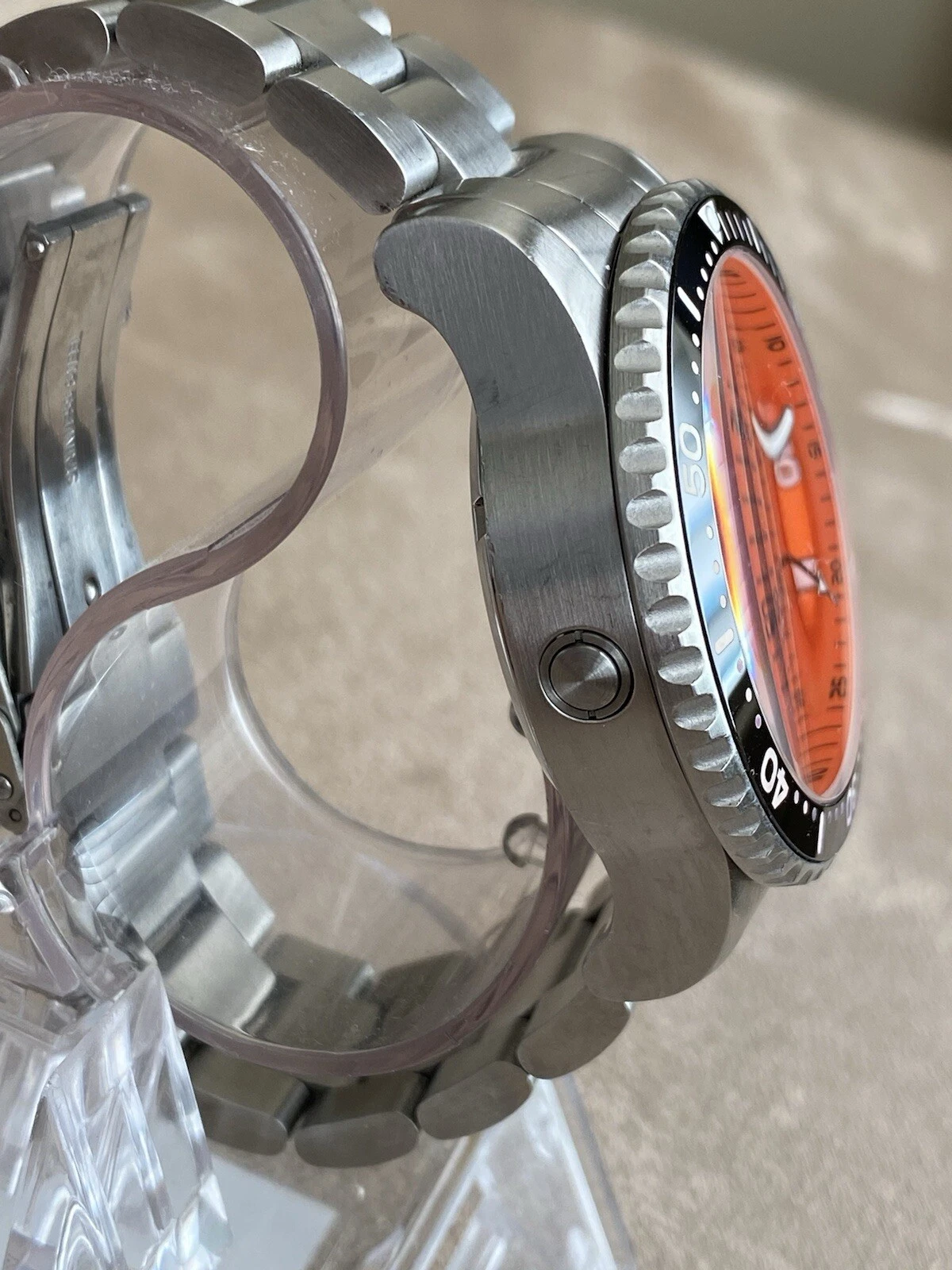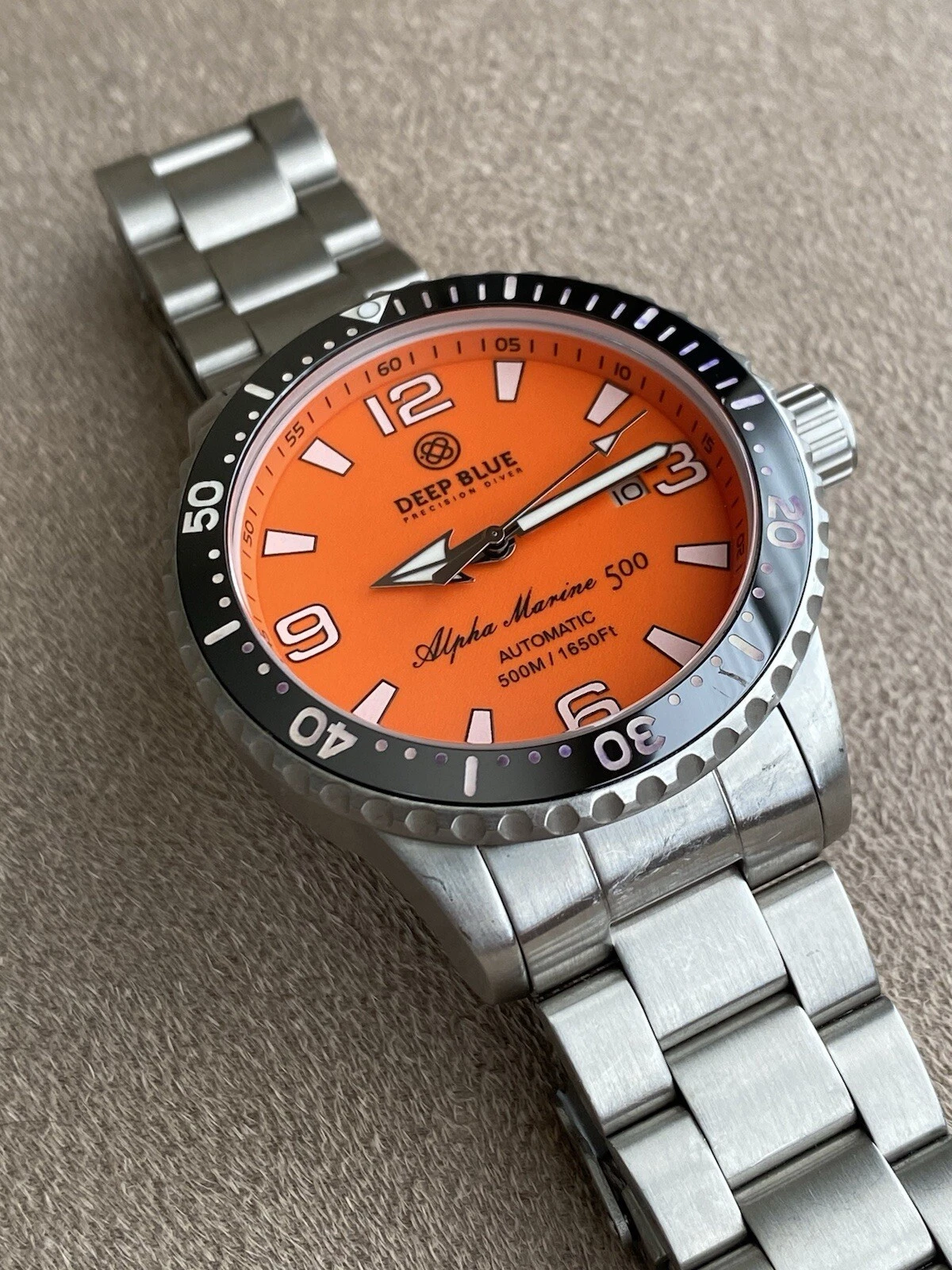 Deep Blue Alpha Marine 500 Orange Dial Swiss Automatic Men's Watch 7.5"