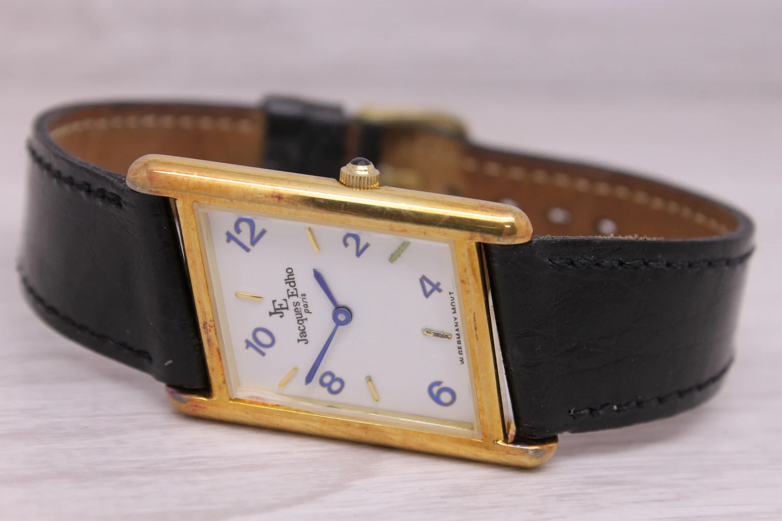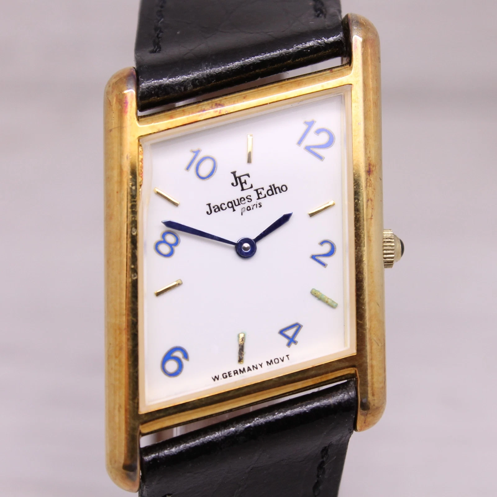 Jacques Edho Paris Asymetric Mens 24mm Quartz Watch Blue Hands & Markers