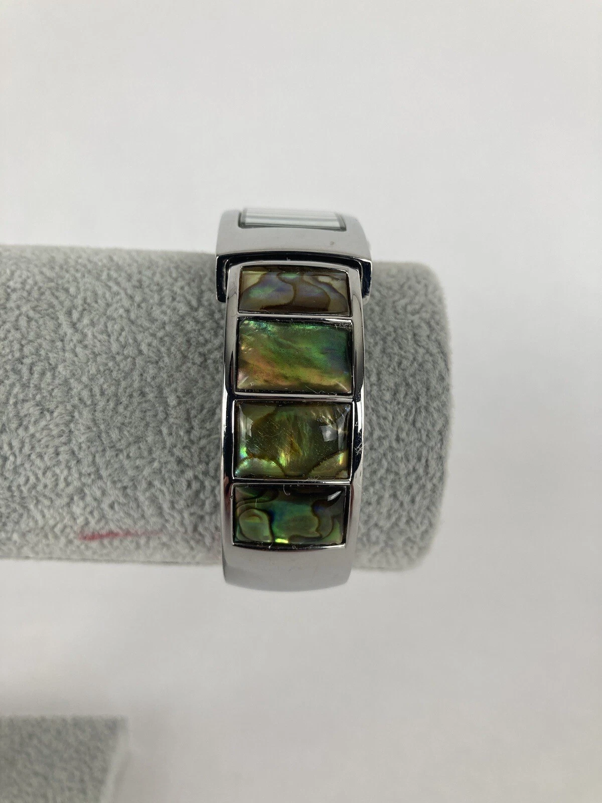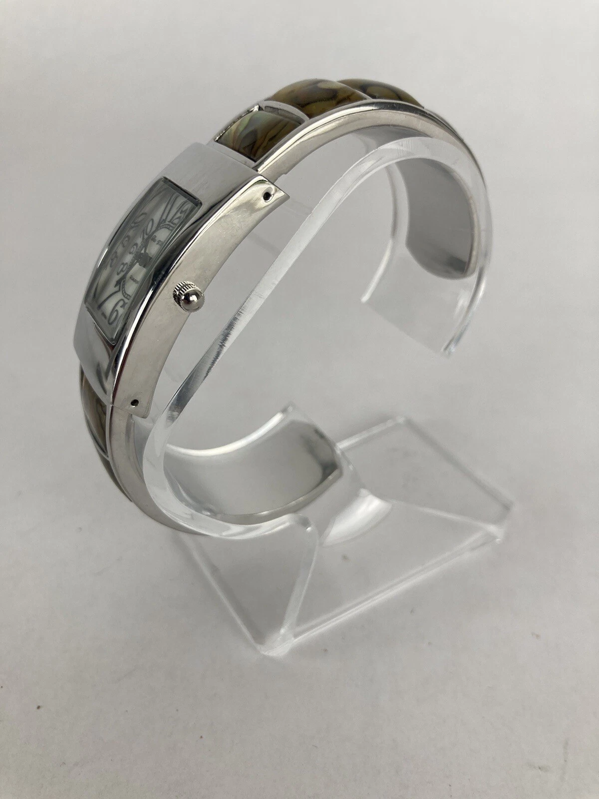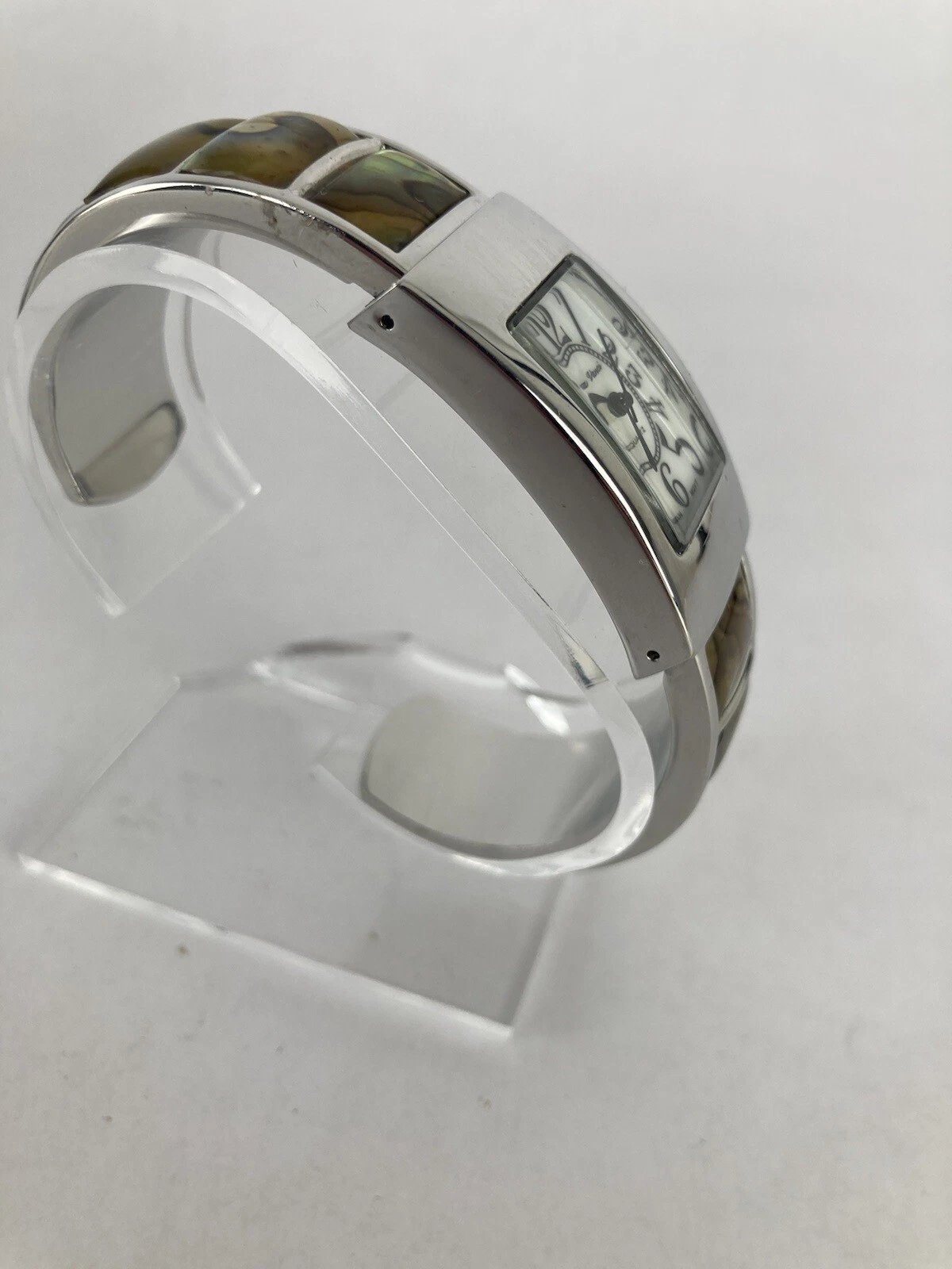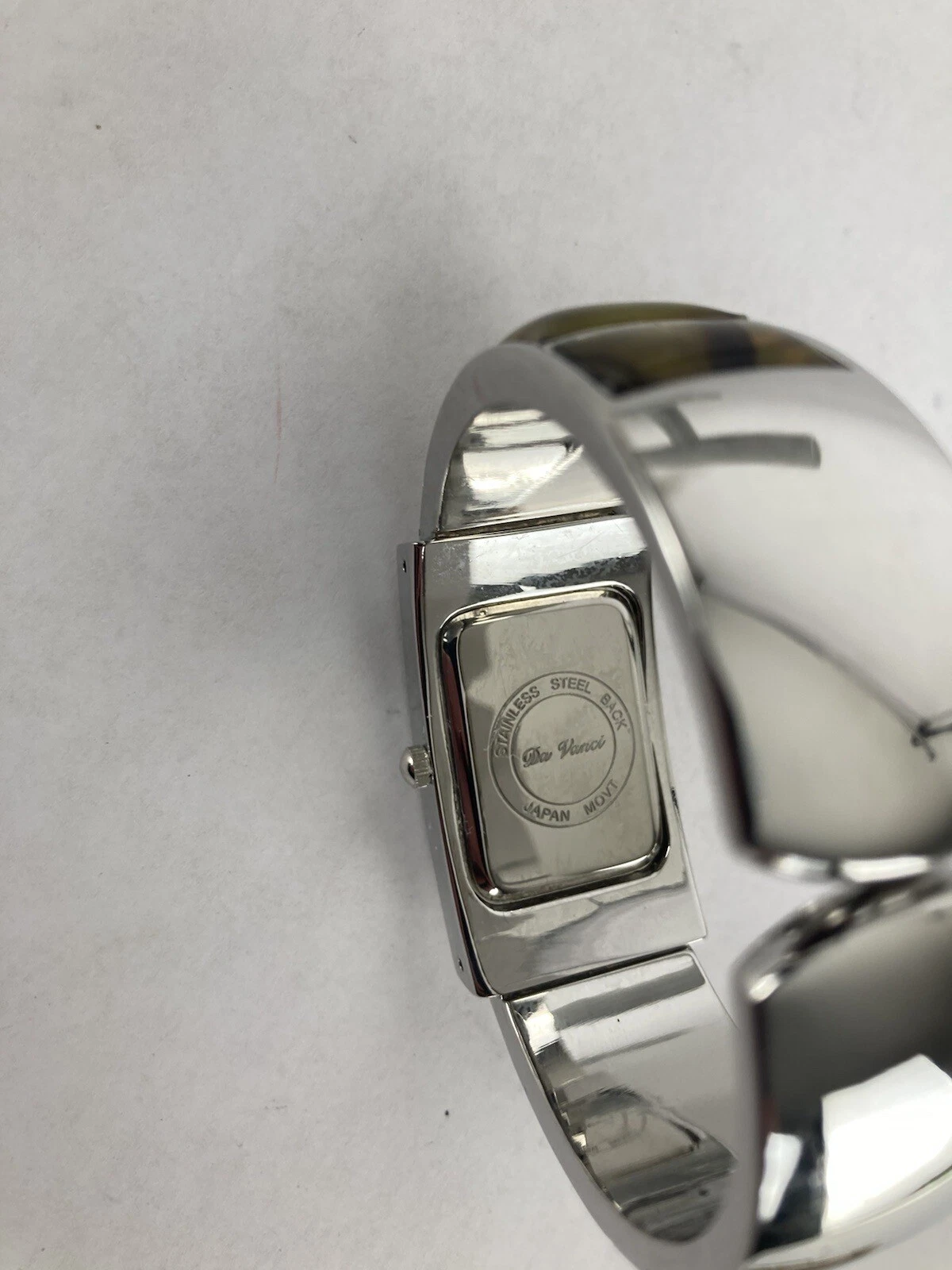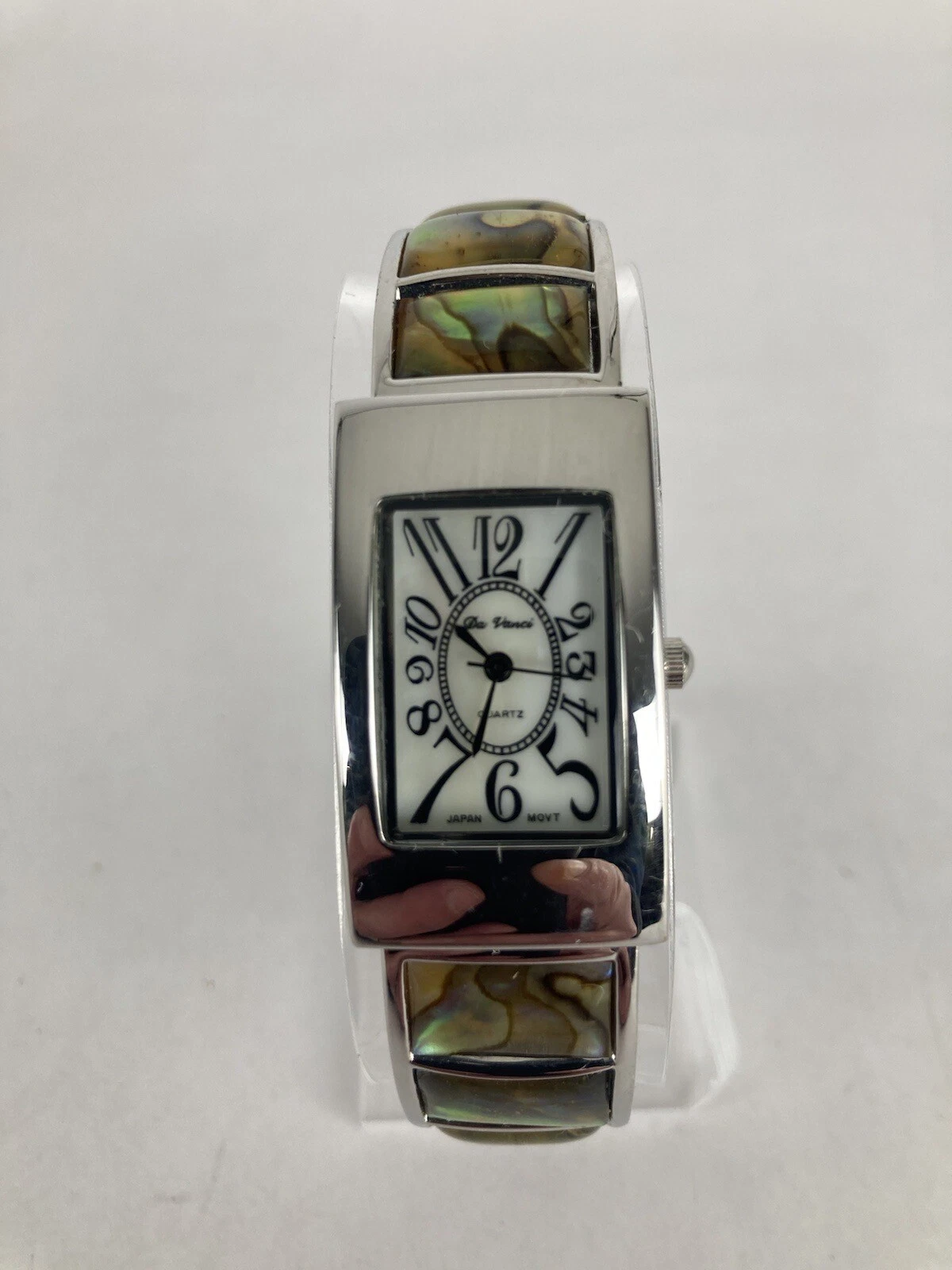 Da Vinci 24mm Silver Tone Quartz Watch w/Silver/Abalone Bangle Band & Battery