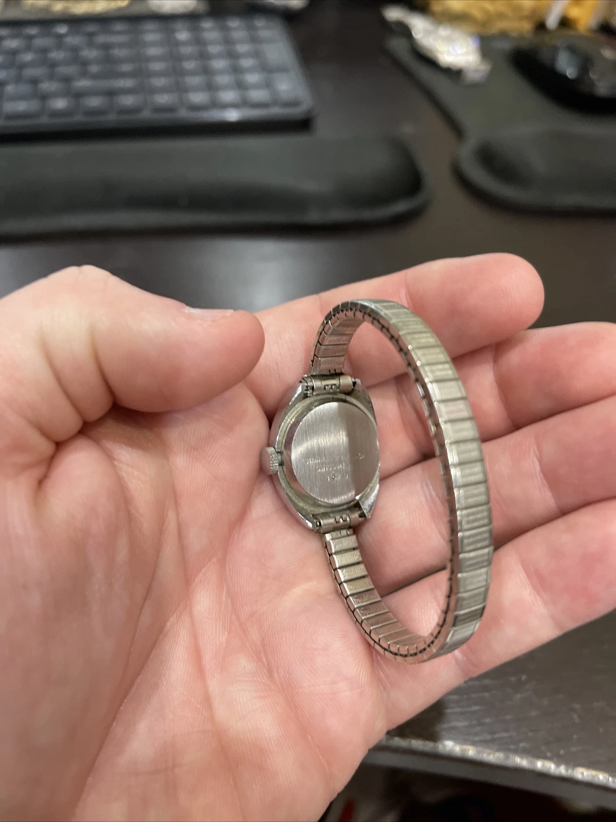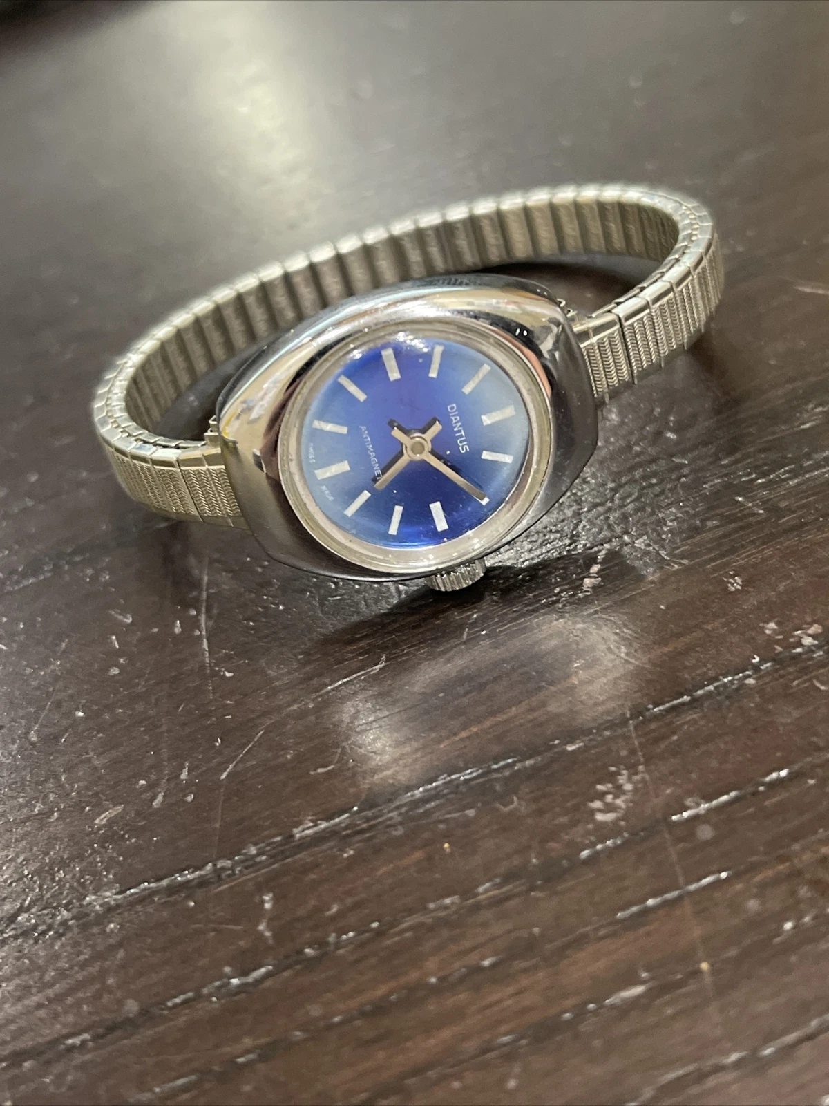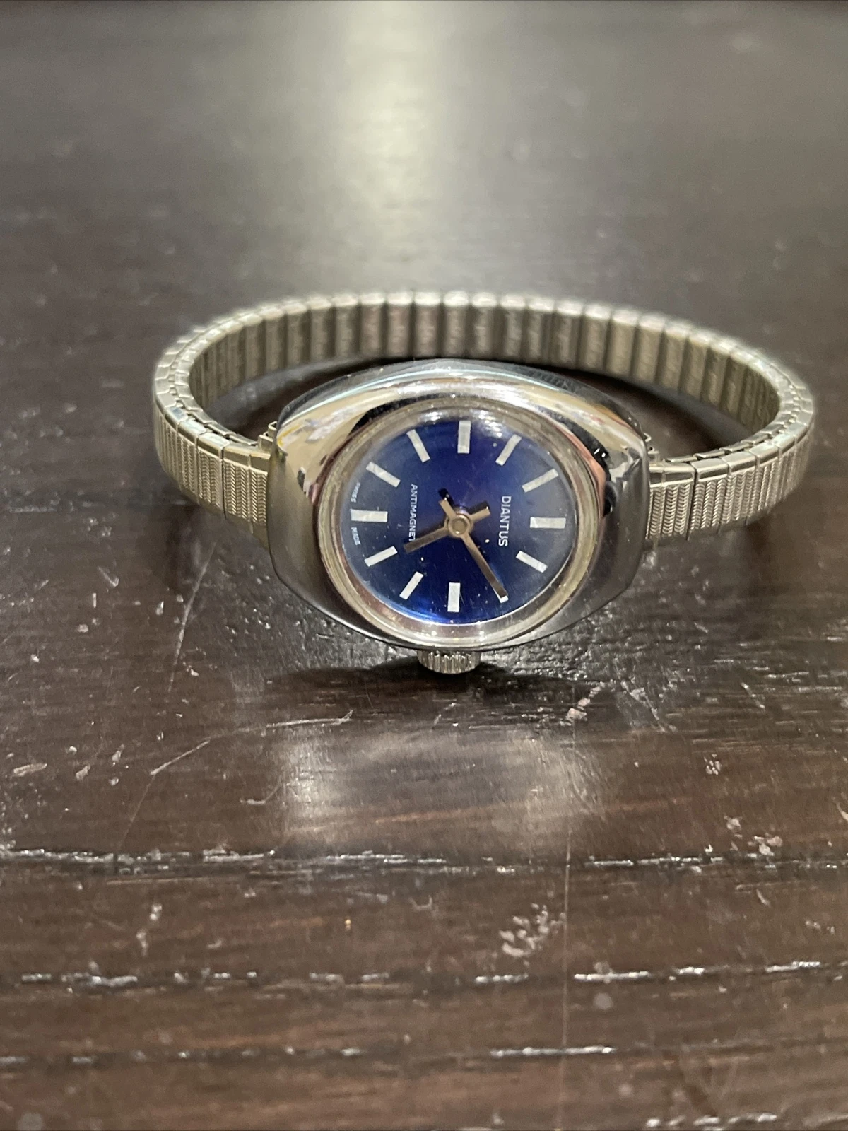 Diantus Women's Silver Toned Stretch Band Analog Watch Vintage Wind Up