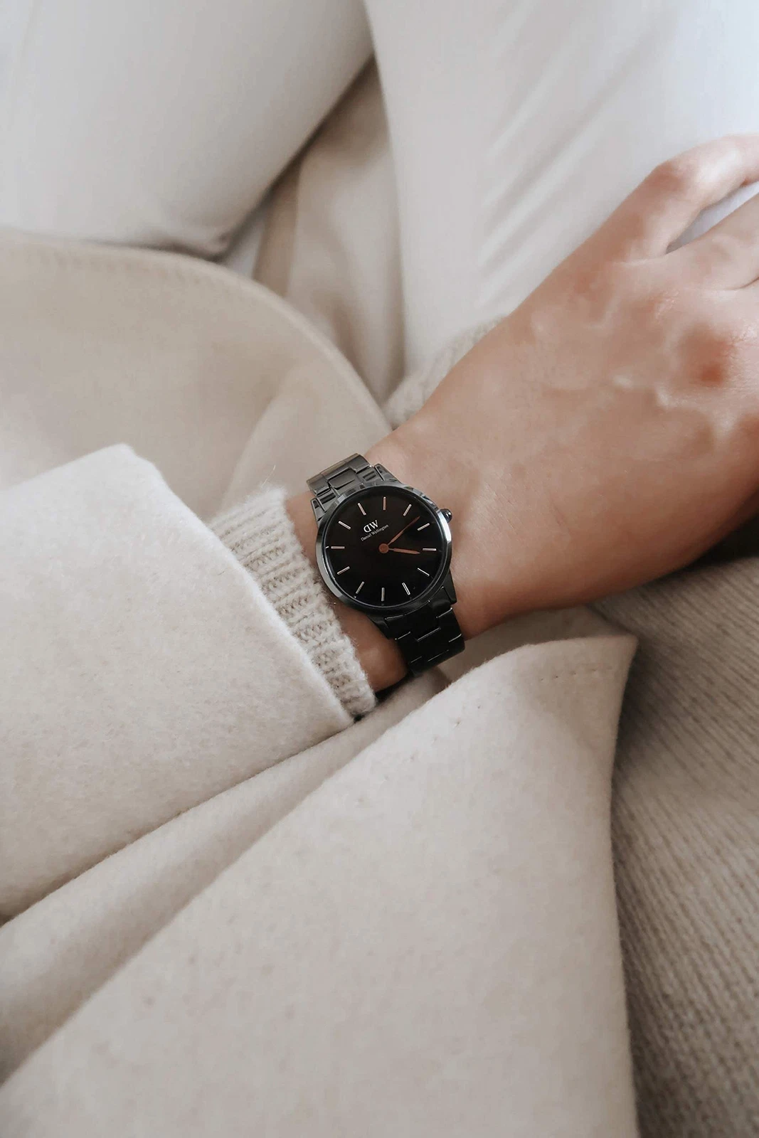 Daniel Wellington Iconic Link Ceramic Analog Black Dial Women's Watch-DW00100414