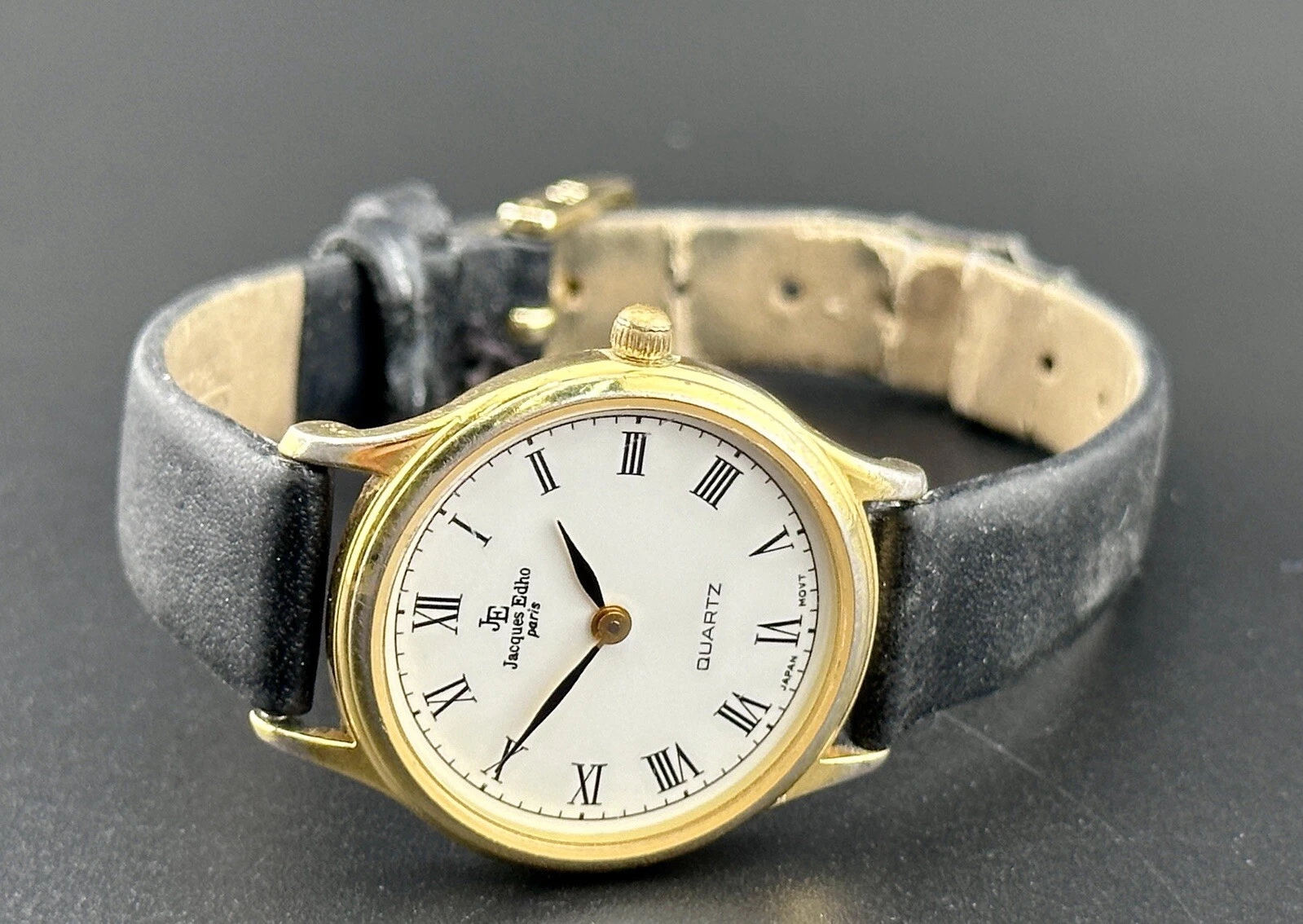 Rare Working Jacques Edho 18k Gold Plated 790/4E Round Watch Roman Numerals D2