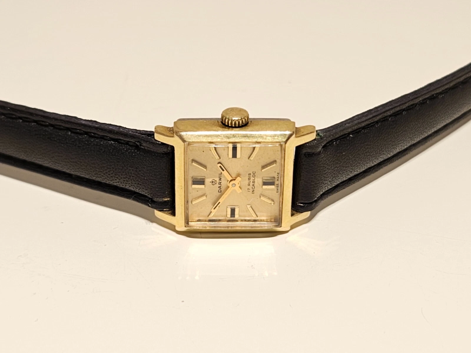 VINTAGE SQUARE SMALL 18mm LUXURY ELEGANT  SWISS MECHANICAL LADIES WATCH "DARWIL"