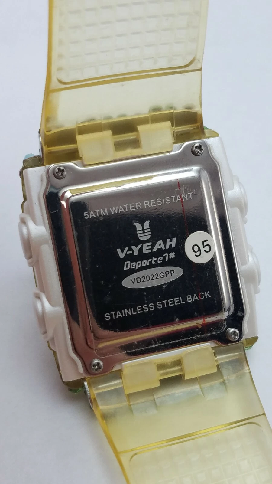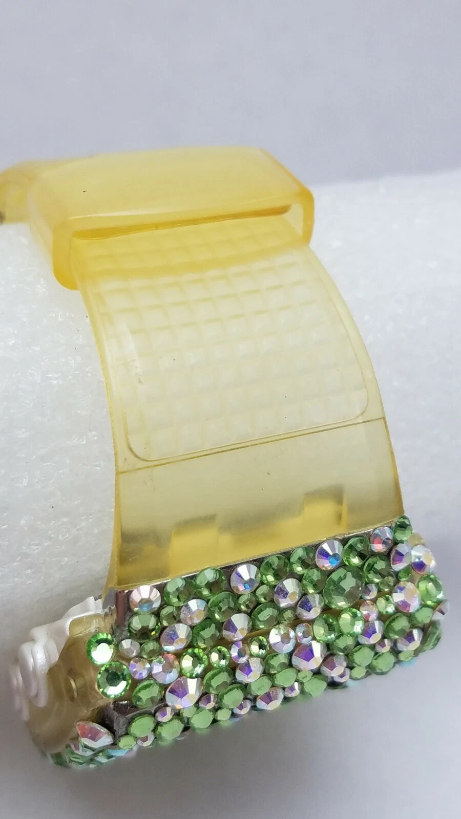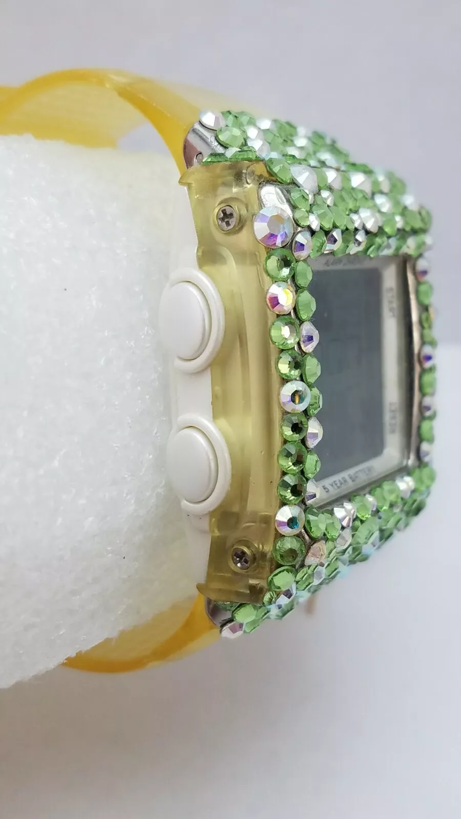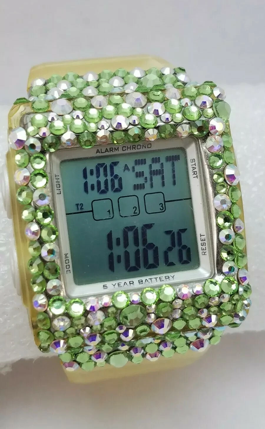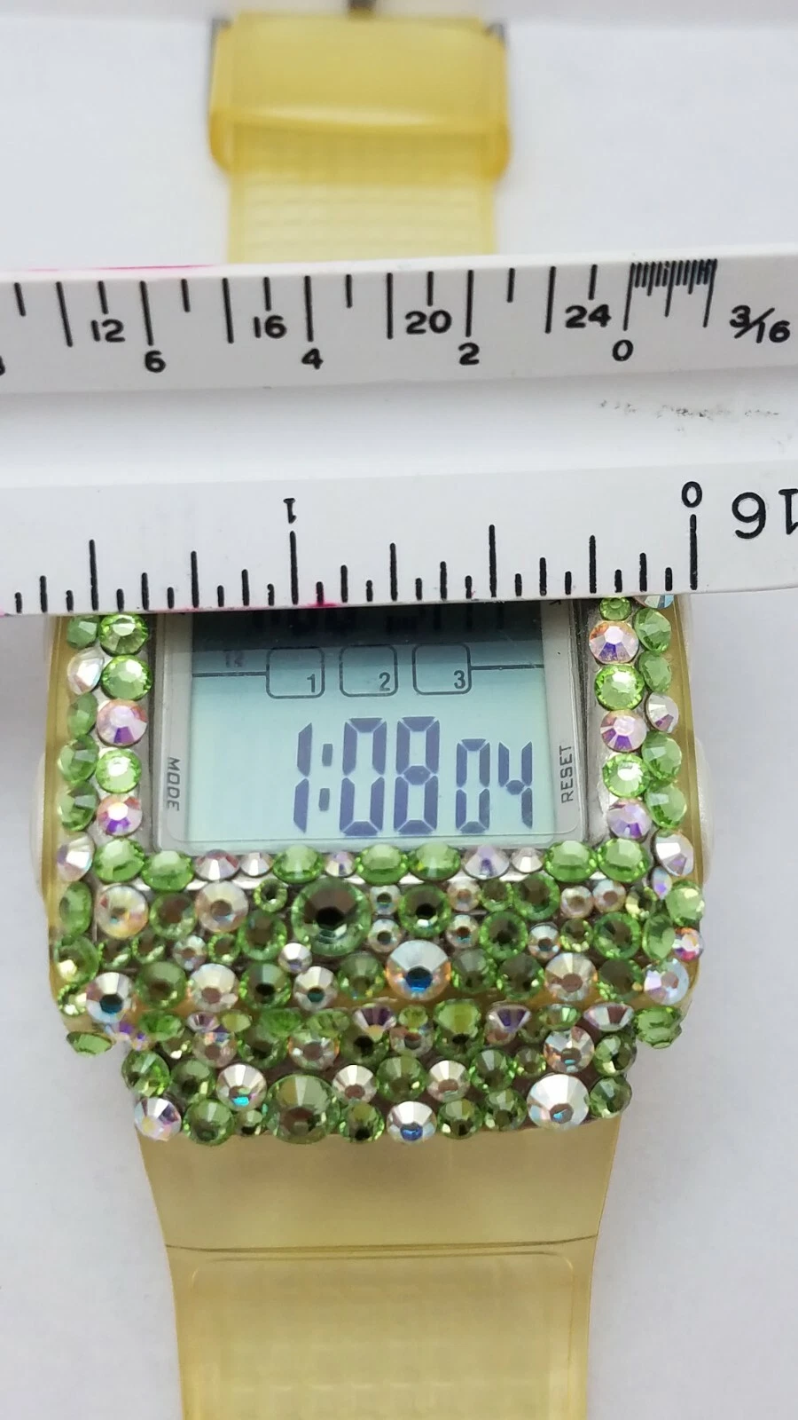 Women's Deporte V-Yeah Green/Yellow Rhinestone Digital Sports Watch -New Battery