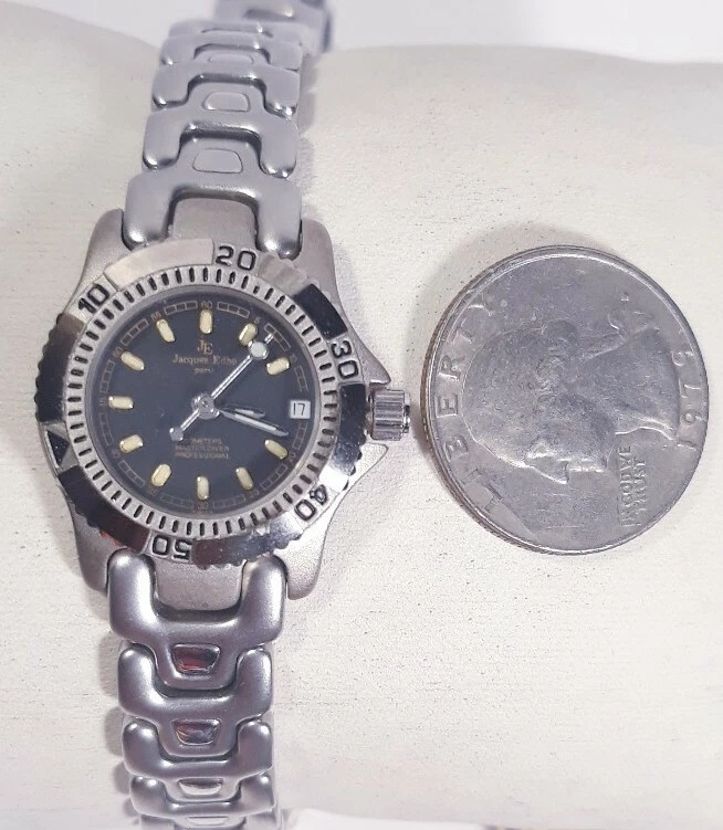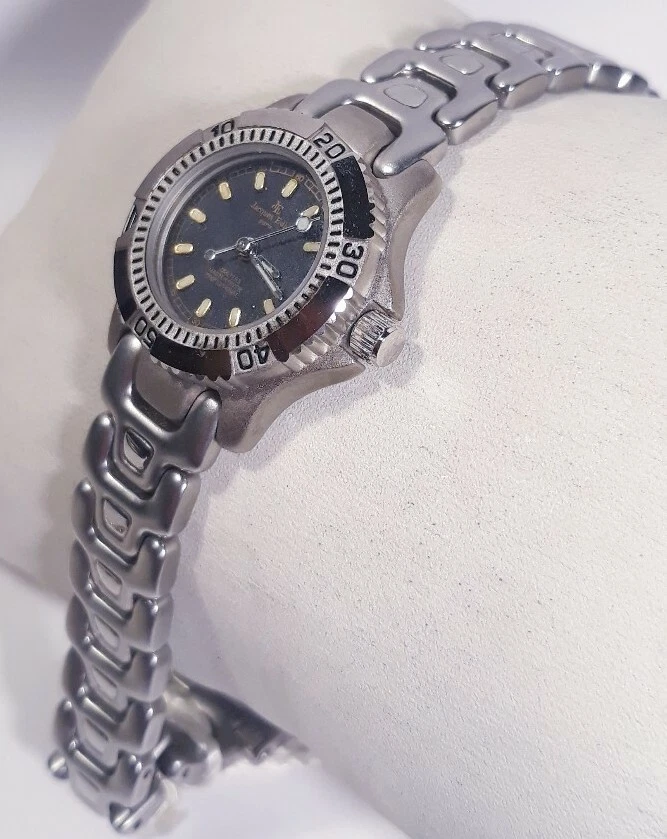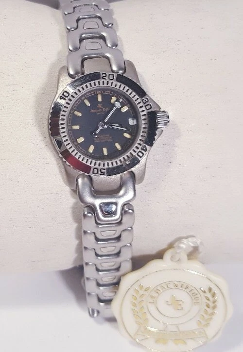 Women Jacques Edho Paris Watch Black Face Silver Steel Band Master Diver 100m