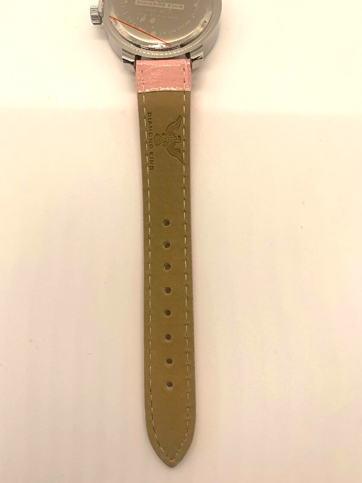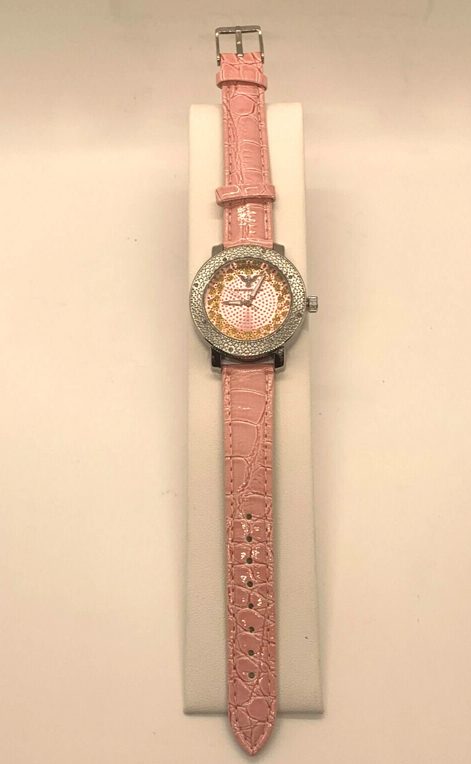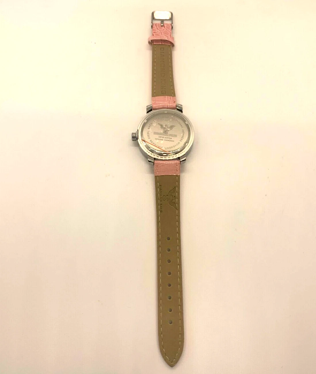 Diamond King Ladies Wristwatch Pink Crocodile Band with Gold Heart Watchface.