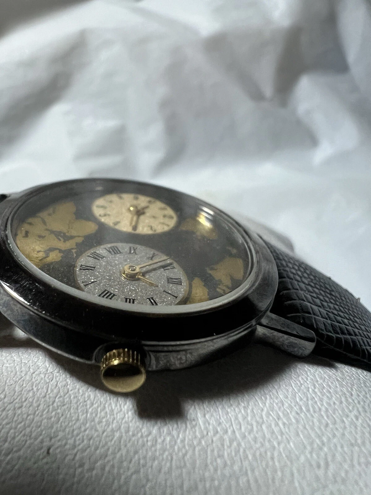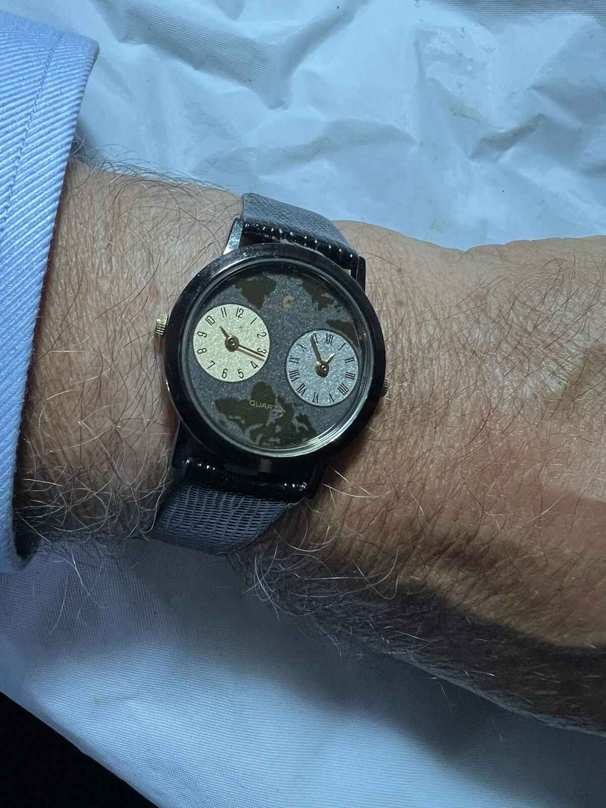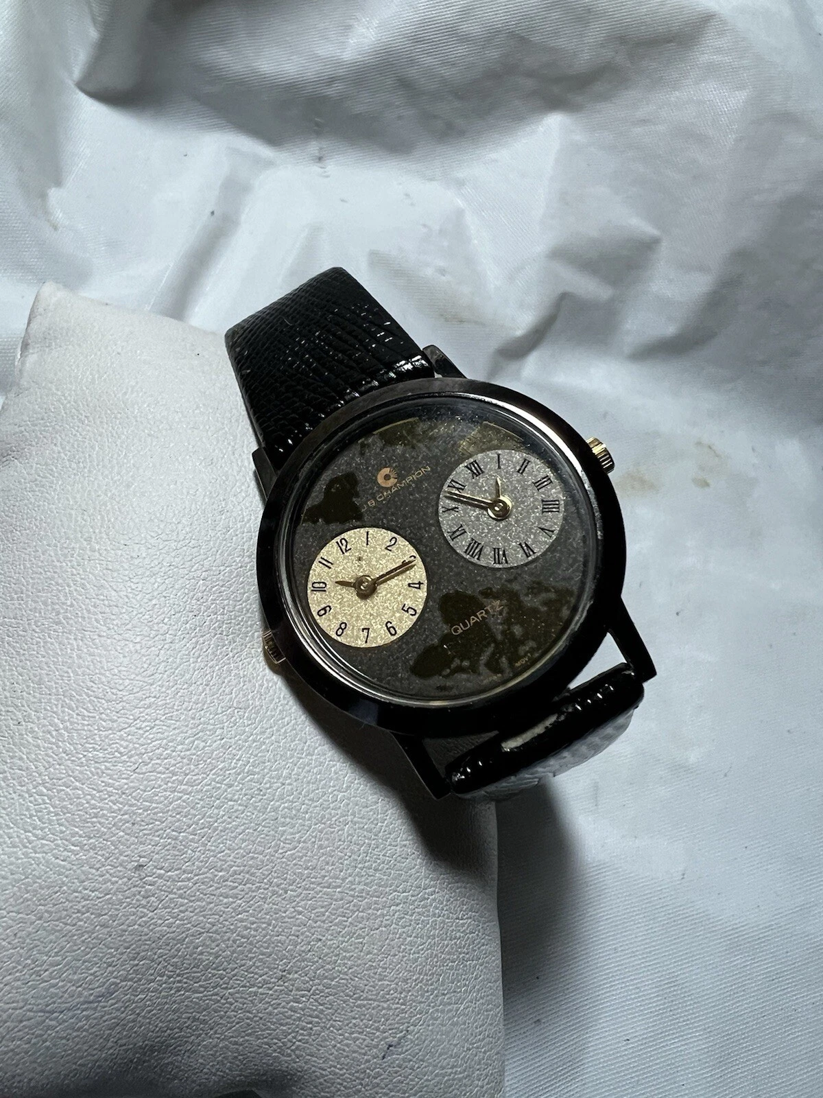 JB Champion New York quartz, double zone, ladies, 32 mm case, black leather band