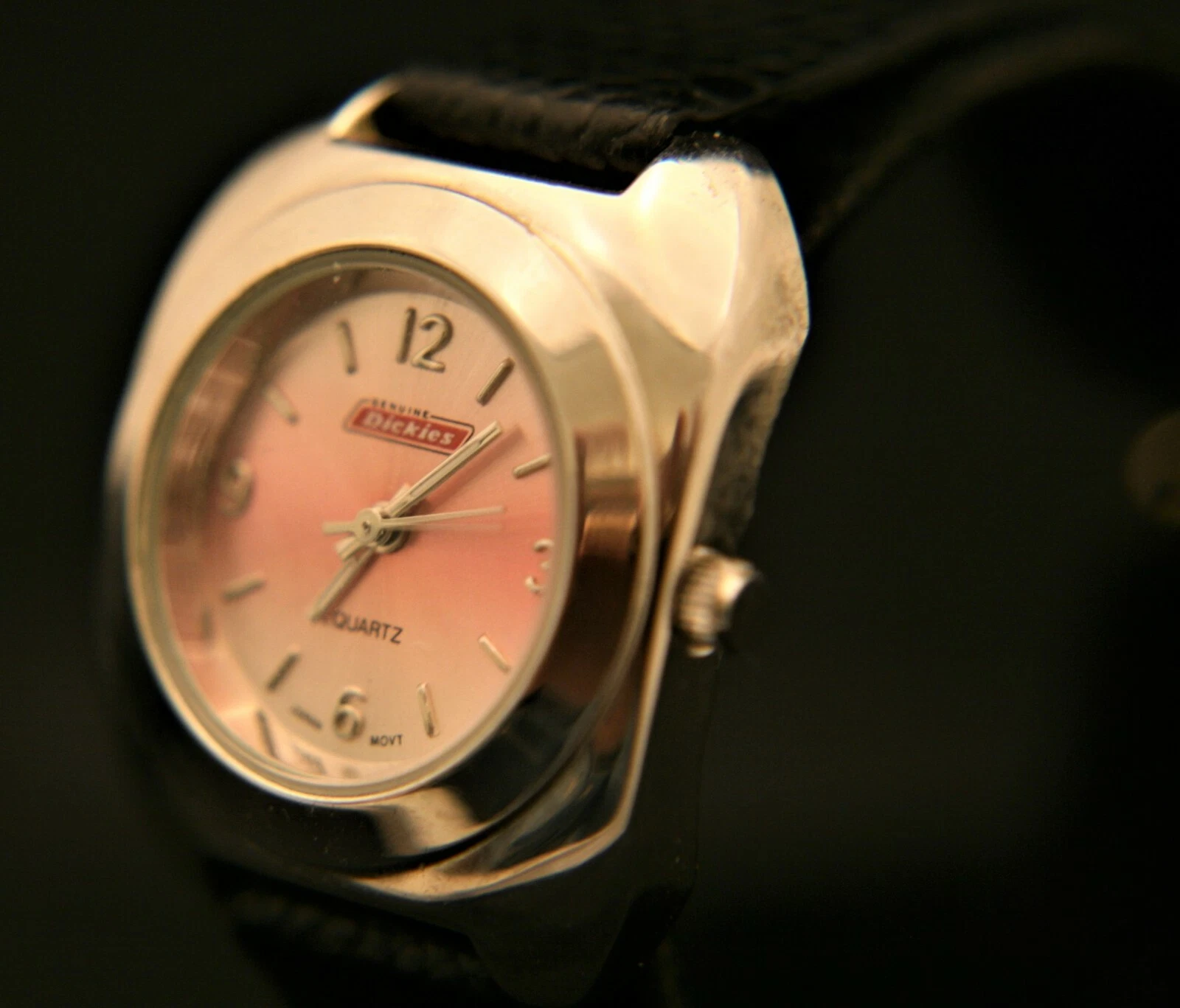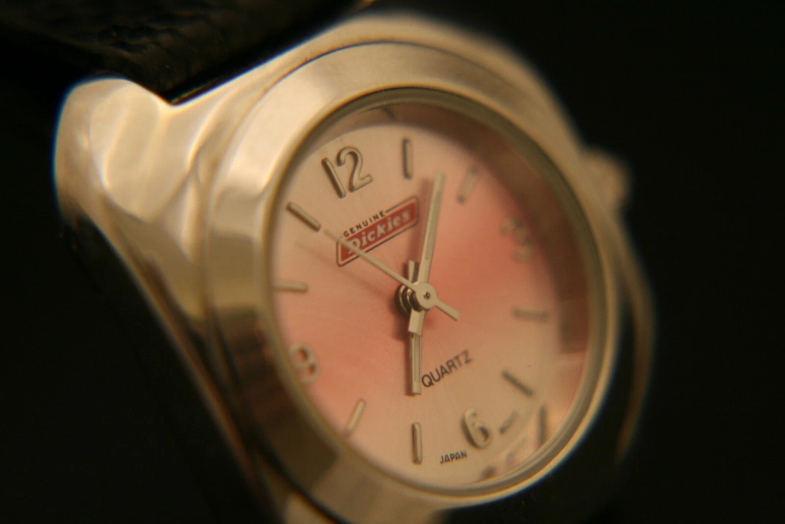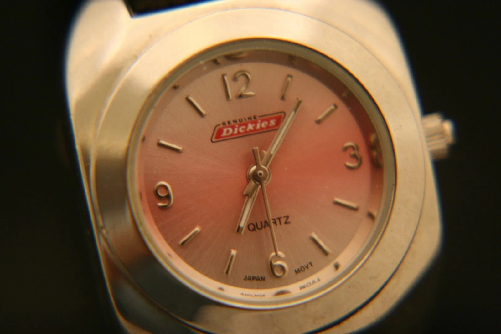 New ladies' genuine Dickies light pink dial Japanese quartz wristwatch, leather